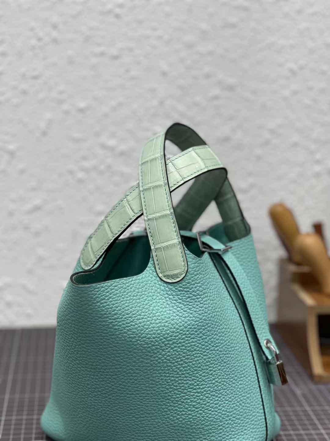Picotin touch 18cm 手挽拼上薄荷绿色鳄鱼皮➕圣西尔蓝TC皮 又是另一种特色 休闲又好用