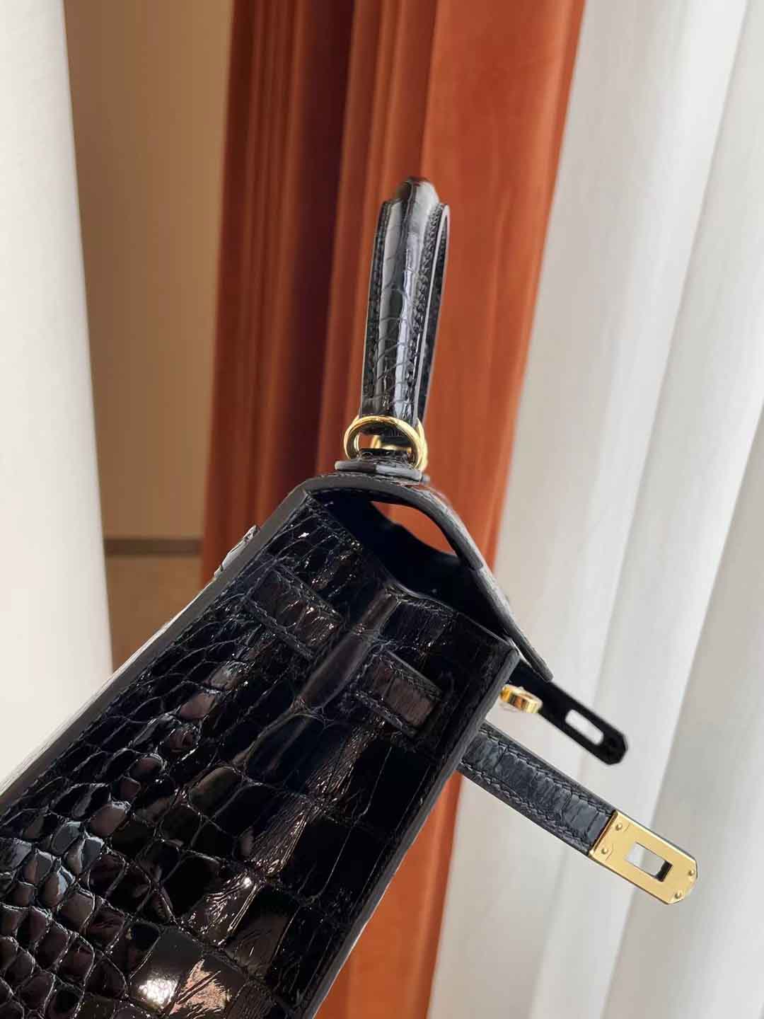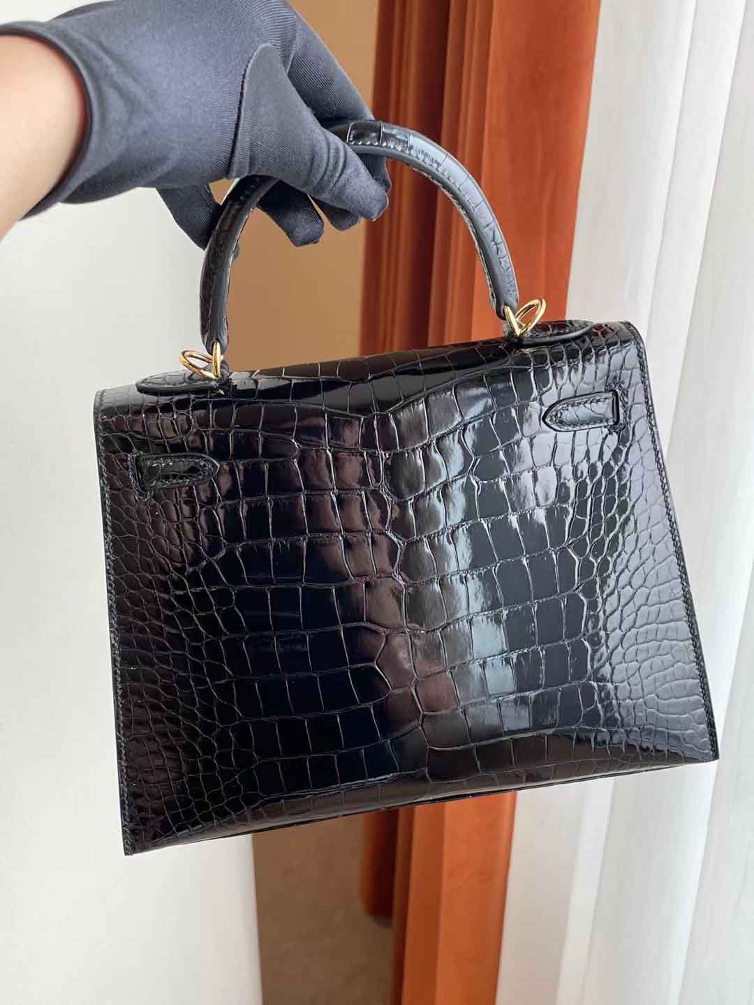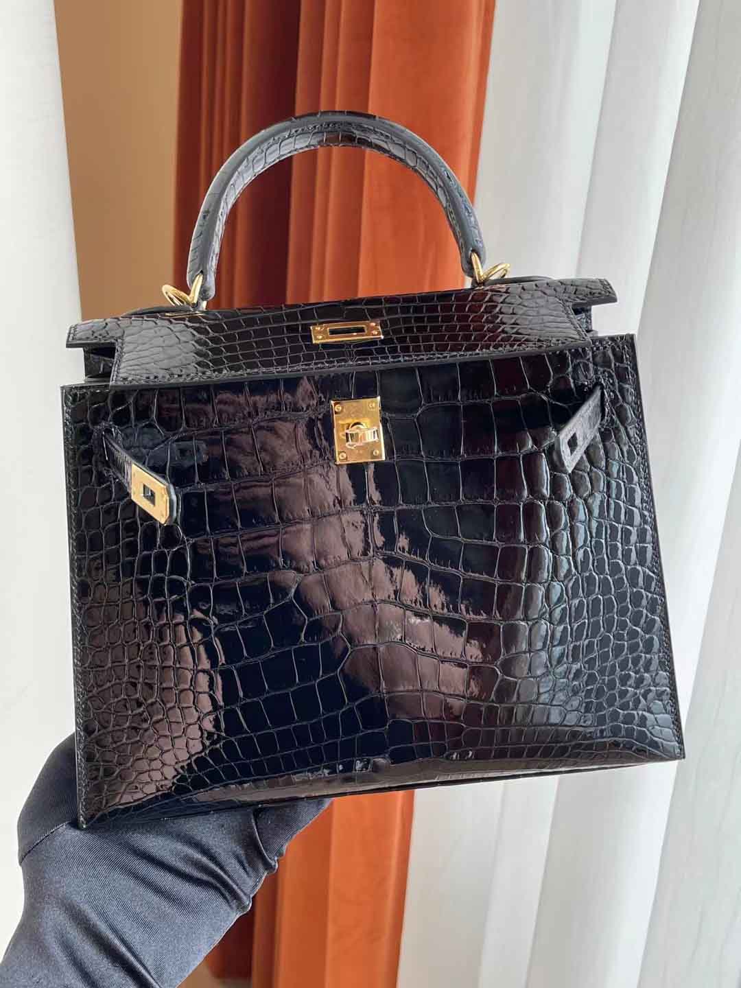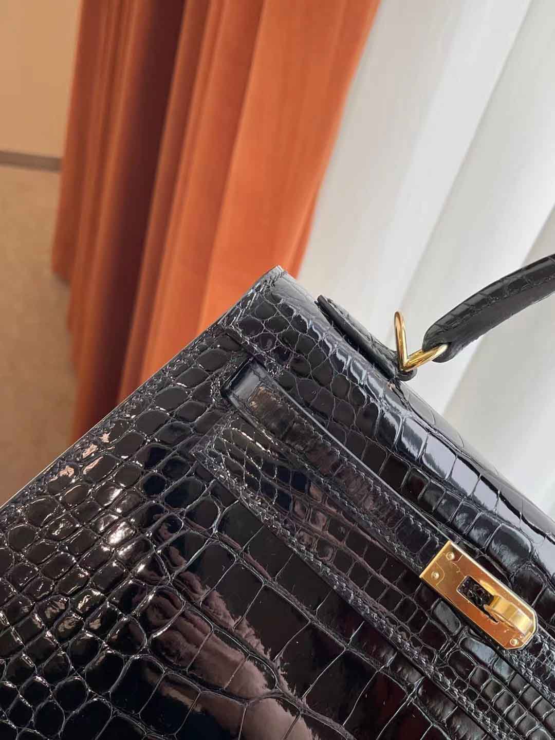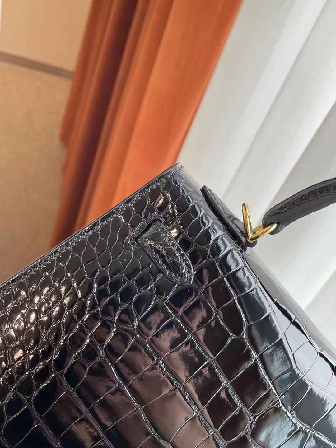 Kelly25 黑色亮面美洲鳄 金扣 纯手工蜡线 新到现货一只 in stock....