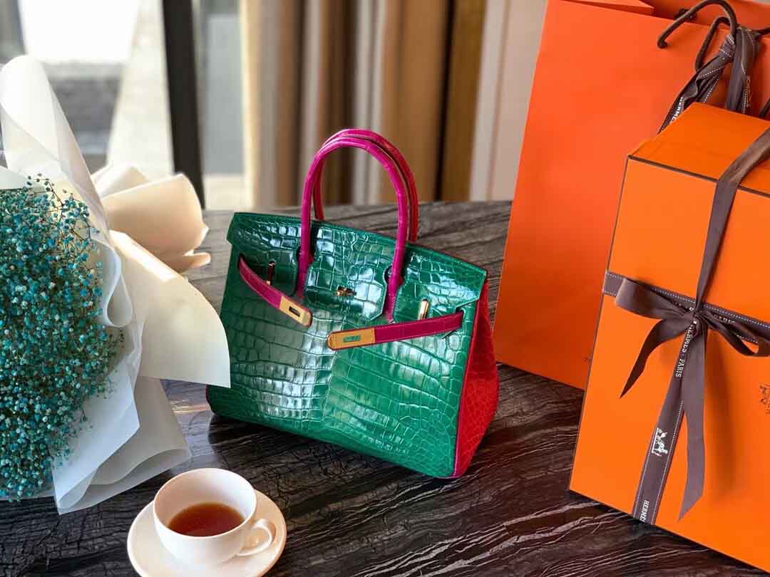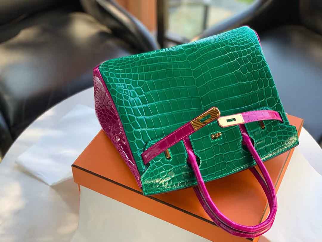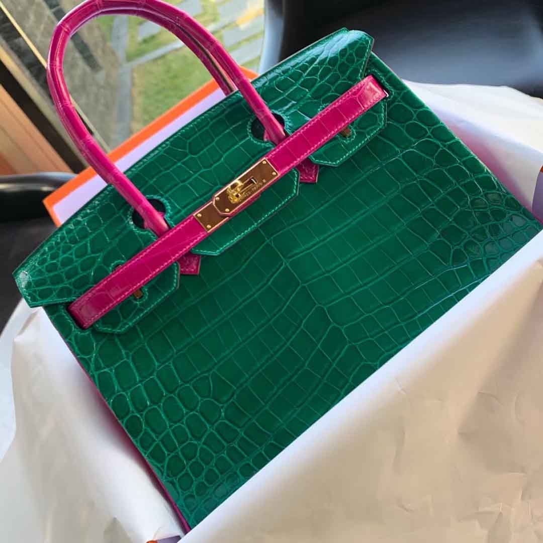 Birkin 30cm 翡翠绿拼天方夜谭紫女包 金扣