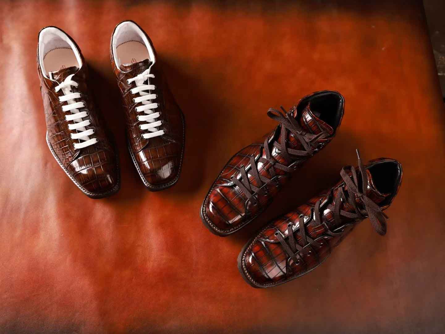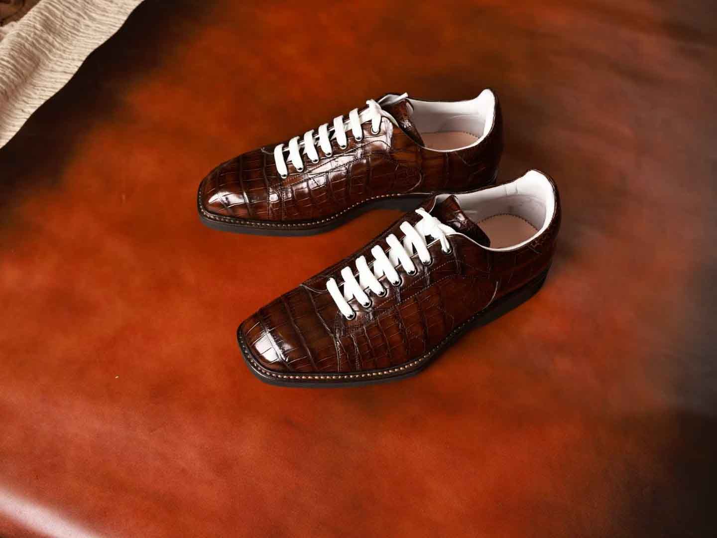 擦色红色鳄鱼皮男士皮鞋订制工厂,私人订制奢侈品皮鞋定制工作室。