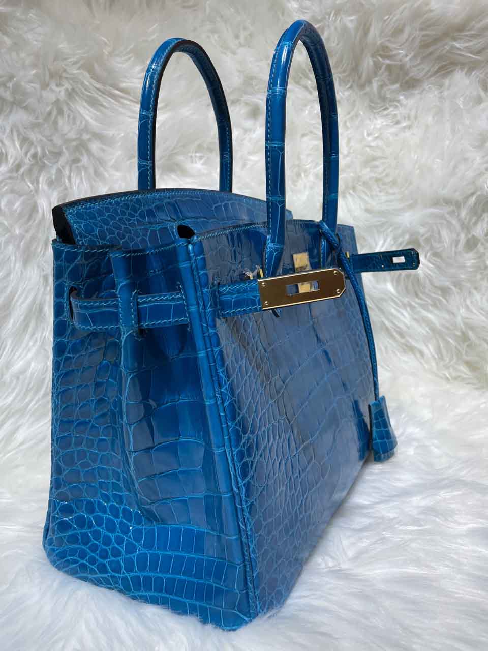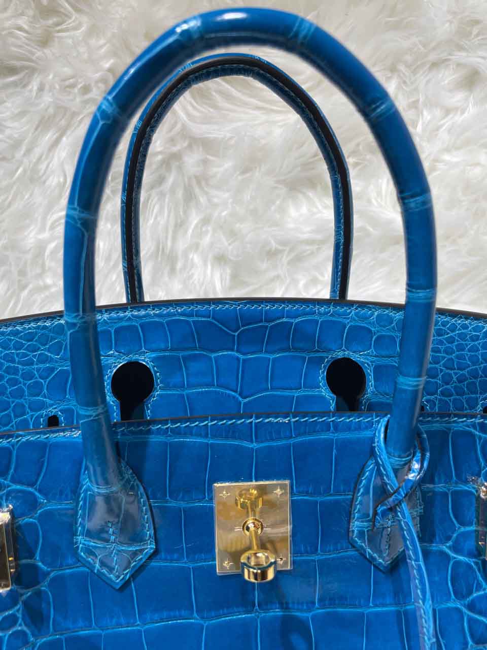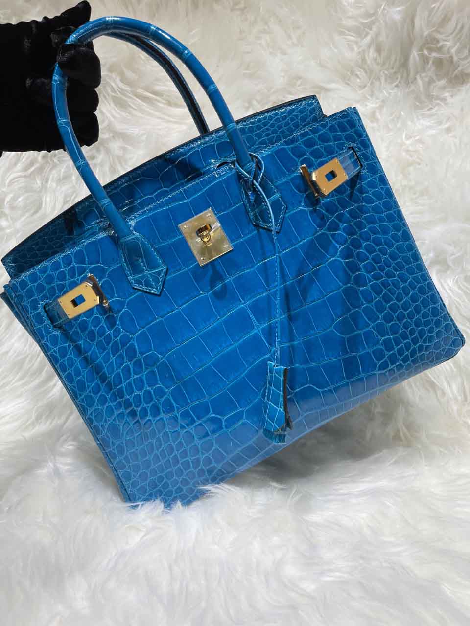 Birkin 30伊兹密尔蓝,美洲鳄鱼皮女士包包订做