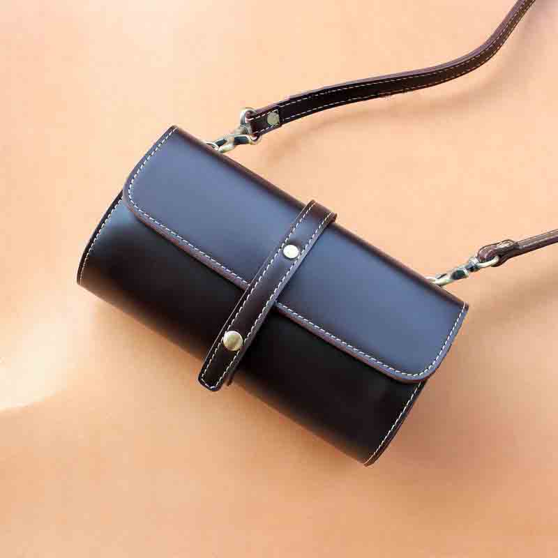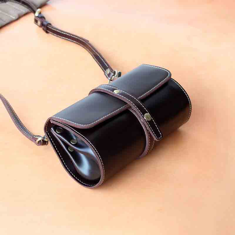 原创手工包文艺风斜挎包 头层牛皮休闲单肩斜跨真皮女包 复古圆包,