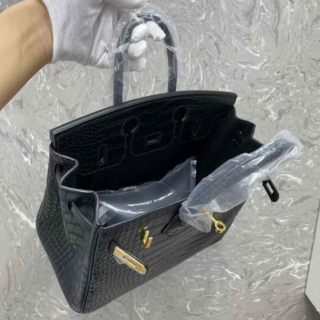 黑色美洲鳄鱼皮女士手提包定做工厂
