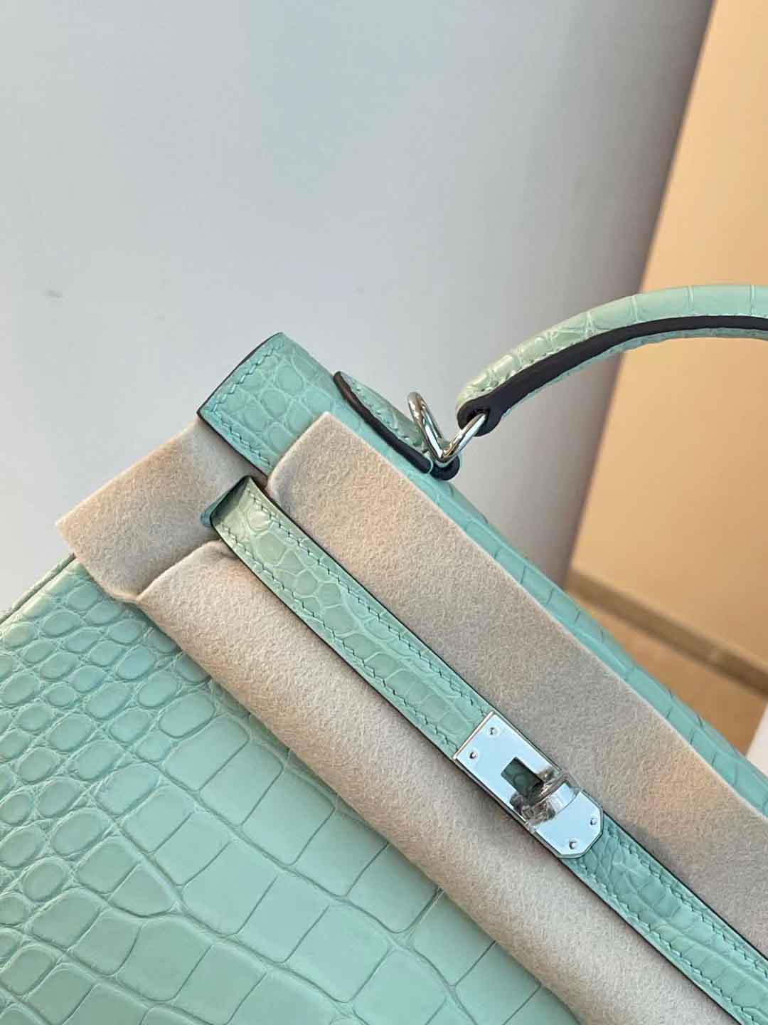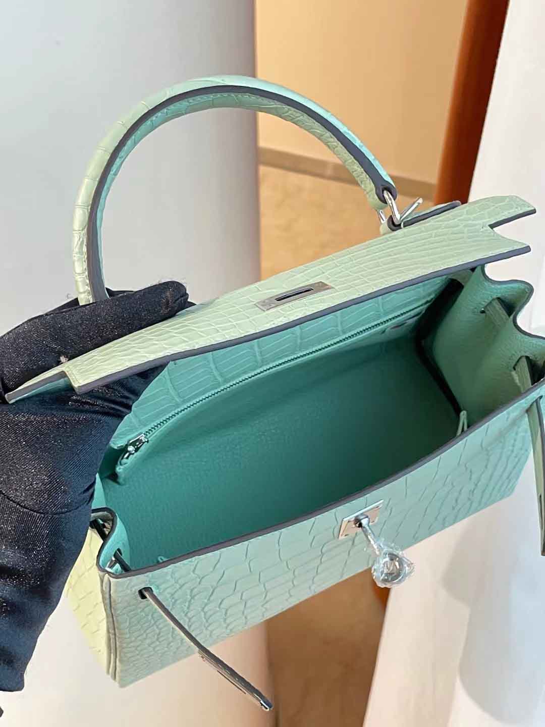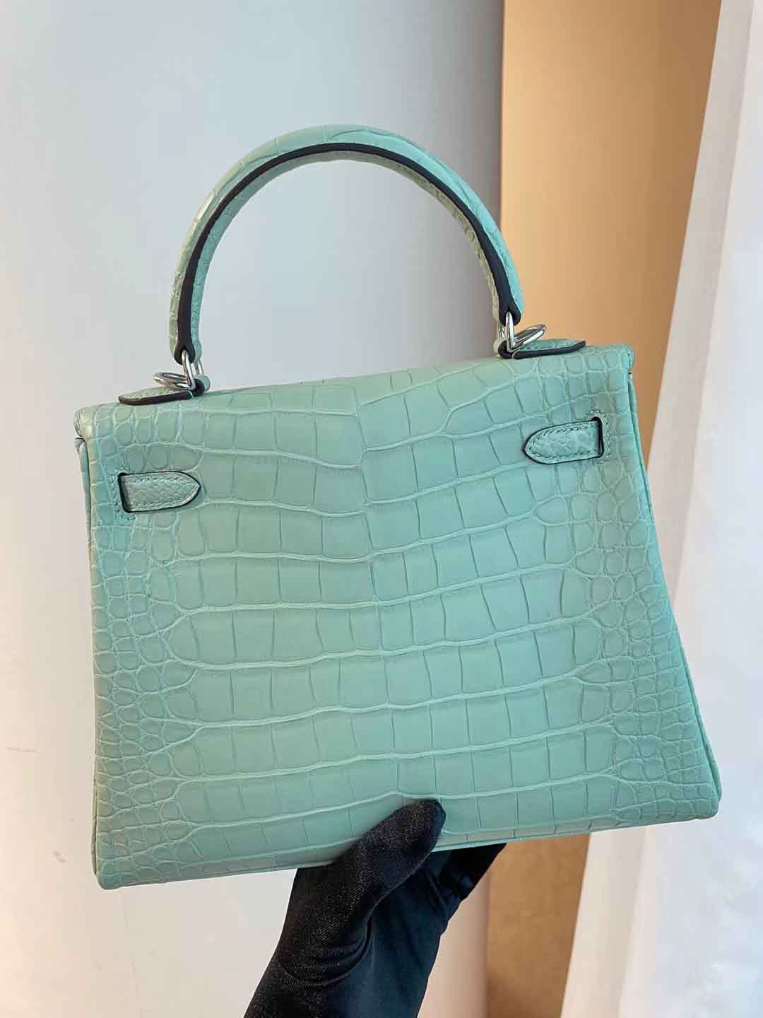 kelly25 6U薄荷绿 雾面美洲鳄 银扣 纯手工蜡线 现货一只