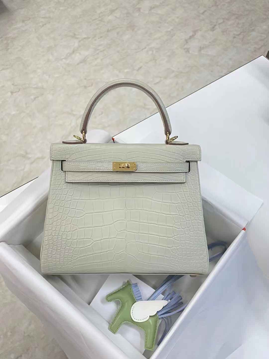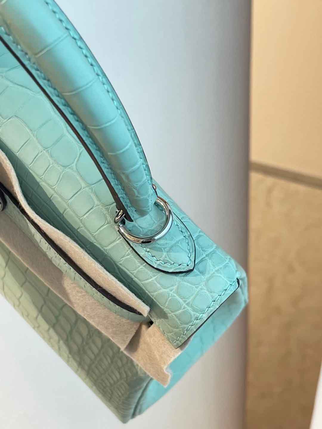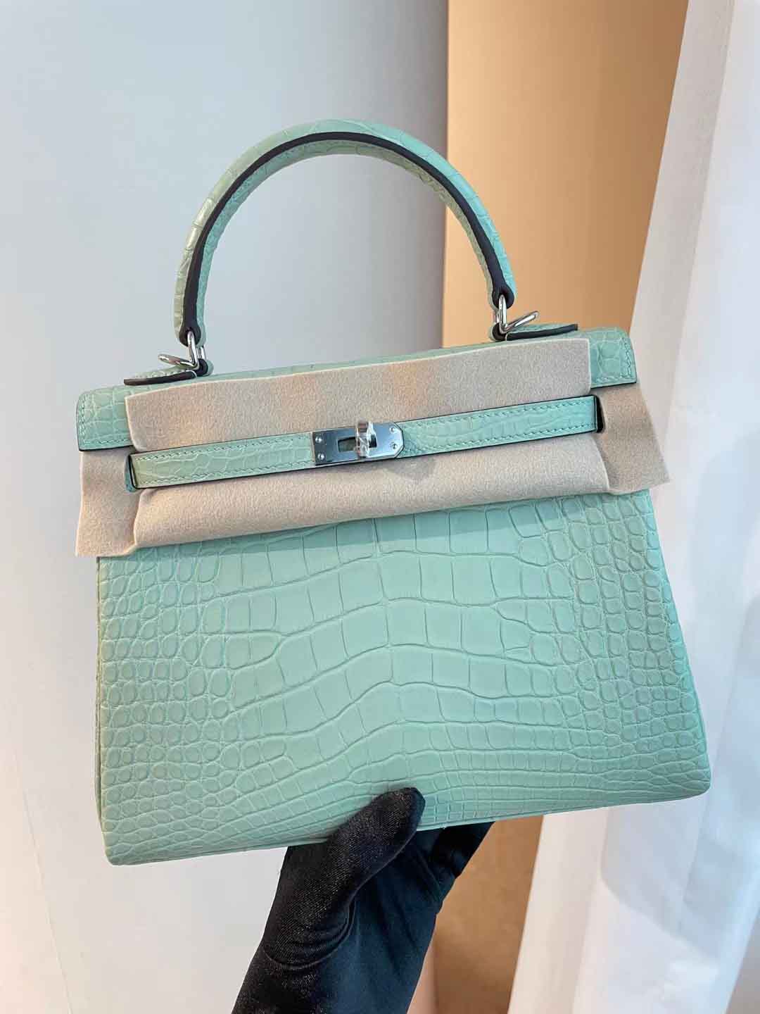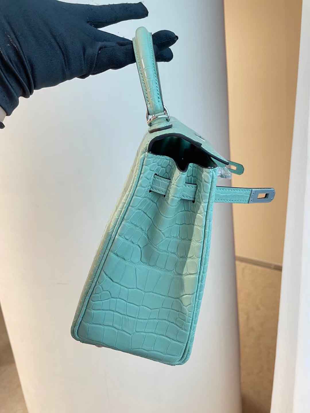 kelly25 6U薄荷绿 雾面美洲鳄 银扣 纯手工蜡线 现货一只