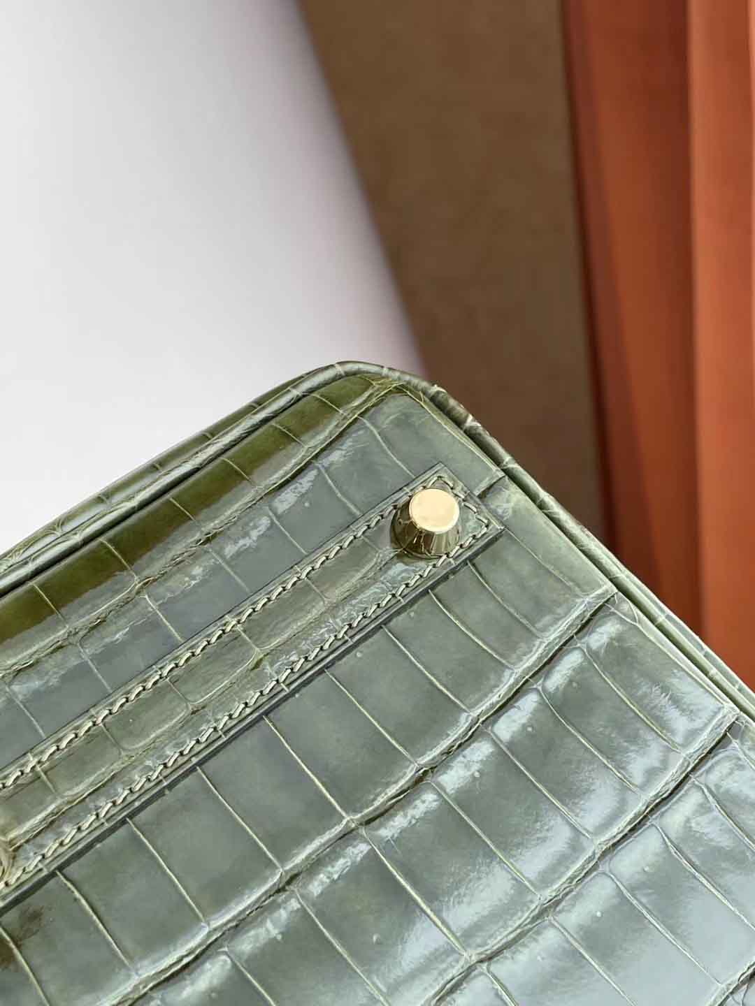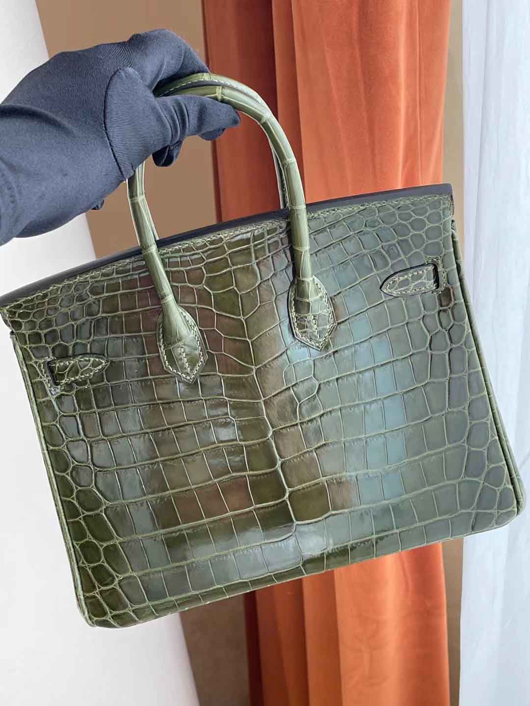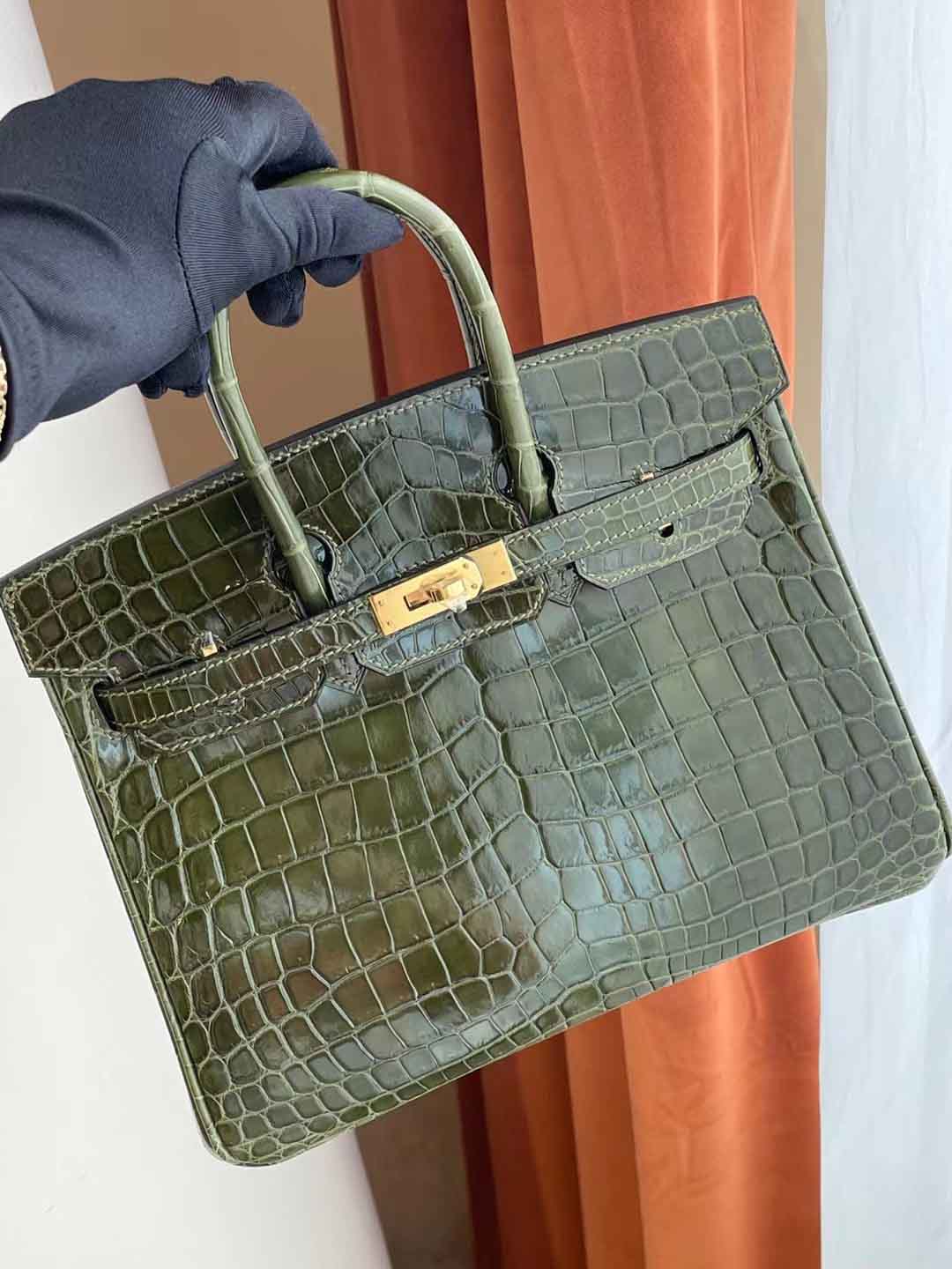 BK 橄榄绿 25cm 金扣 亮面尼罗鳄