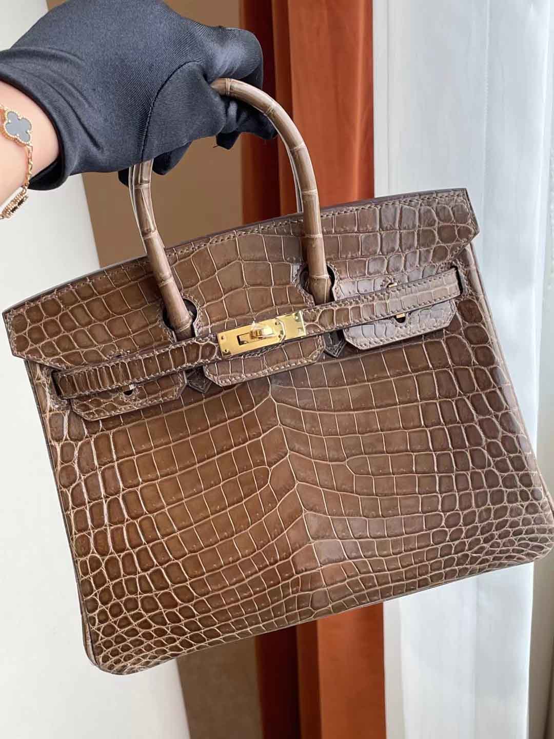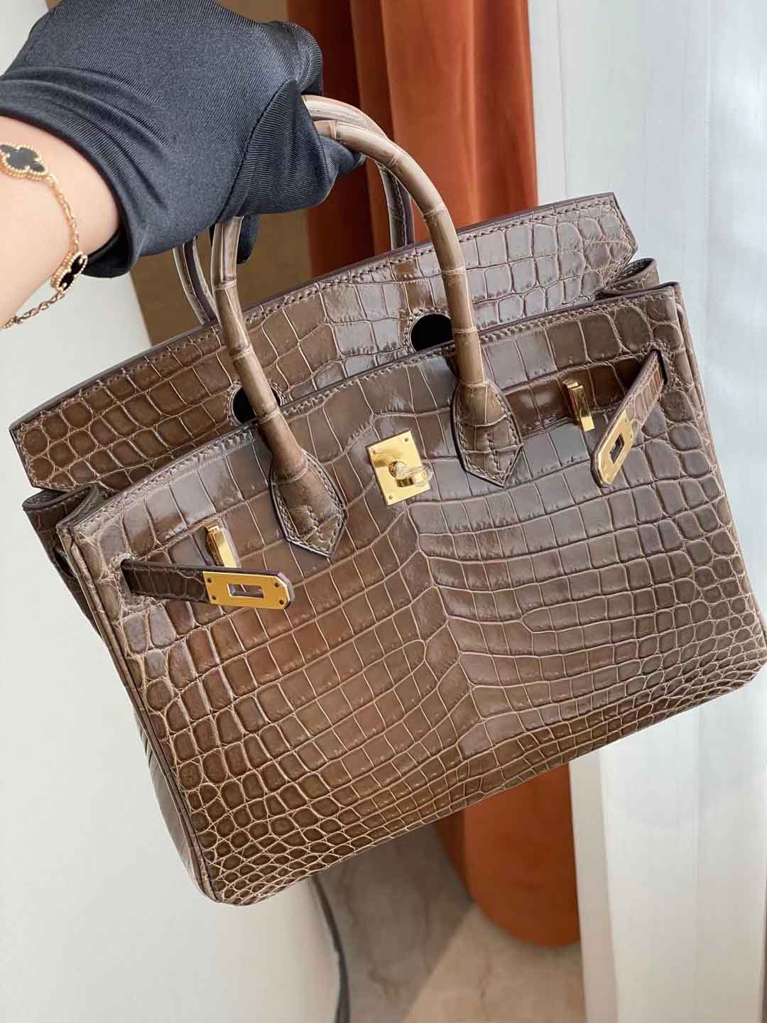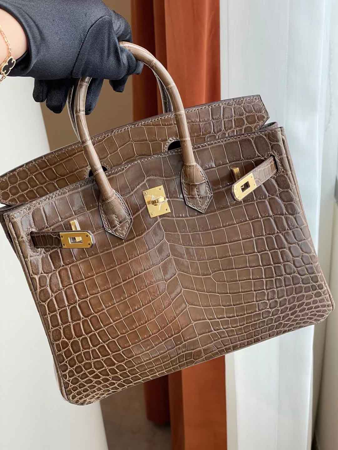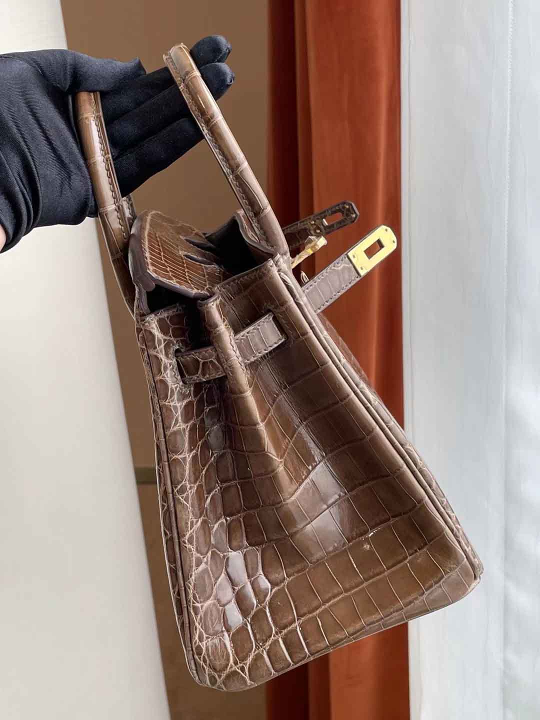 Bk25 深灰色 金扣 亮面尼罗鳄 纯手工蜡线 现货一只 in stock...