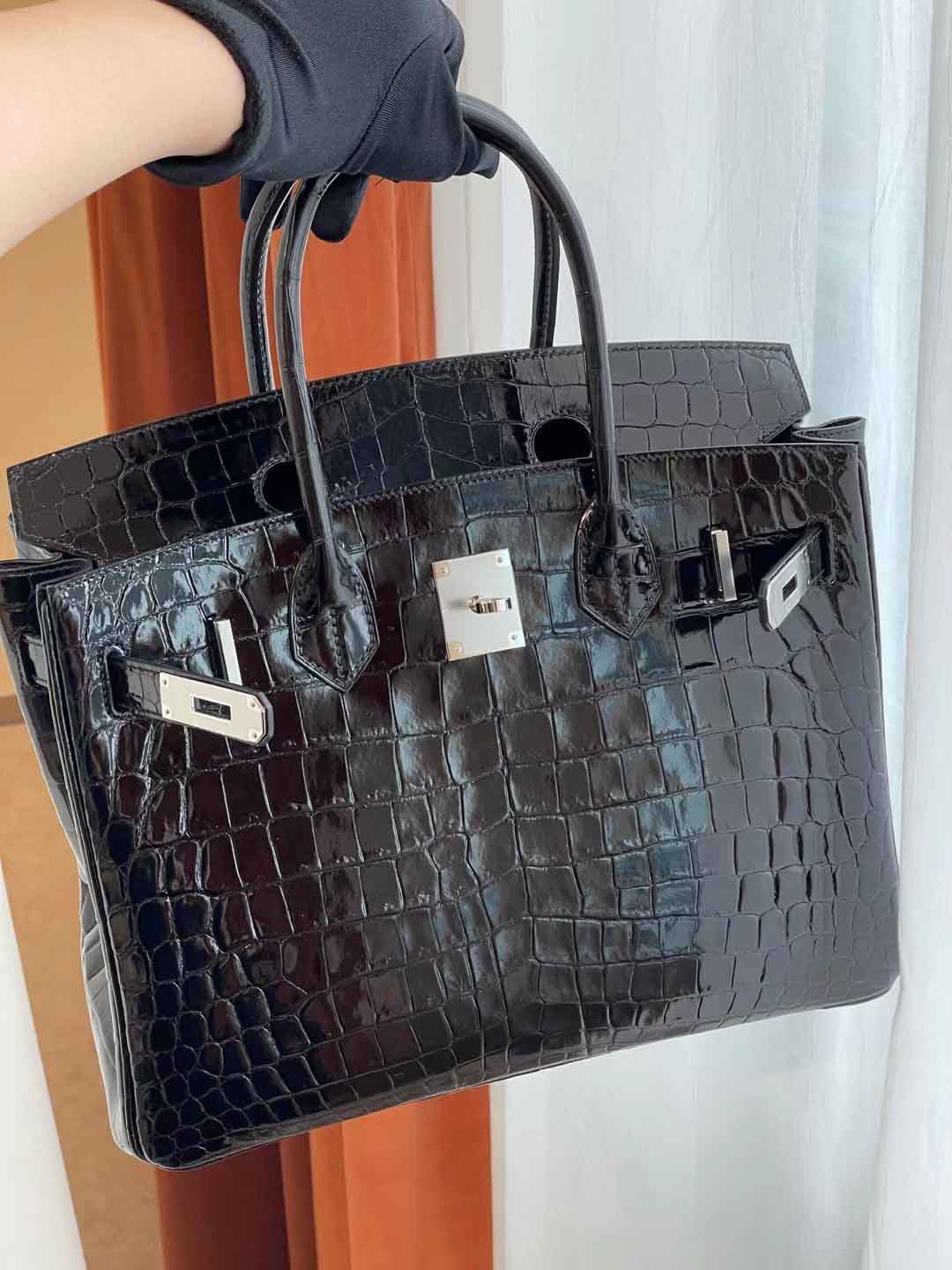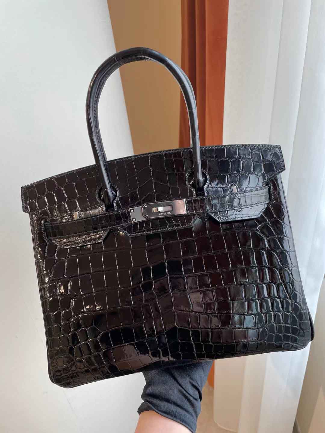 BK 89 黑色 Noir 30cm 尼罗鳄 银扣