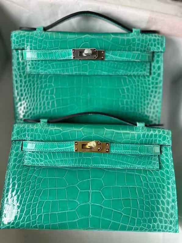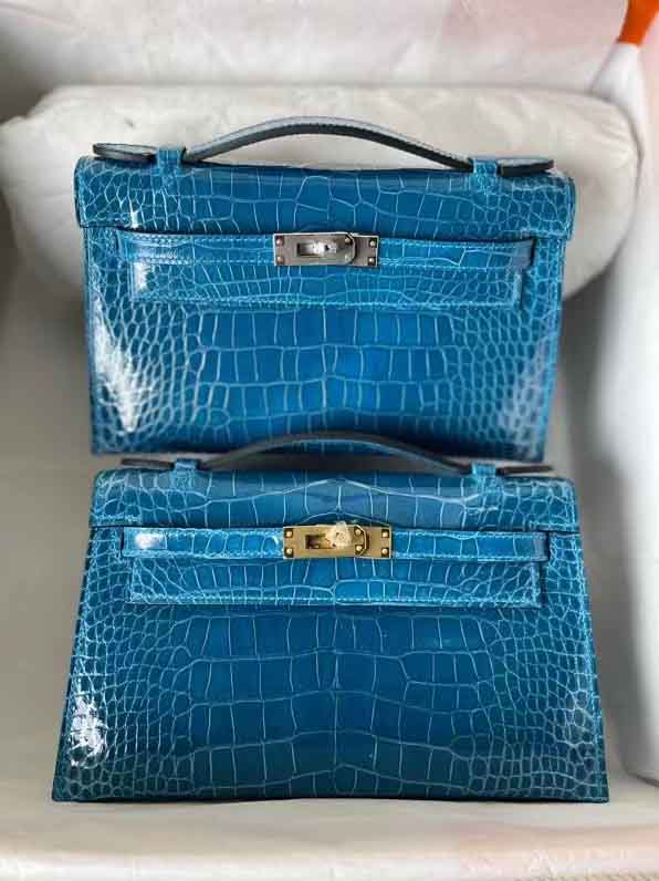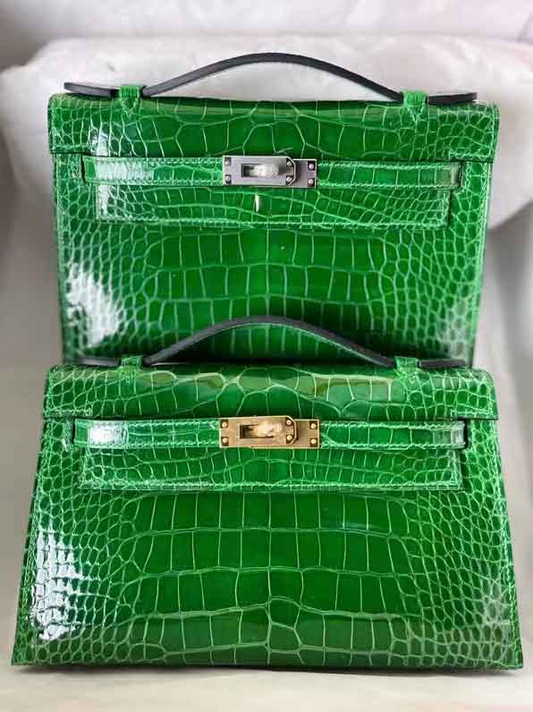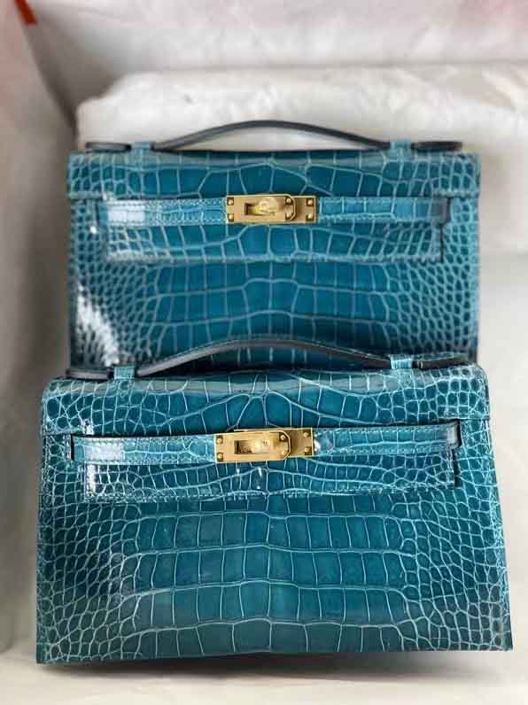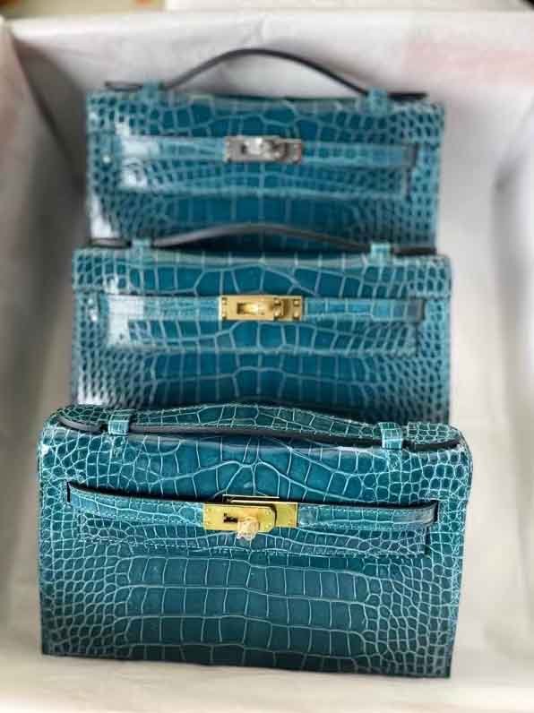kelly一代湾鳄鳄鱼皮高光鳄鱼手提包。