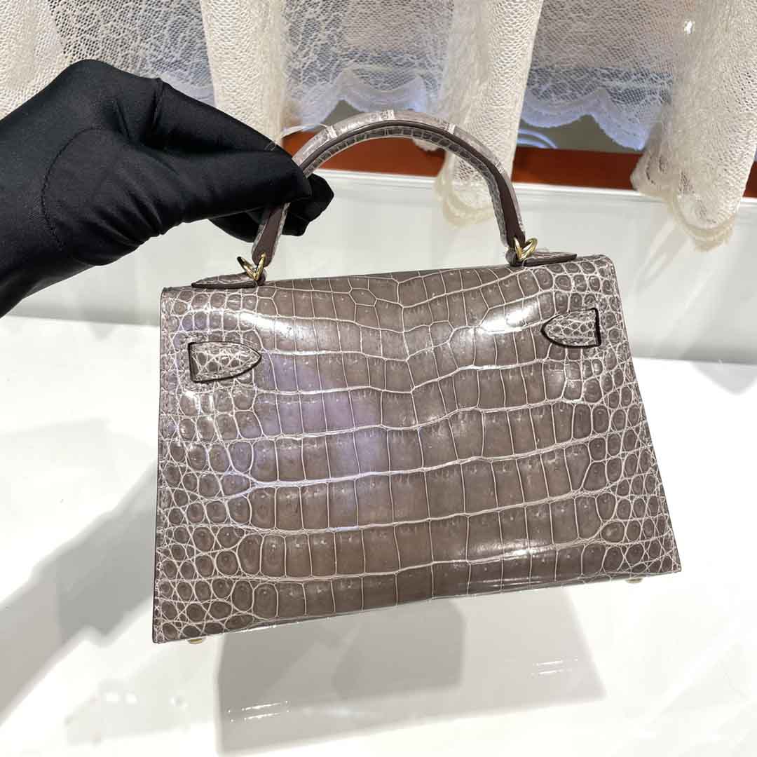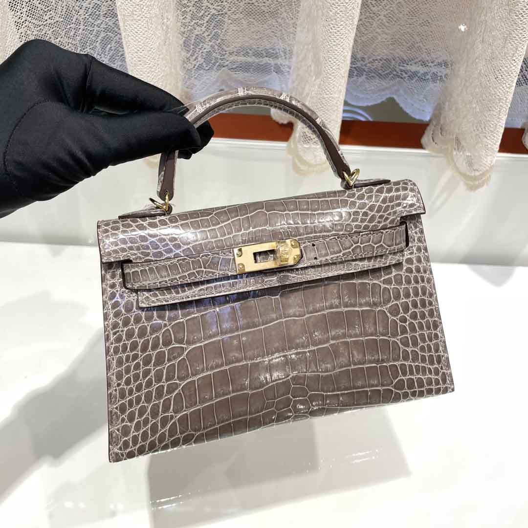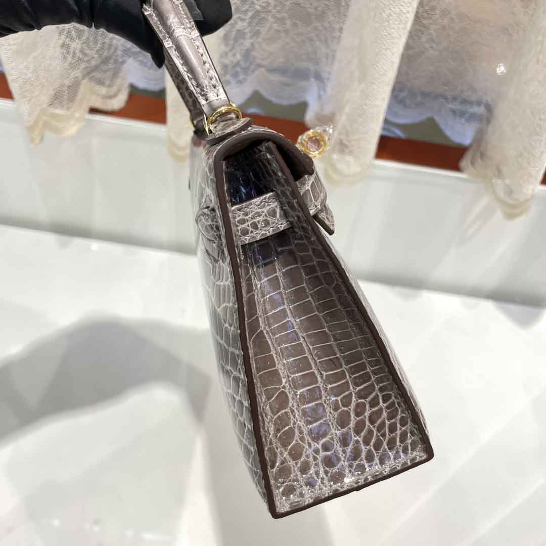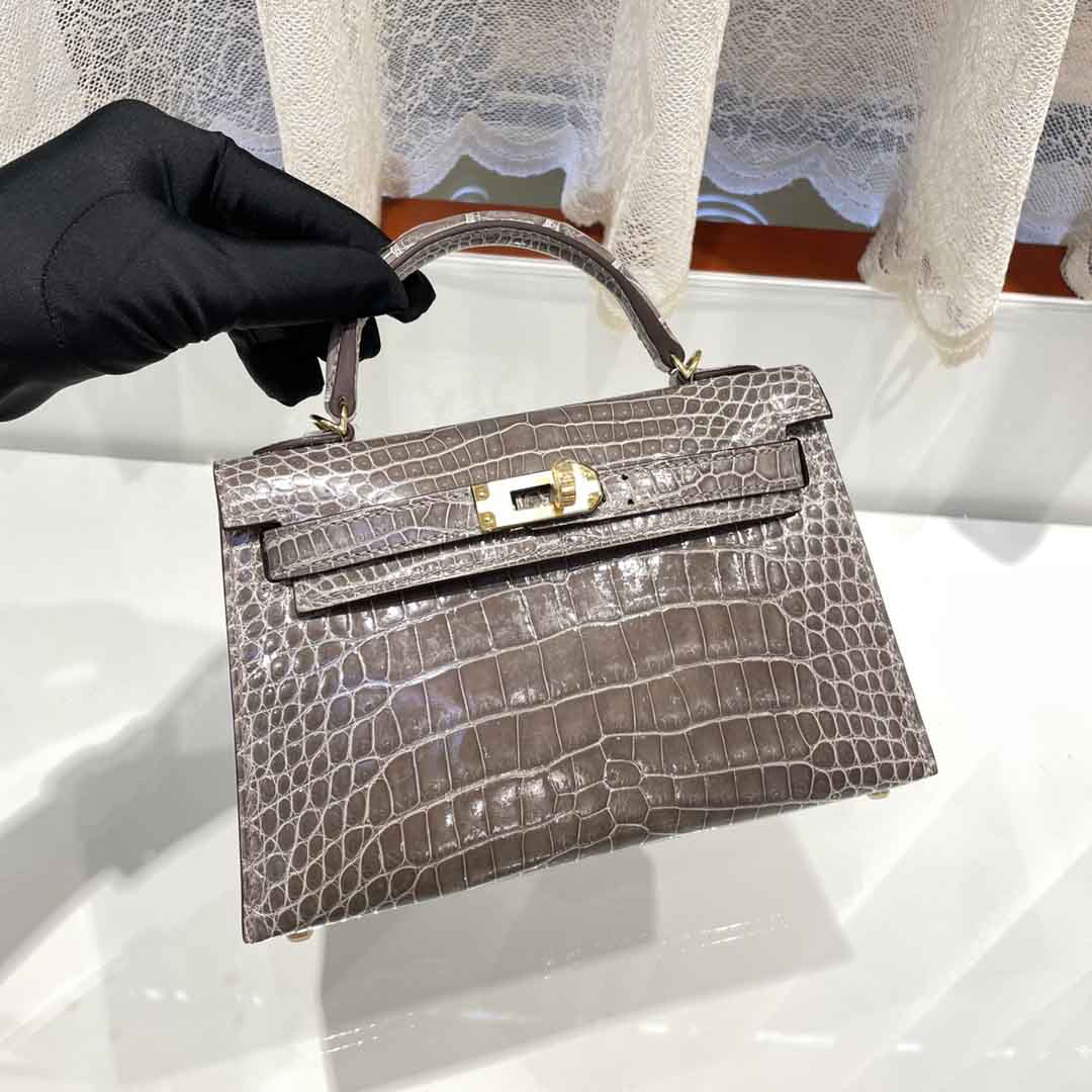 凯丽 二代 19cm手包mini亮光美洲鳄鱼皮女手提晚宴包订制厂家 微信 95506803