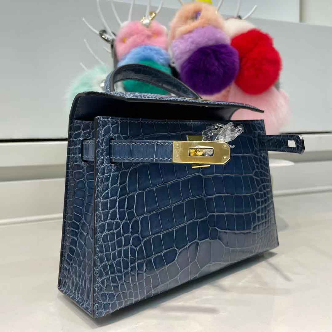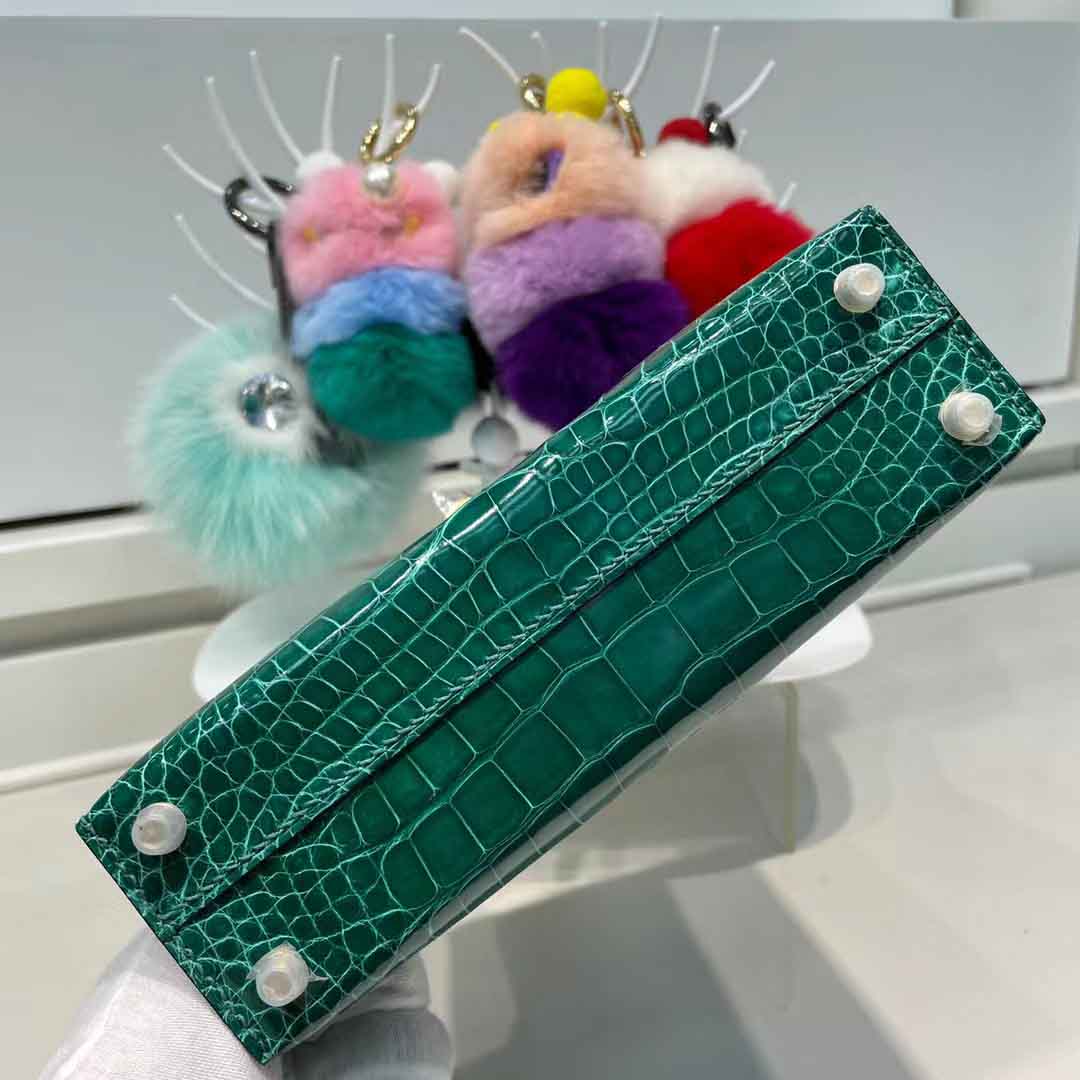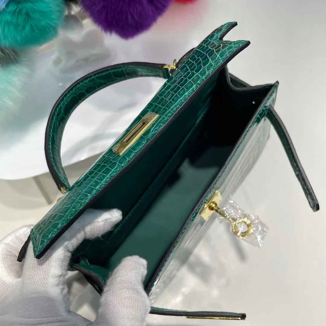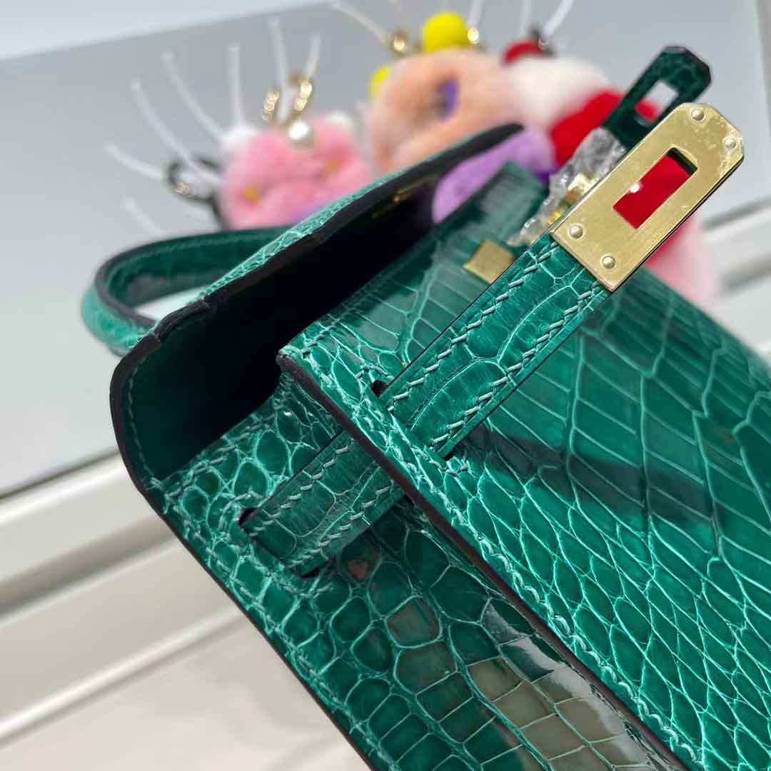mini凯丽二代祖母绿鸭子蓝2色高光鳄鱼皮女士手提包厂家