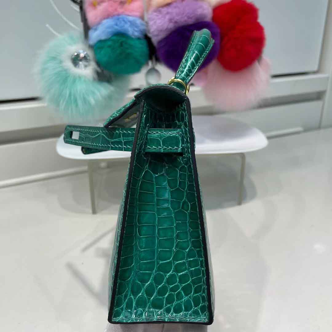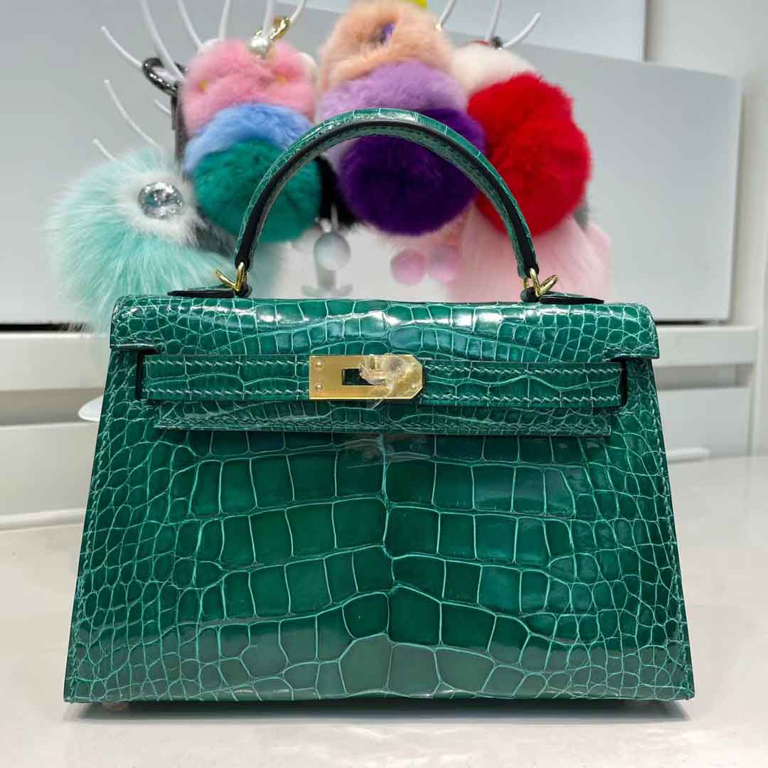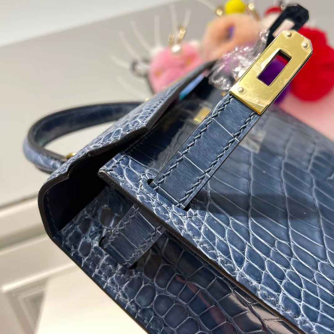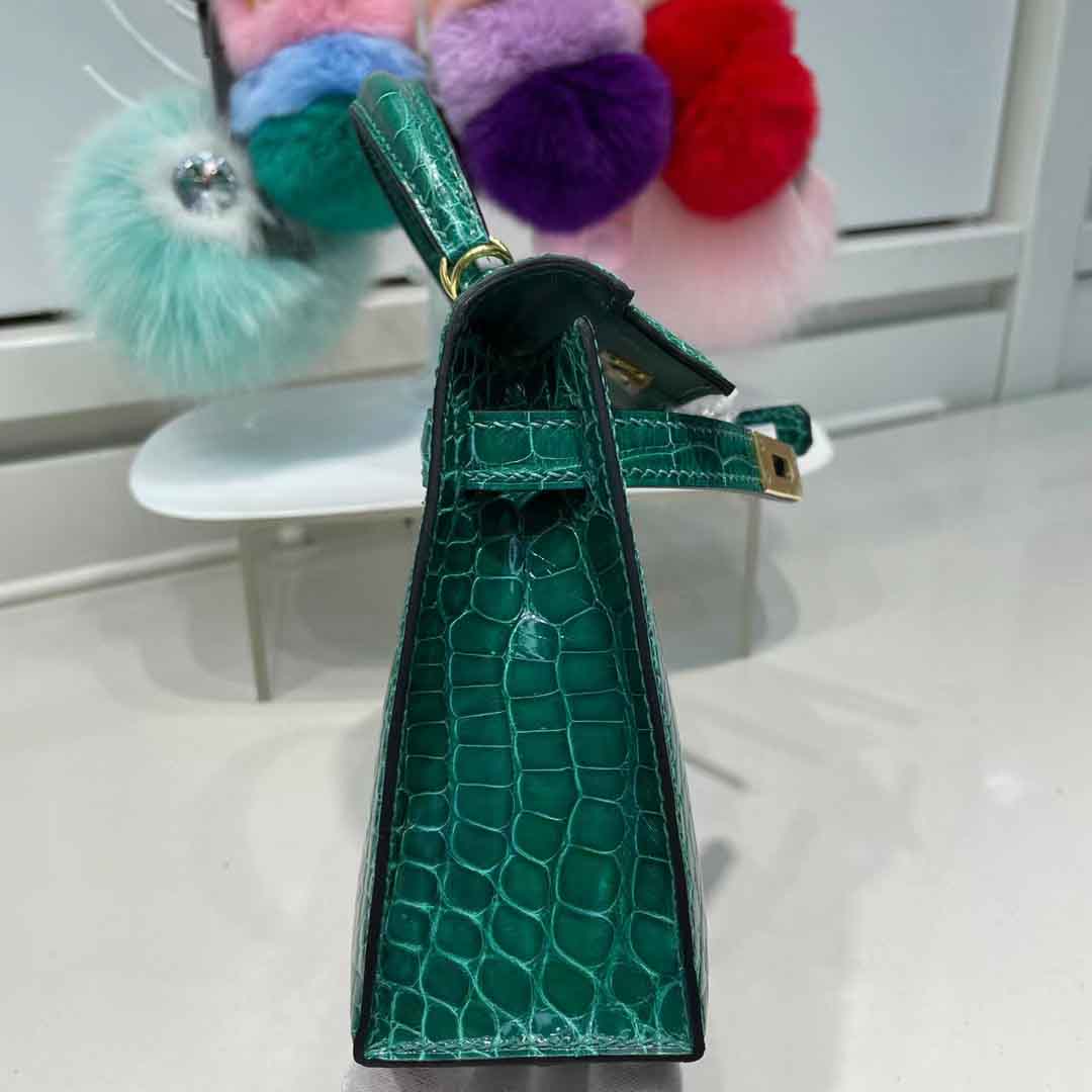 mini凯丽二代祖母绿鸭子蓝2色高光鳄鱼皮女士手提包厂家