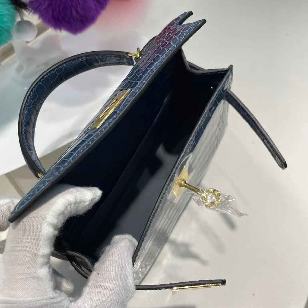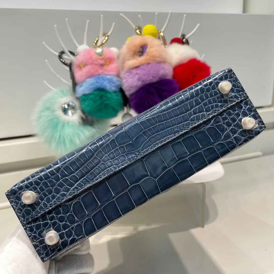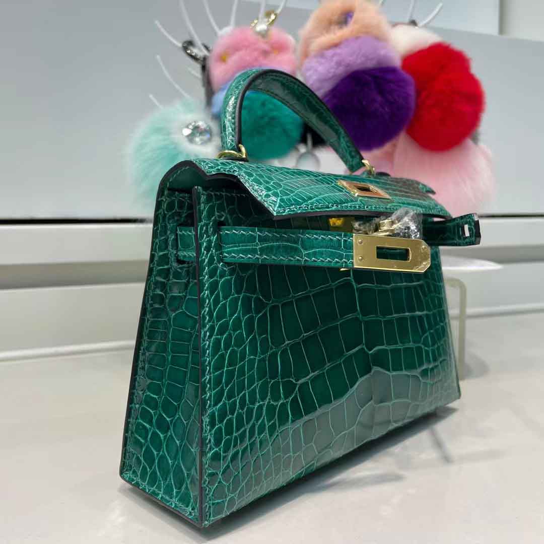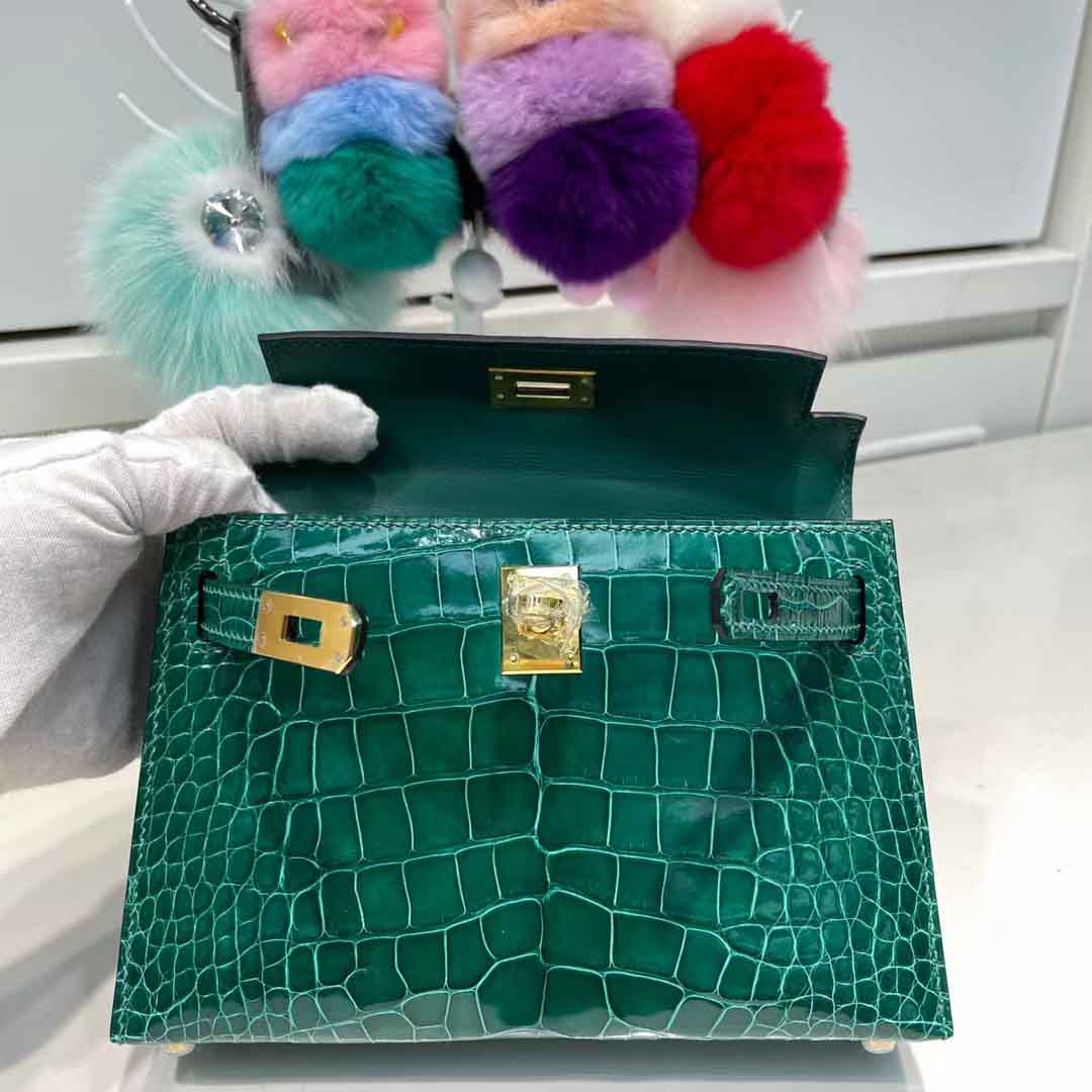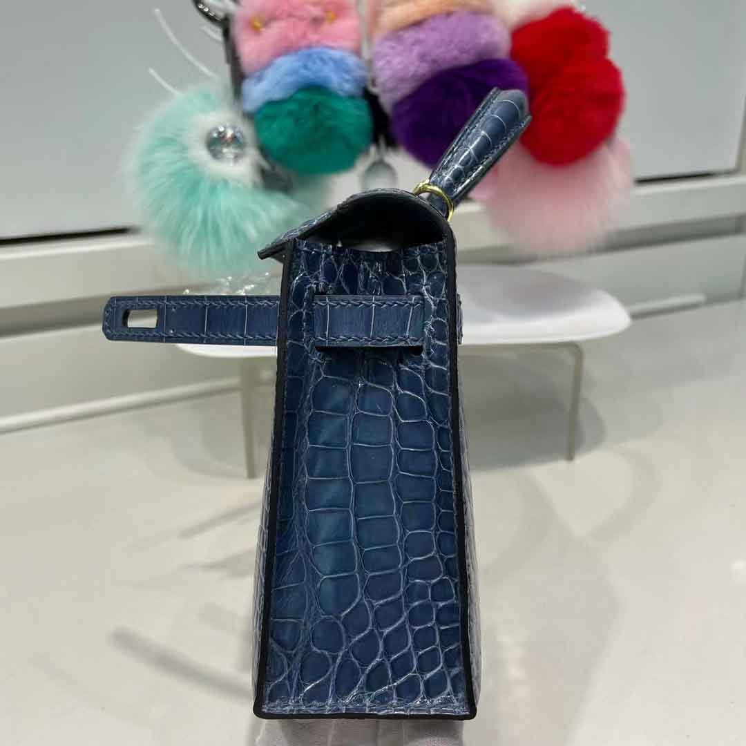 mini凯丽二代祖母绿鸭子蓝2色高光鳄鱼皮女士手提包厂家