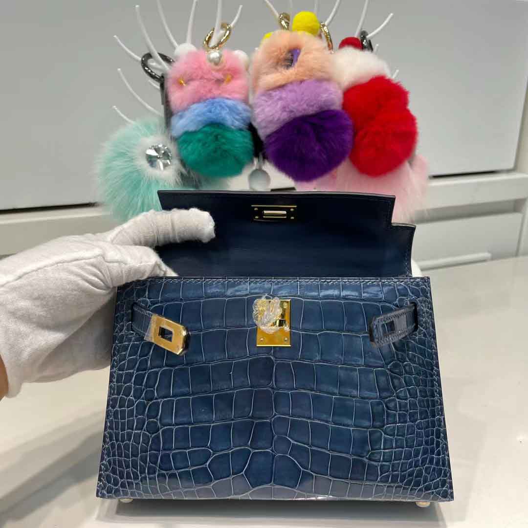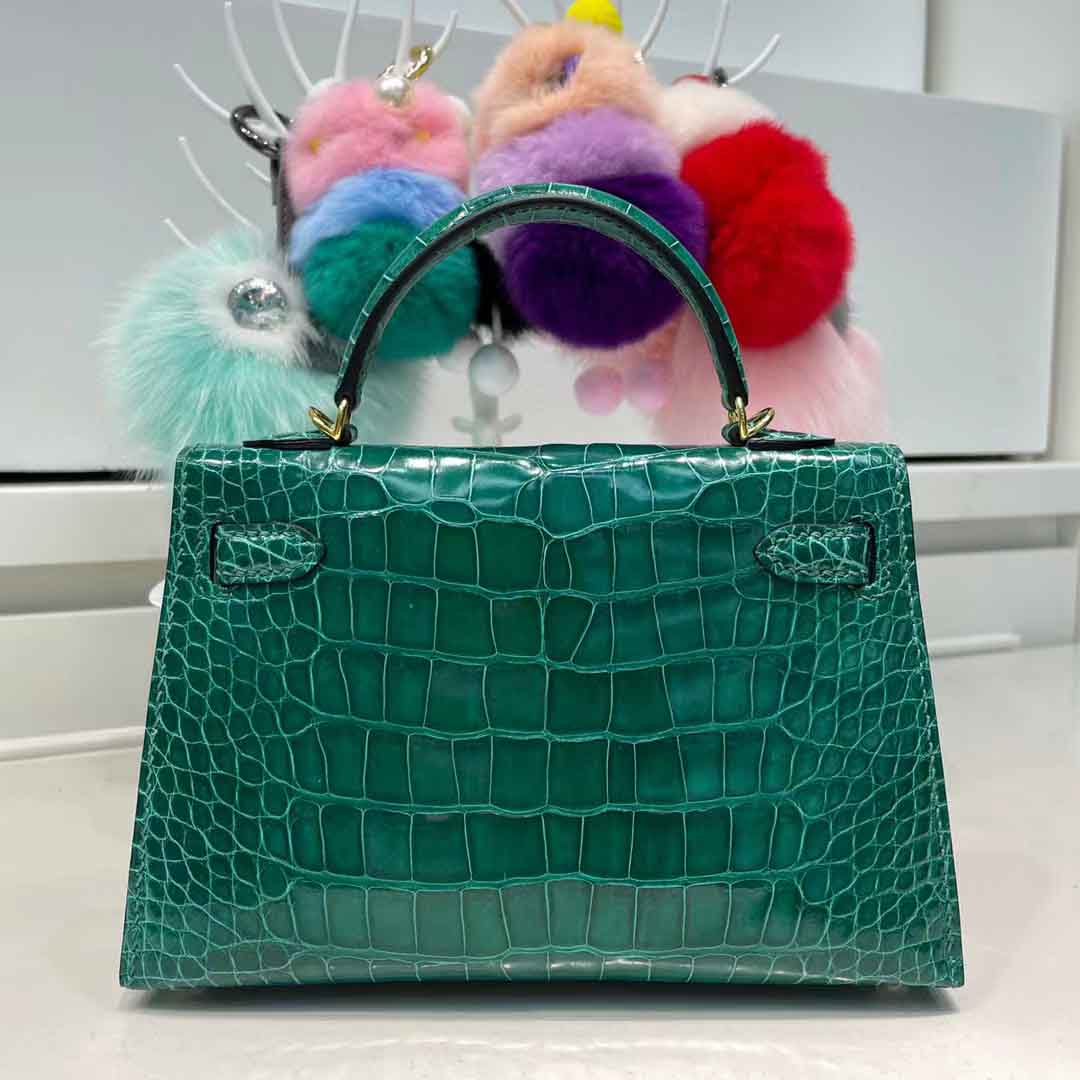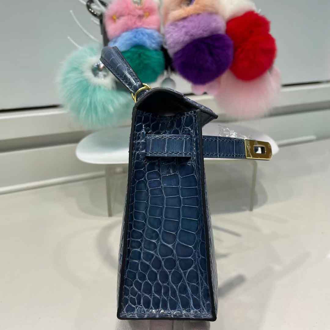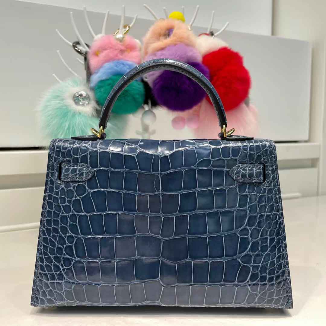 mini凯丽二代祖母绿鸭子蓝2色高光鳄鱼皮女士手提包厂家