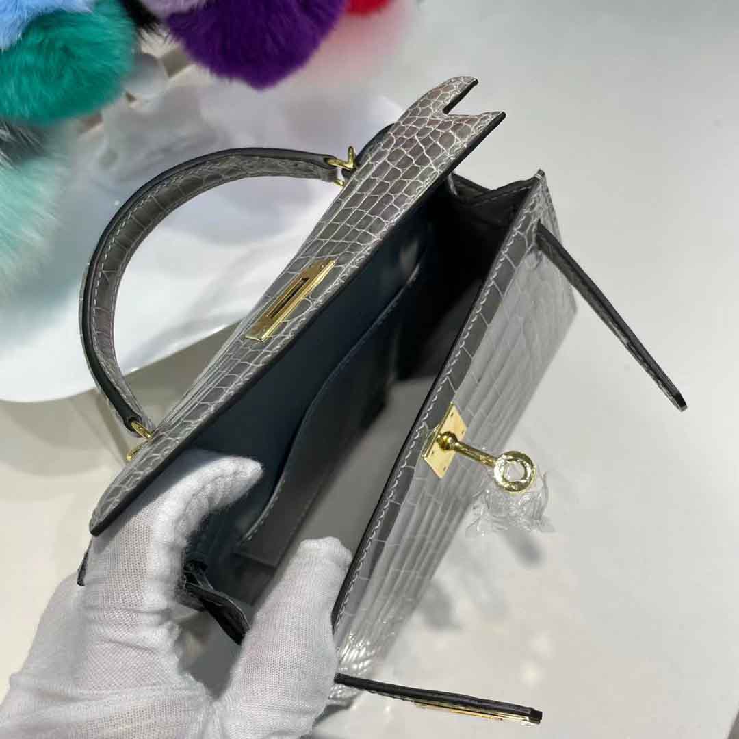 Kelly二代进口产地意大利美洲鳄 18K渡金五金.金扣全手工缝制