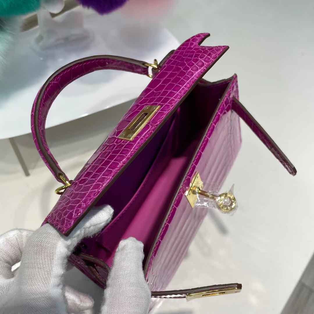 玫红色和斑鸠灰高光鳄鱼皮女士晚宴包订做工厂,奢侈品私人定做工作室 微信 95506803