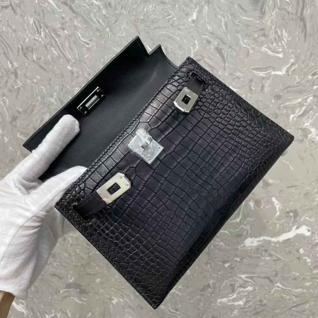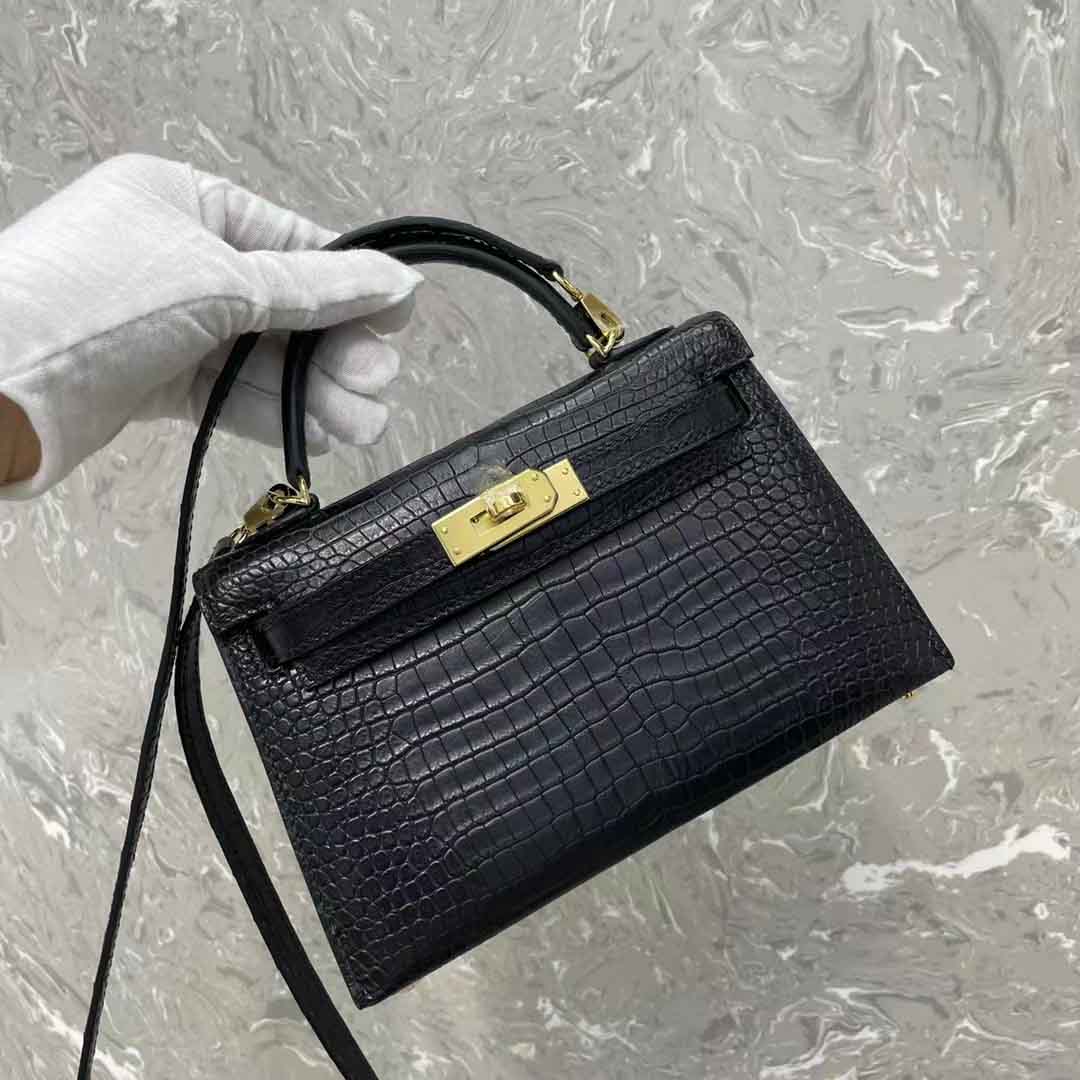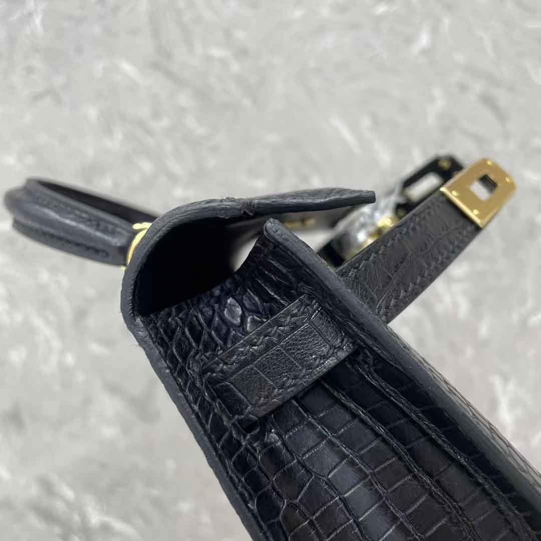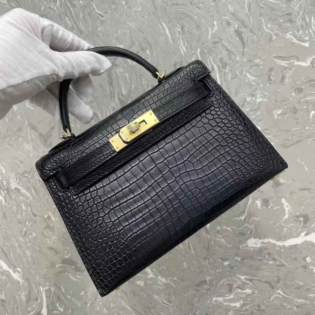 凯丽kl二代mini女士晚宴包订做工厂,湾鳄二代黑色金扣银扣奢侈品订制工作室