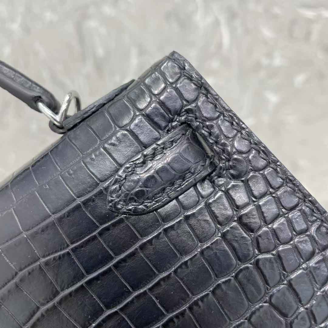 kelly二代19cm湾鳄肚皮女士包,手缝蜡线