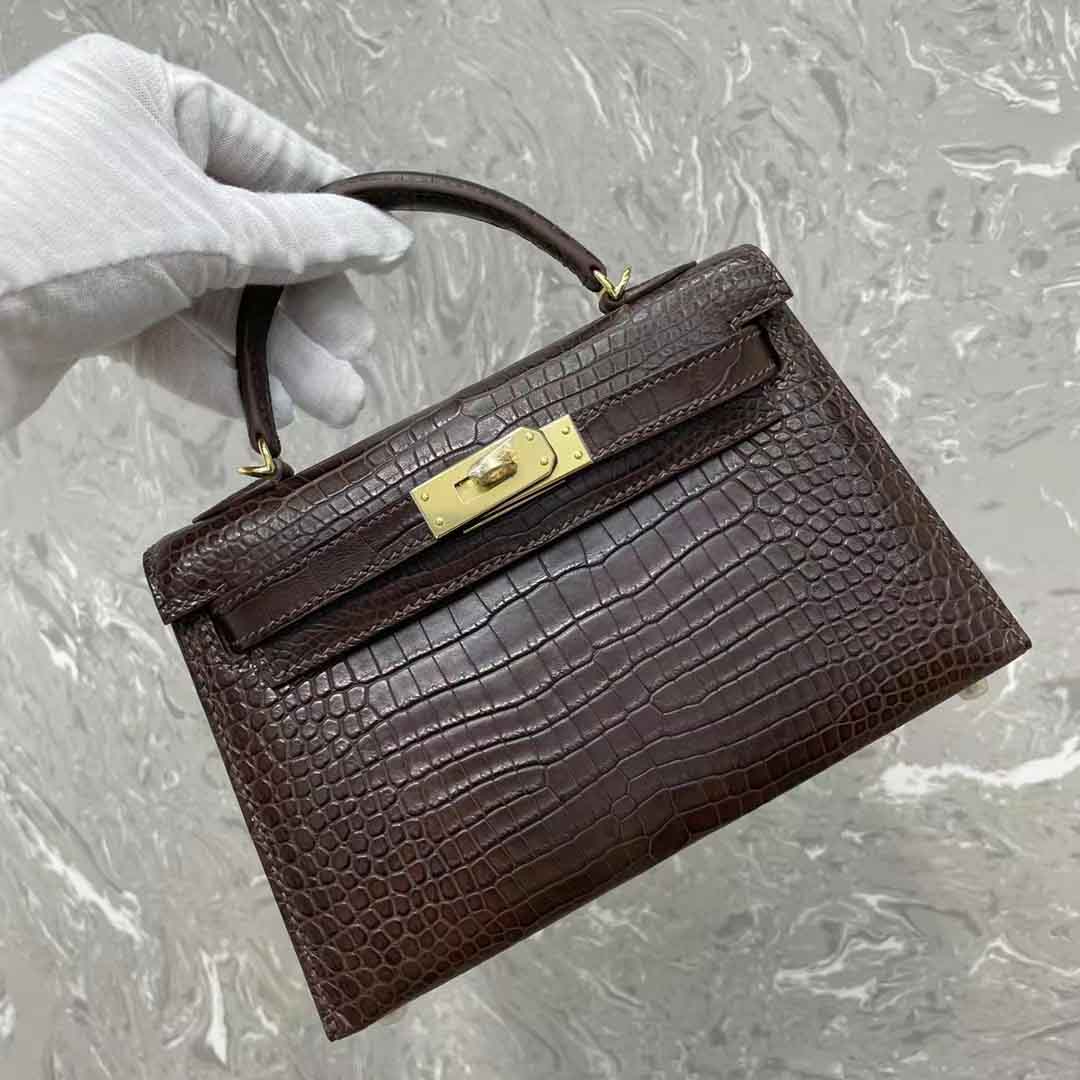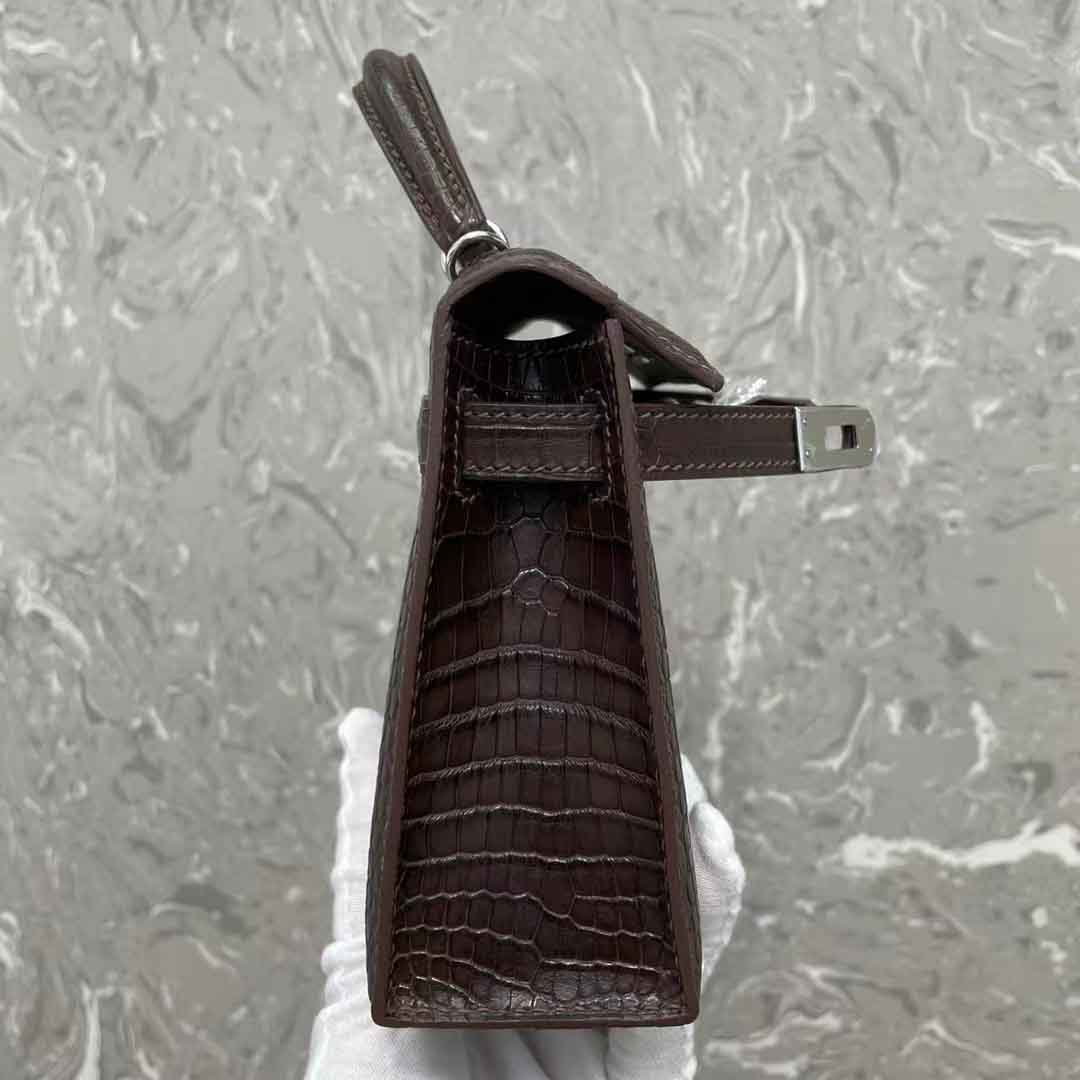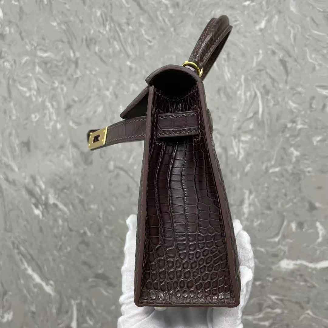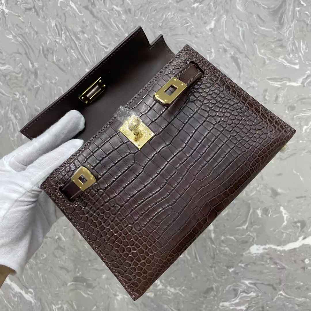 凯丽kl二代mini女士晚宴包订做工厂,湾鳄二代咖色金扣银扣奢侈品订制工作室