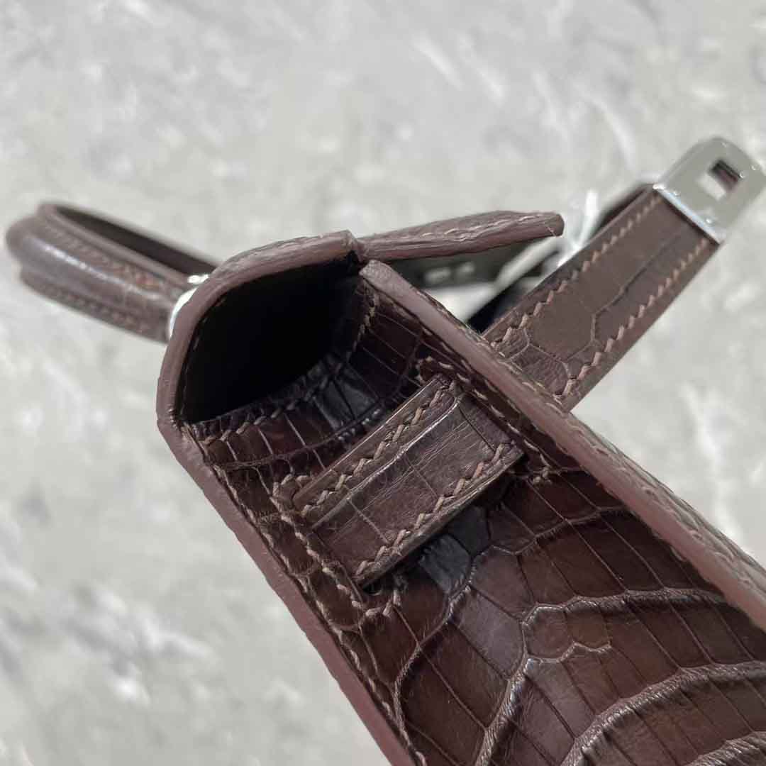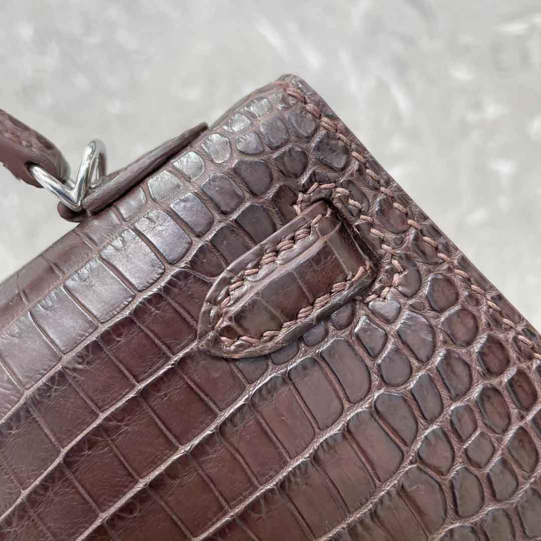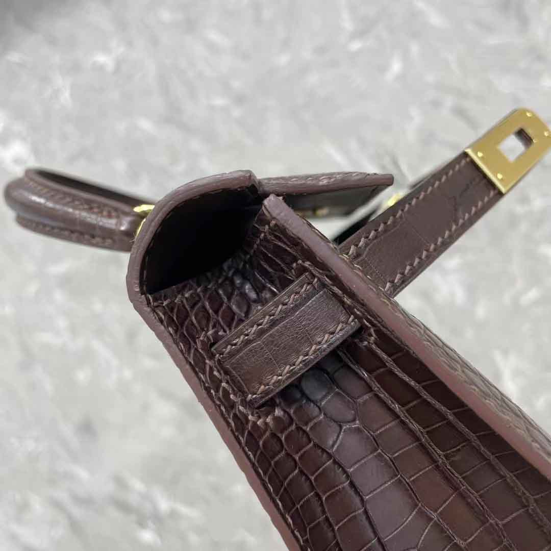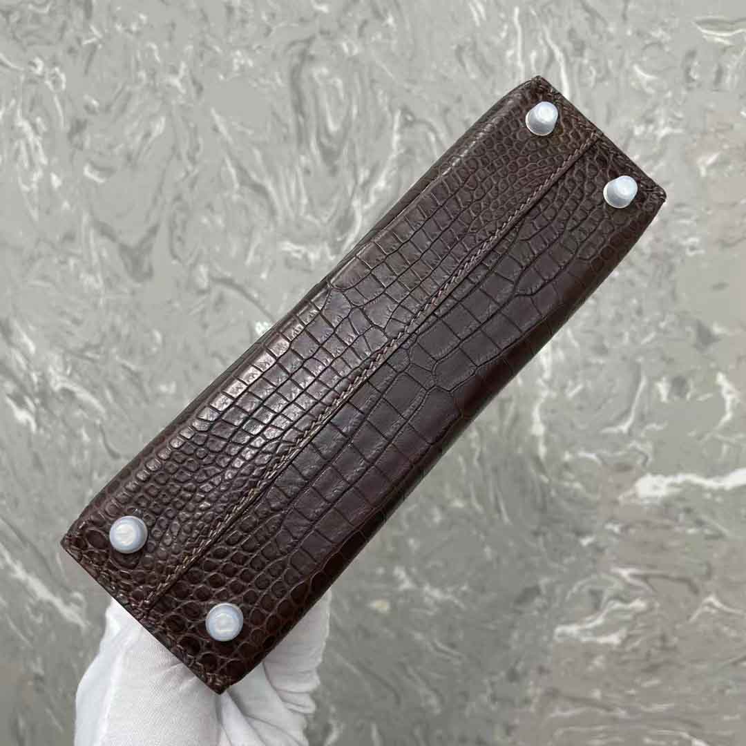 kelly二代19cm湾鳄肚皮女士包,手缝蜡线