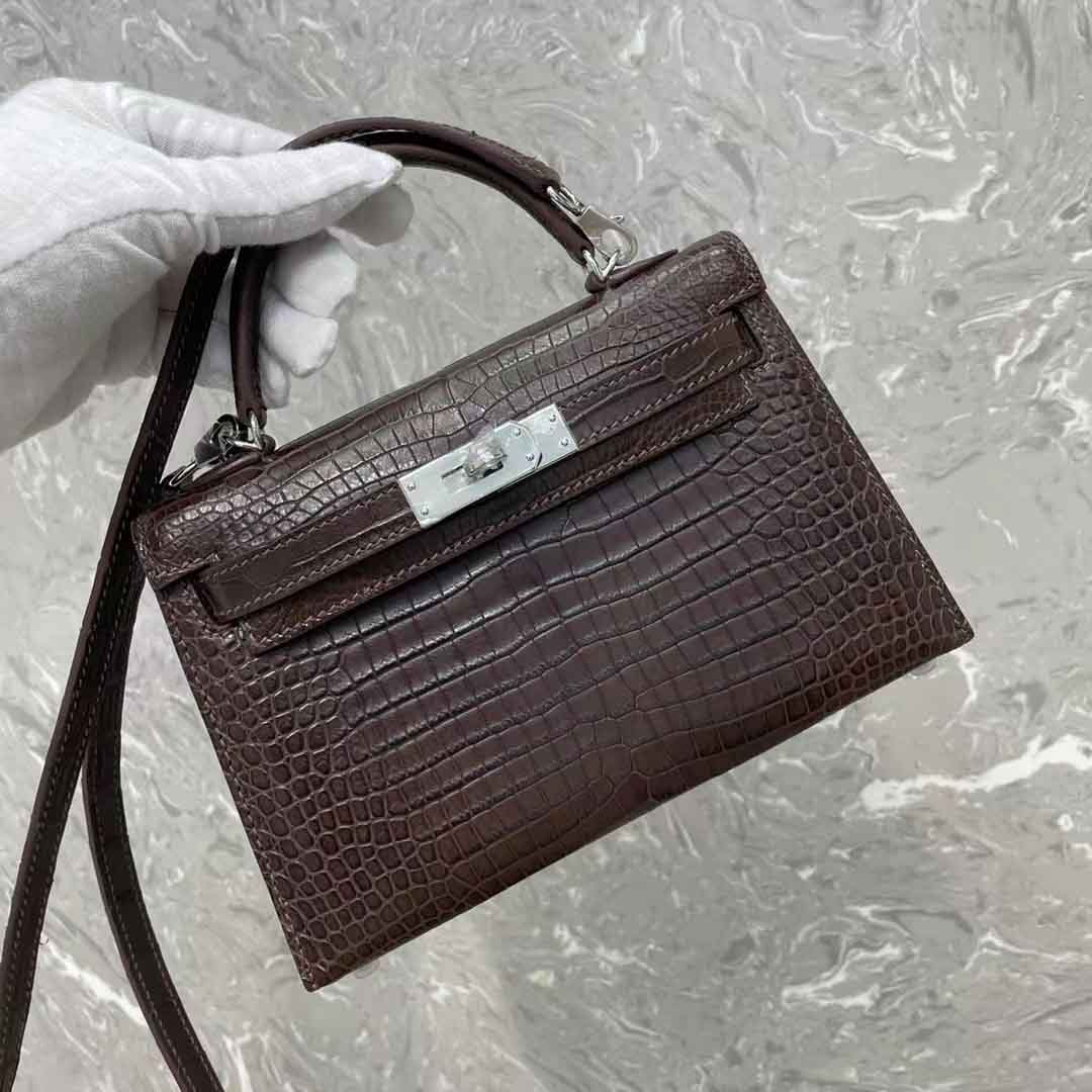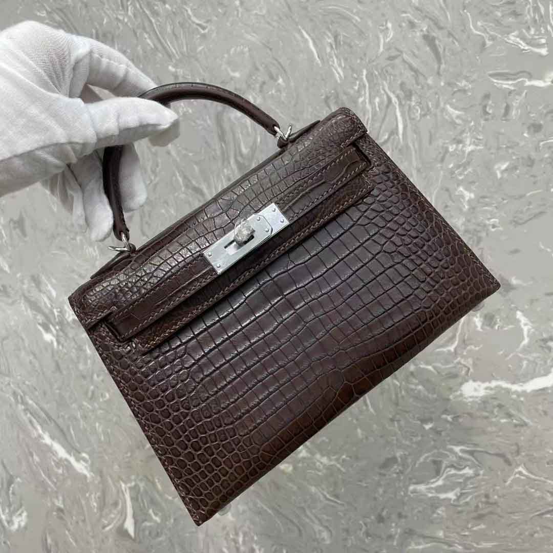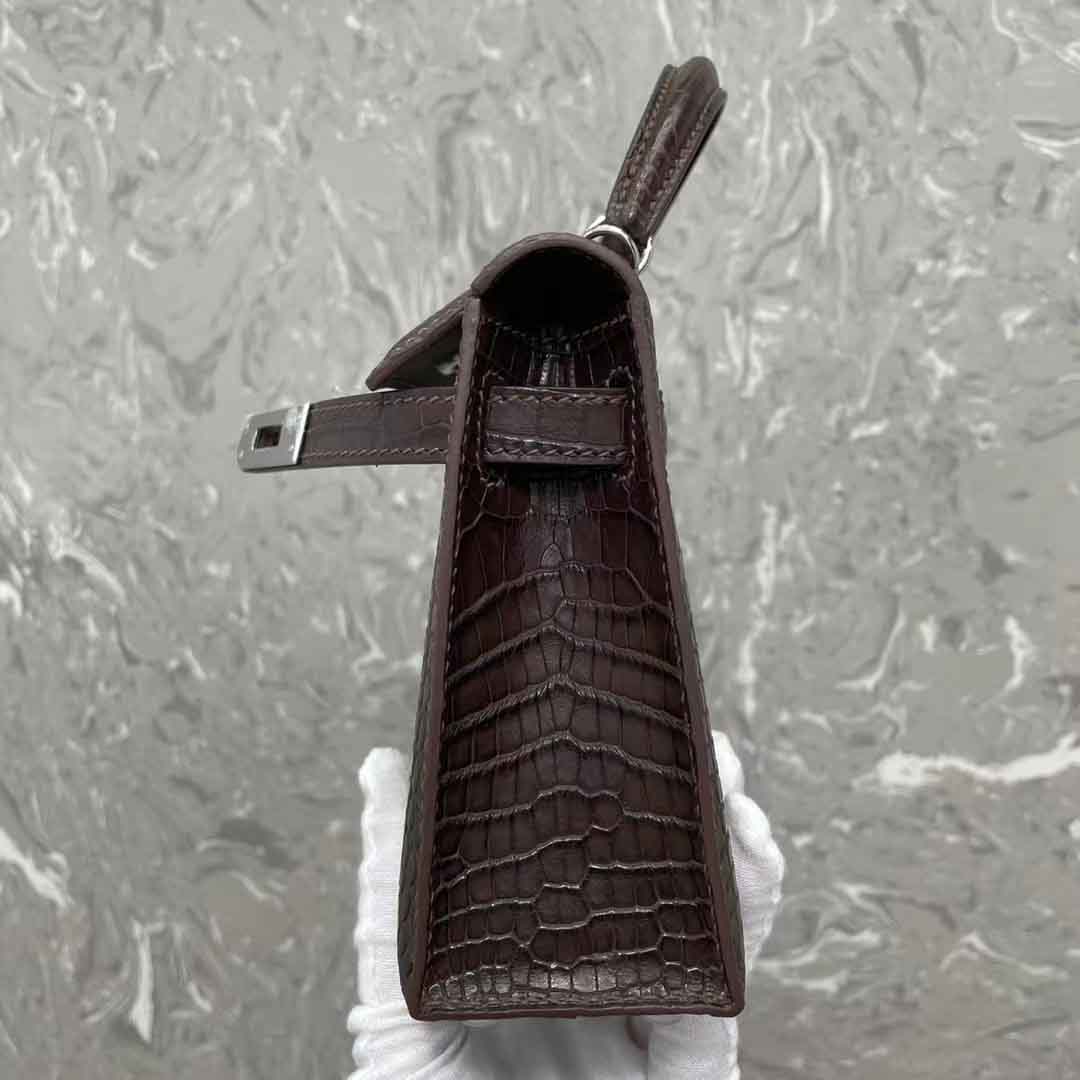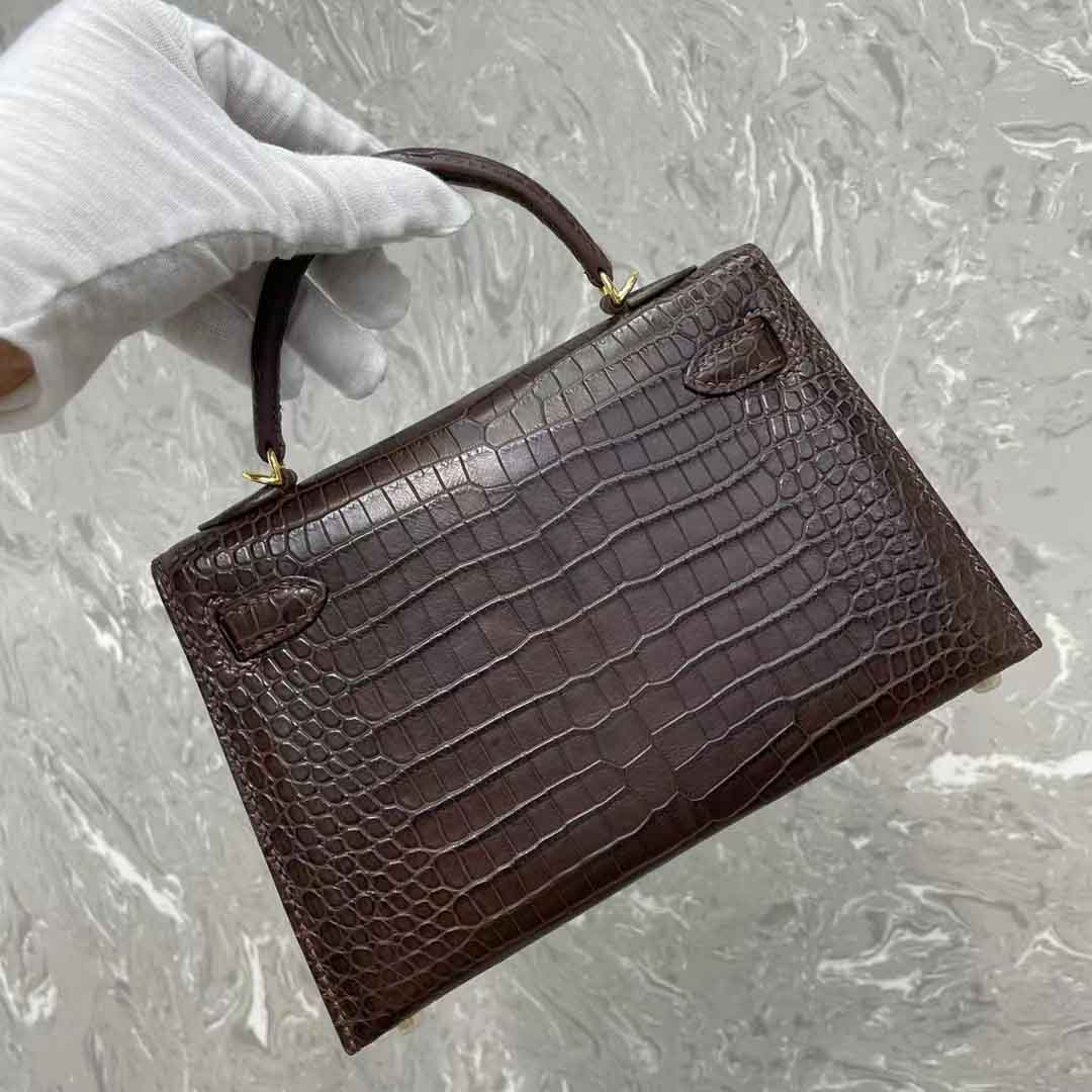 kelly二代19cm湾鳄肚皮女士包,手缝蜡线