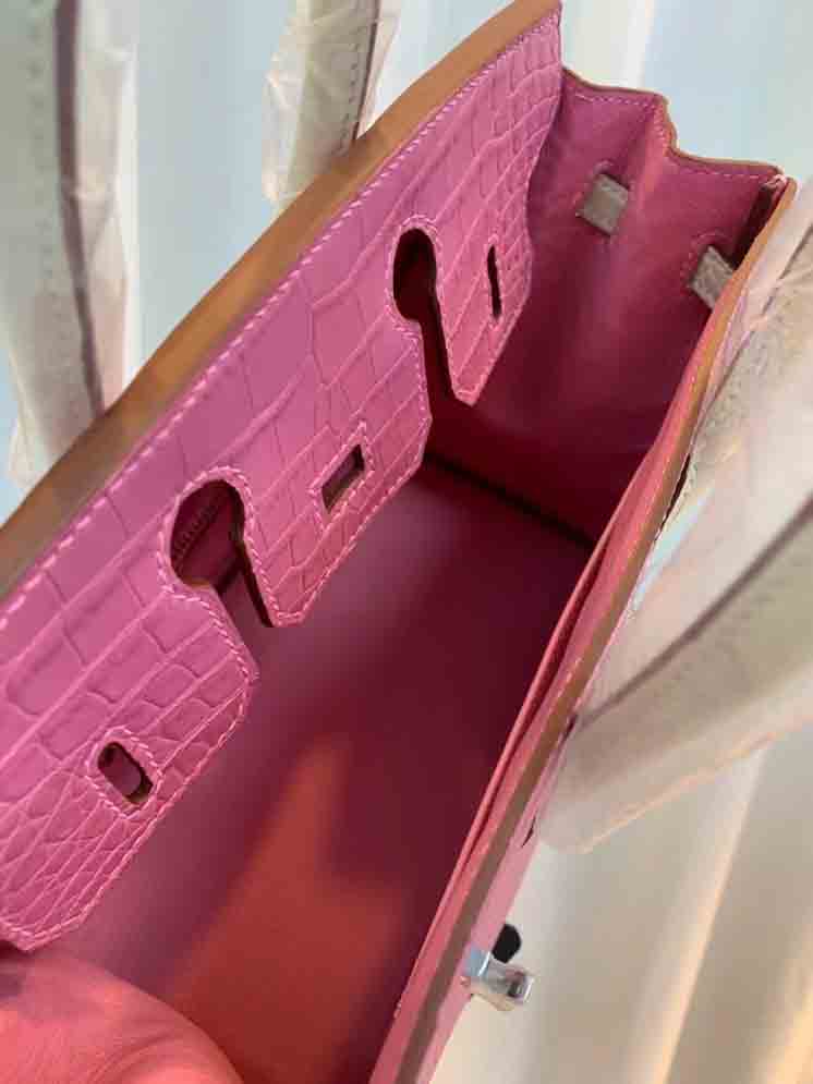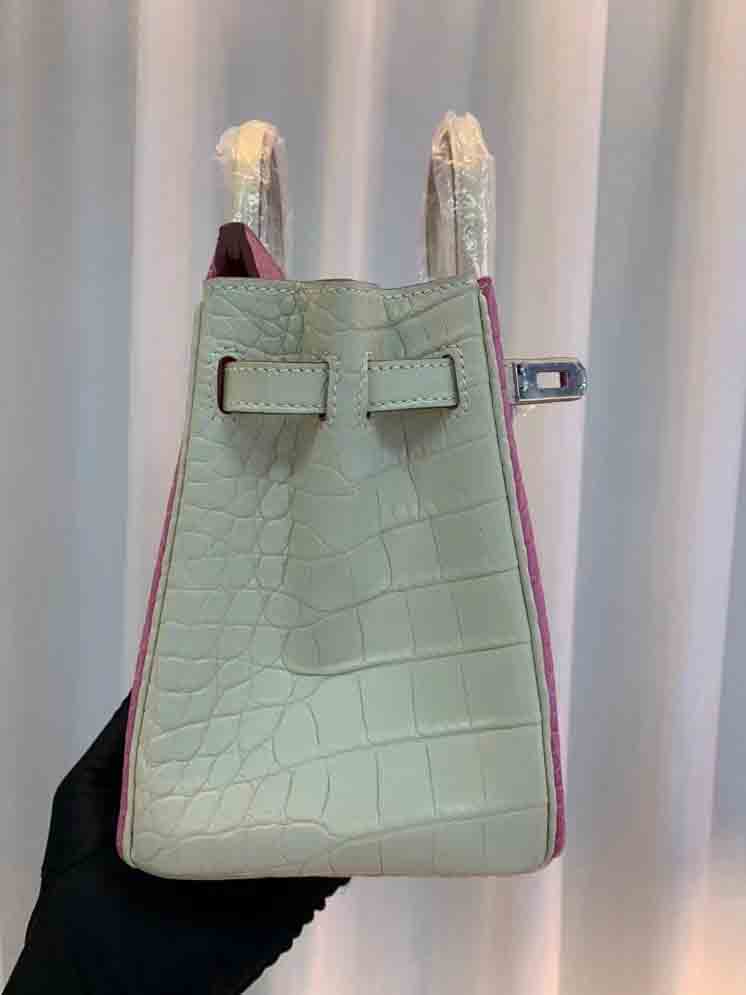 大象灰樱花拼色美洲鳄鱼皮女包订制工厂