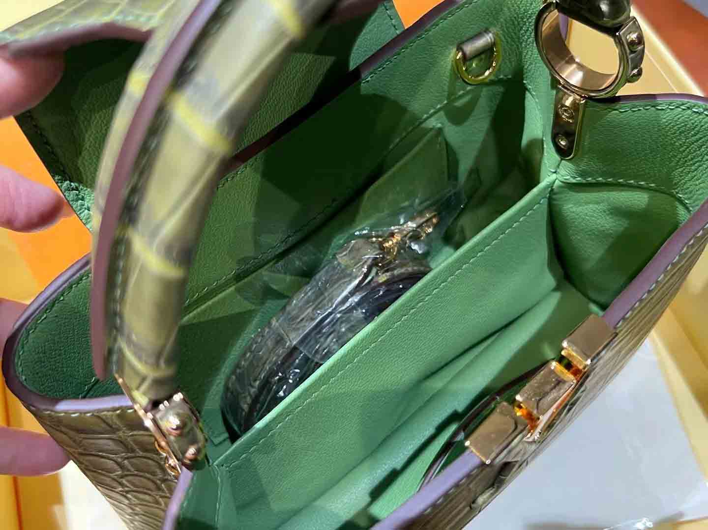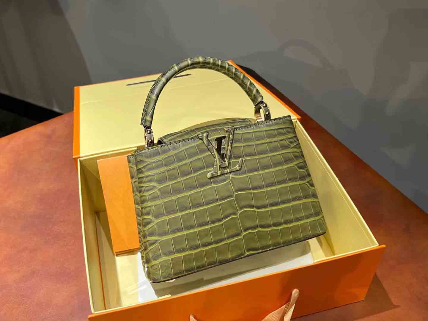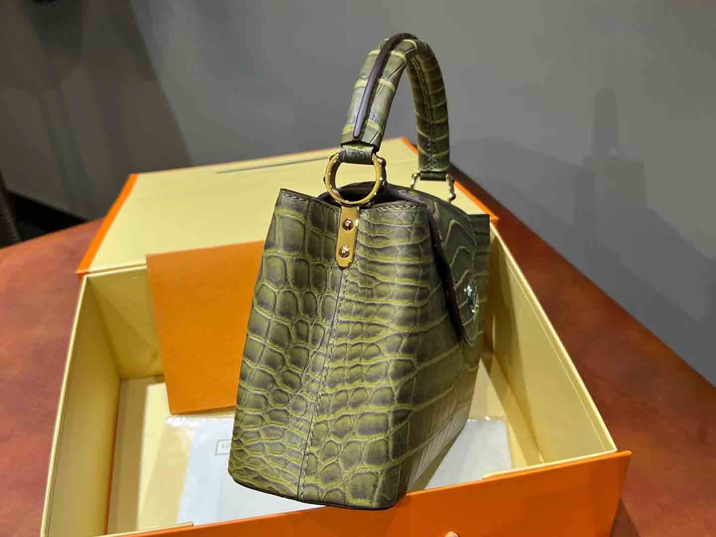 客订 LV mini capucines 橄榄绿 鳄鱼皮女包。