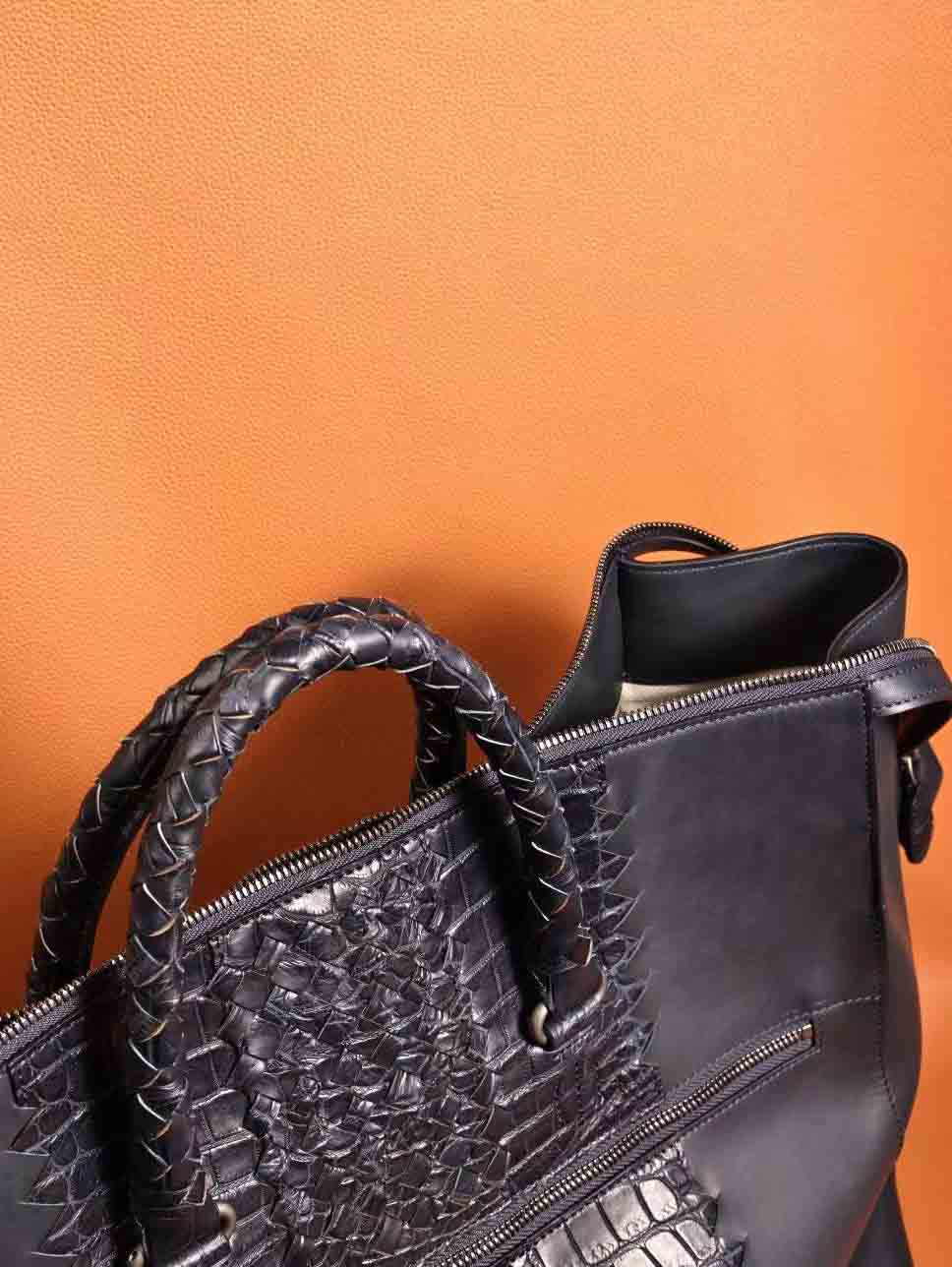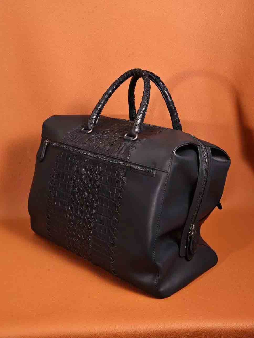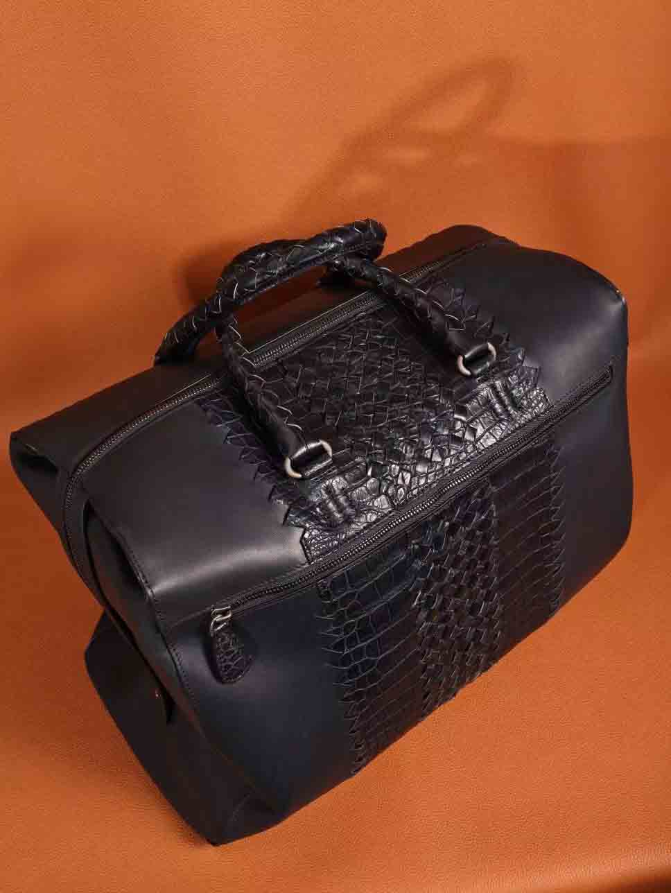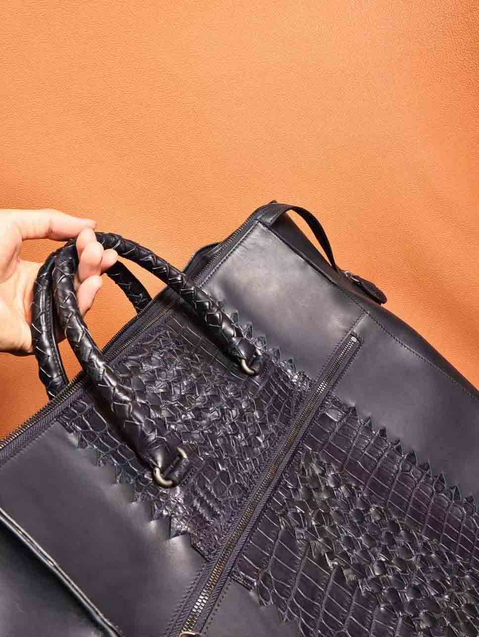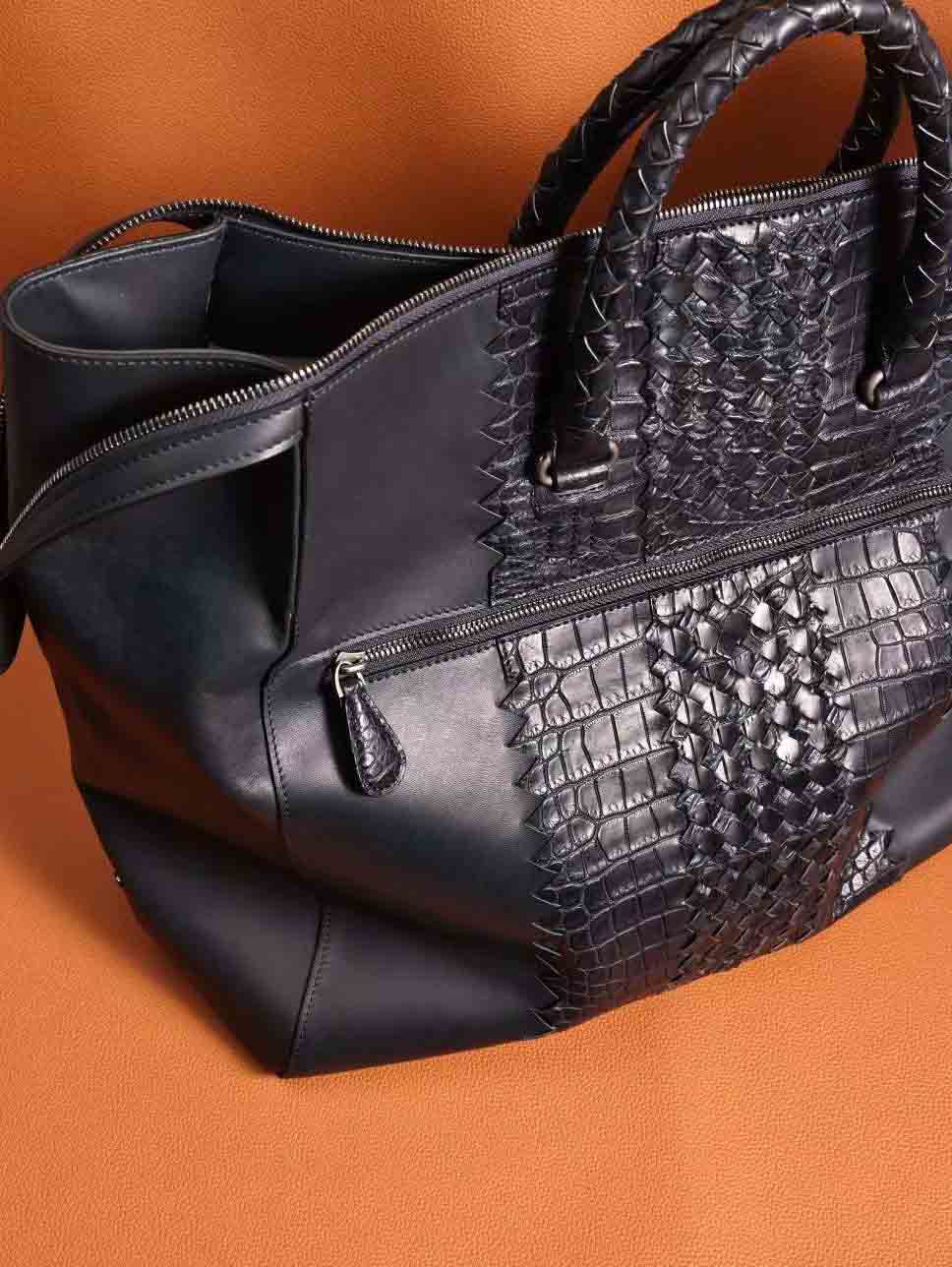 男士鳄鱼皮包订做。编织手提旅行袋,深蓝湾鳄走秀款,精致工艺,实拍现货。52*41*20CM