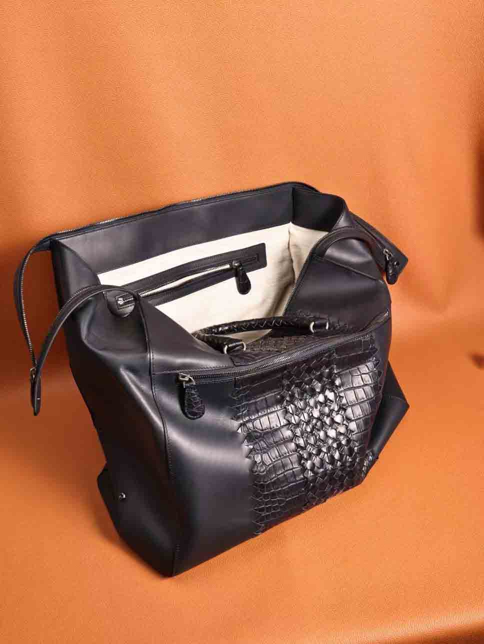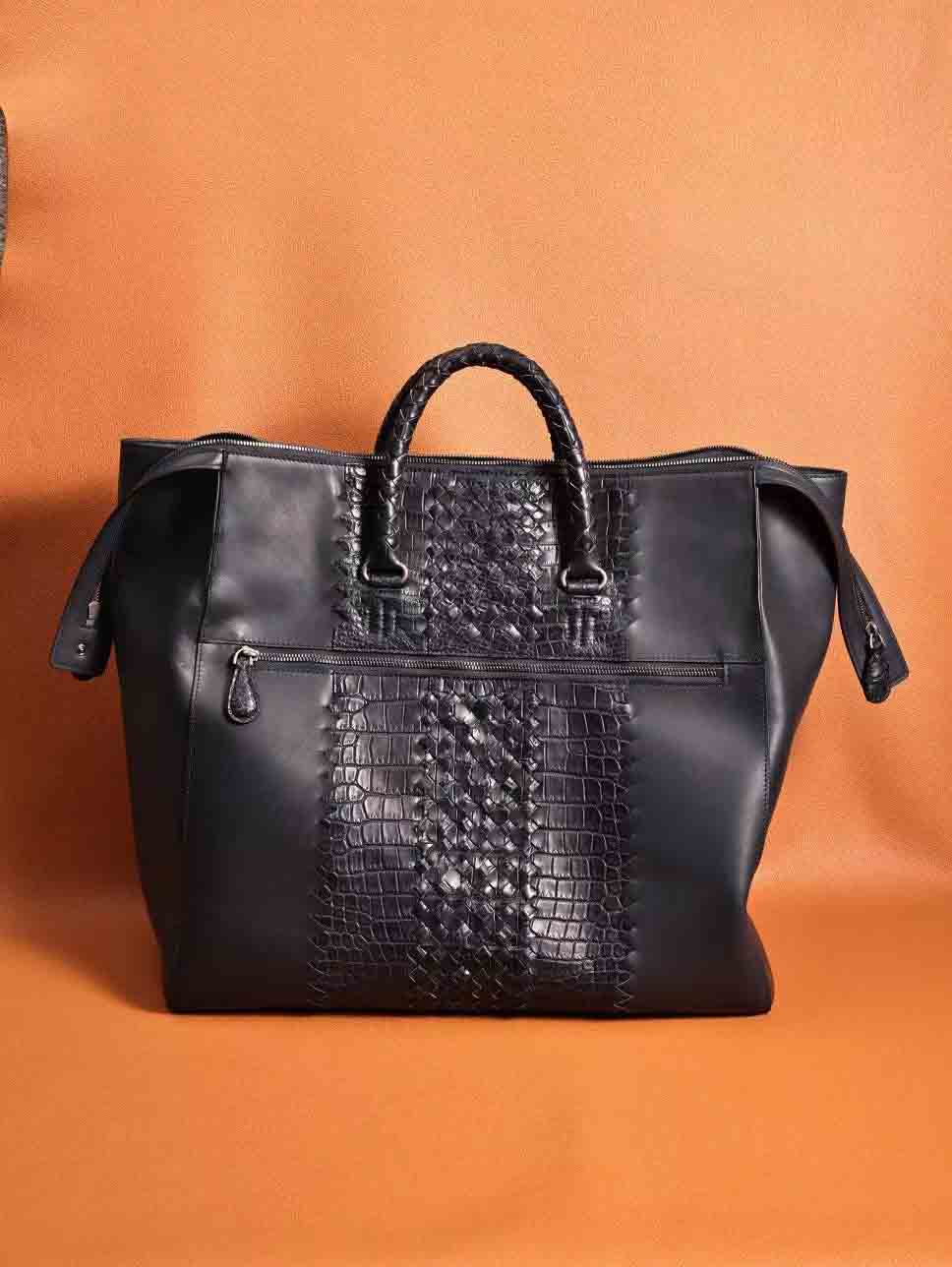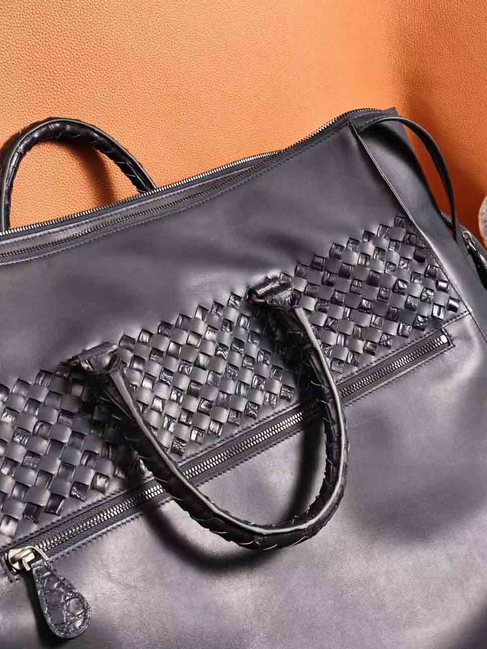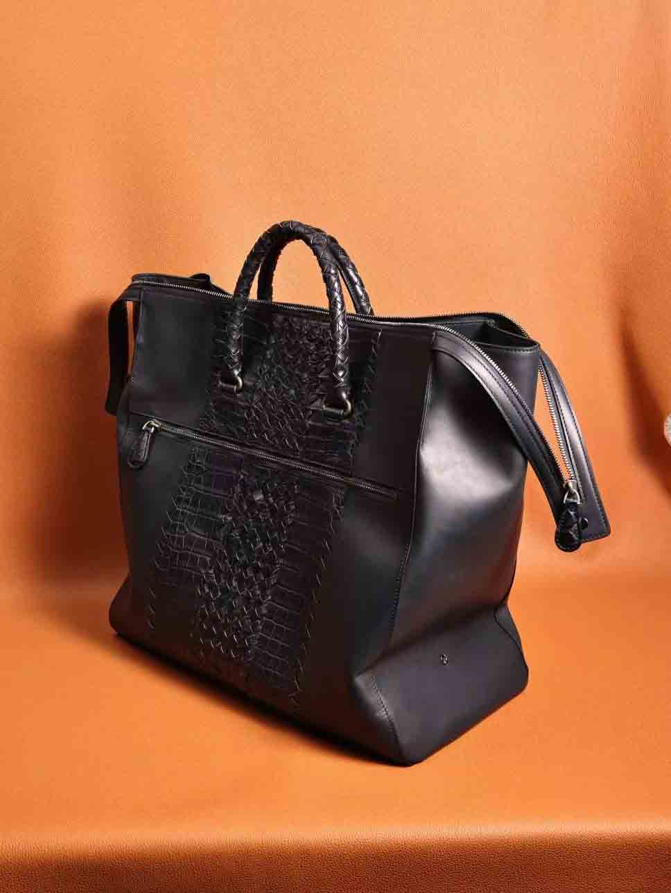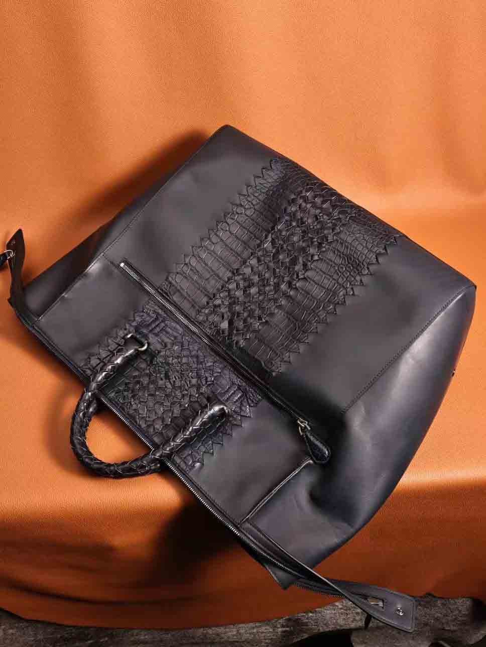 男士鳄鱼皮包订做。编织手提旅行袋,深蓝湾鳄走秀款,精致工艺,实拍现货。52*41*20CM