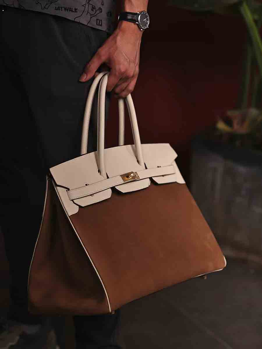 客订 反绒牛皮拼togo Birkin40,牛皮皮具定做工作室