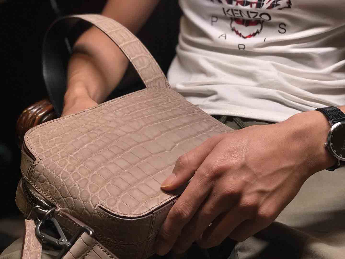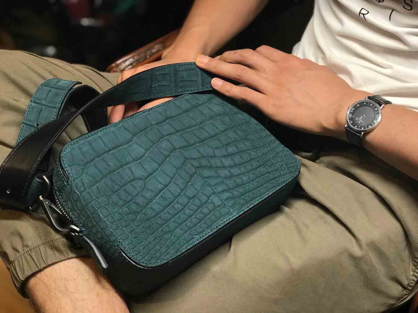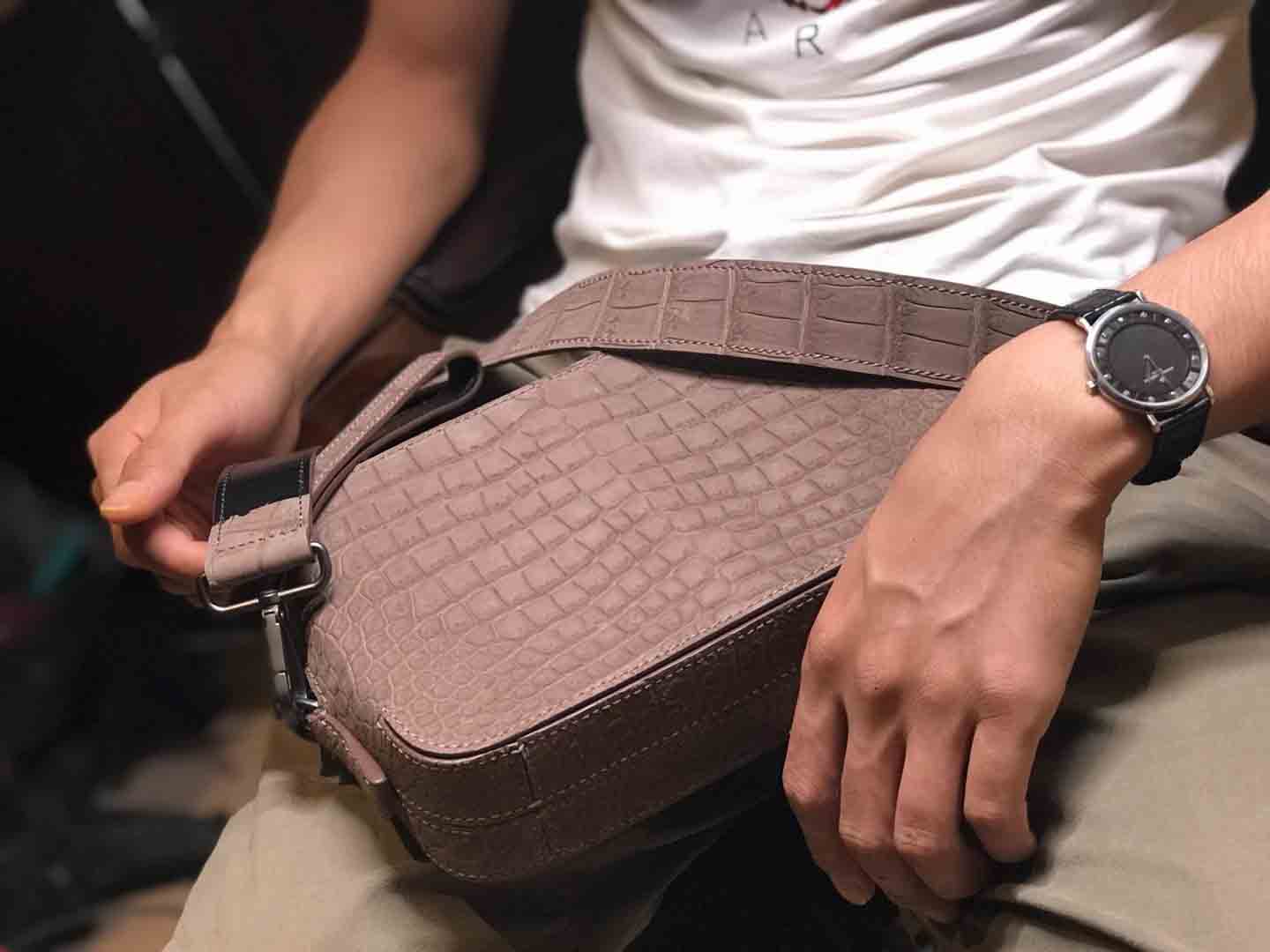 爆款-磨砂鳄鱼皮#mini邮差包男款客人寄来的正品版#既可以用作商务洽谈的手拿包,又可以作为时尚博主的街拍神器,规格-24-16-6