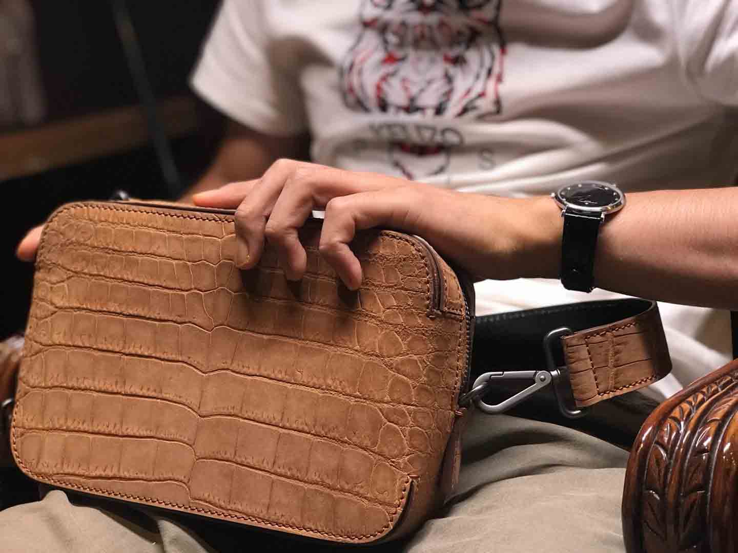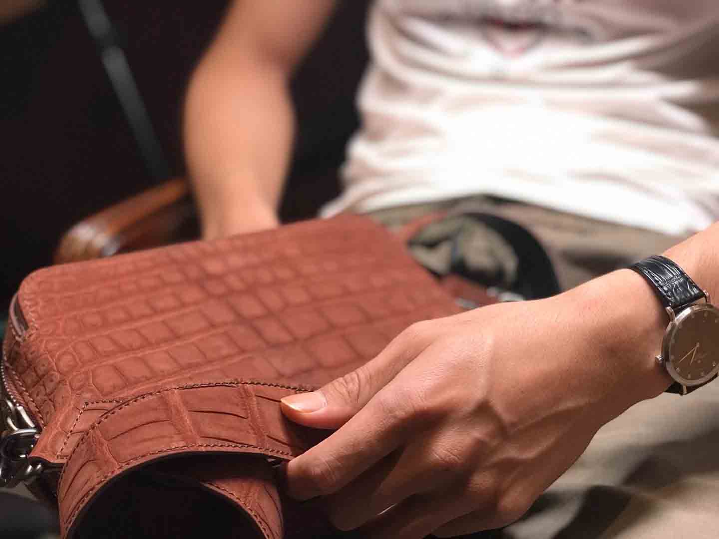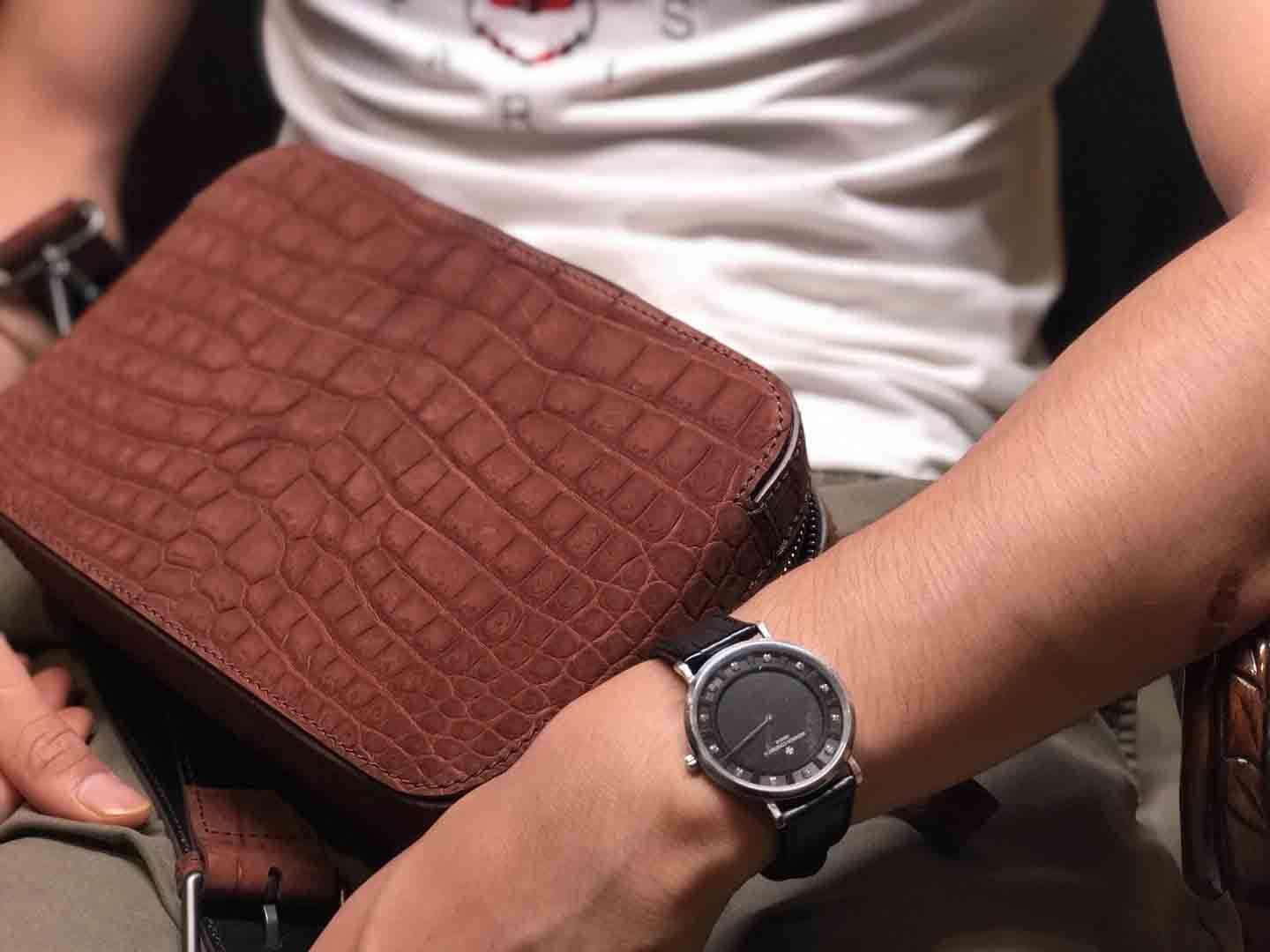 爆款-磨砂鳄鱼皮#mini邮差包男款客人寄来的正品版#既可以用作商务洽谈的手拿包,又可以作为时尚博主的街拍神器,规格-24-16-6