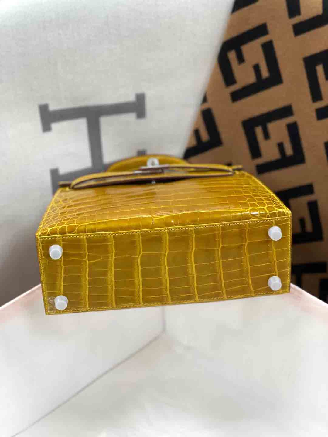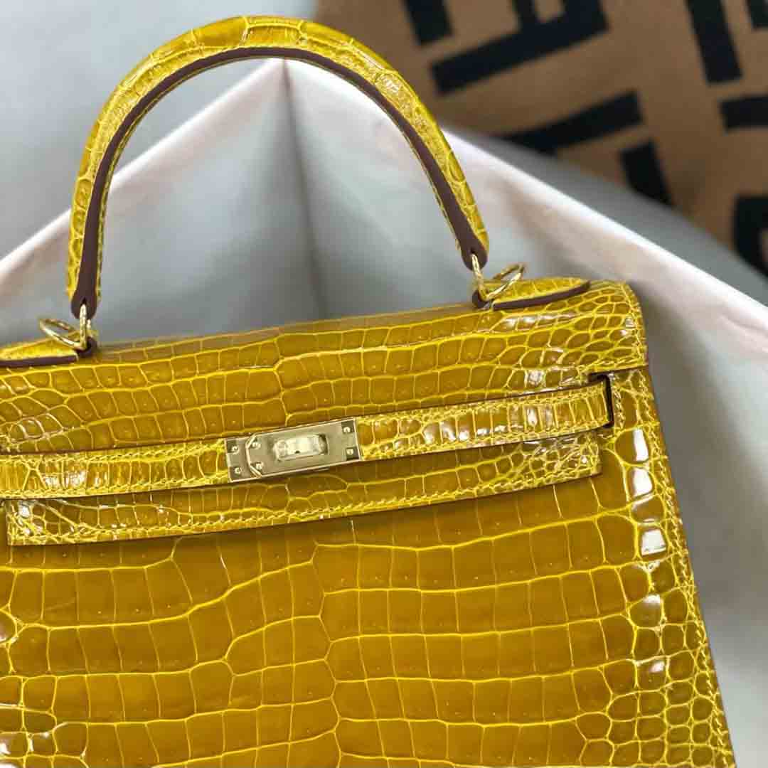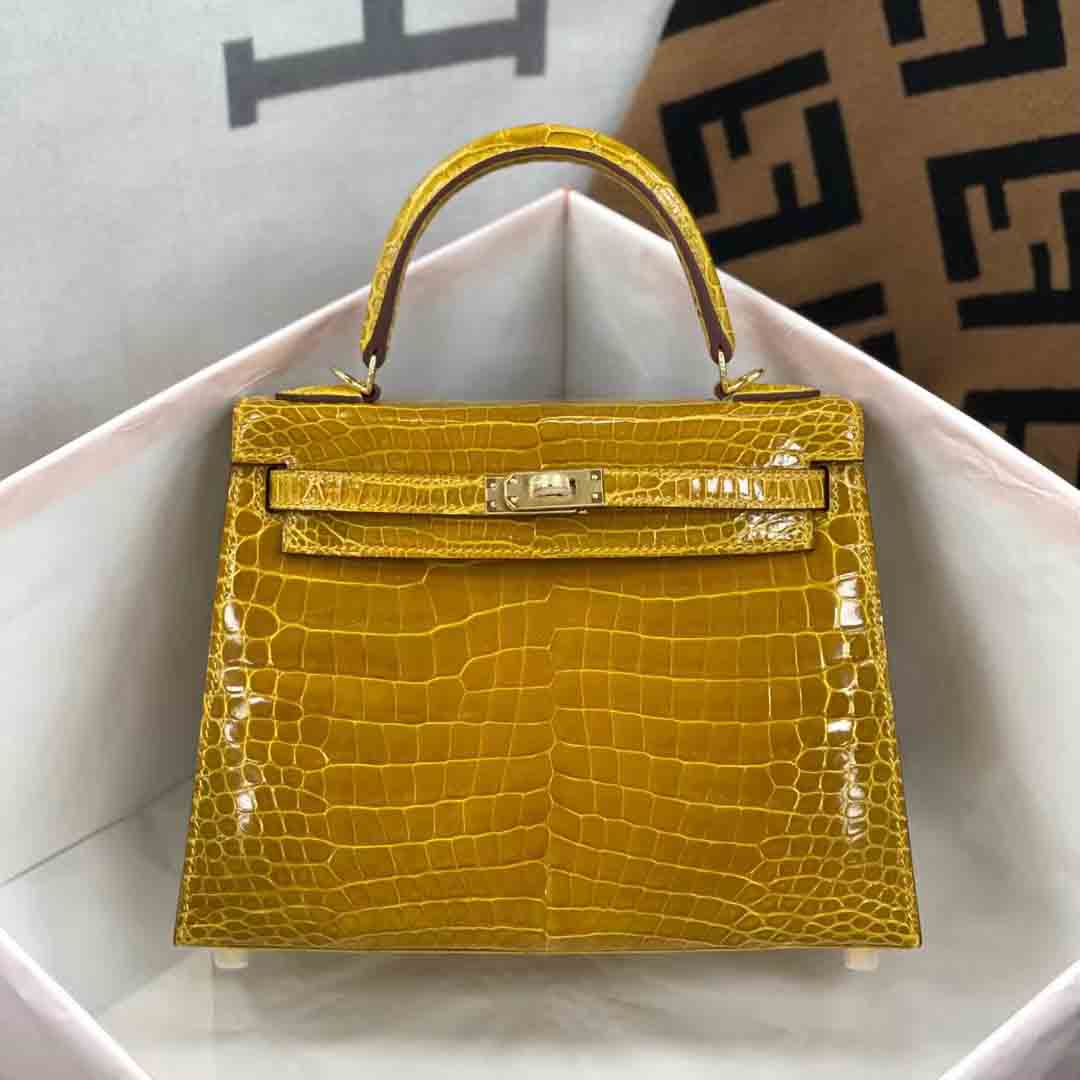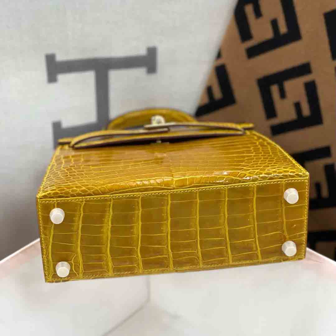 凯莉25~高光湾鳄、对版工艺,鳄鱼皮女手提包工厂批发