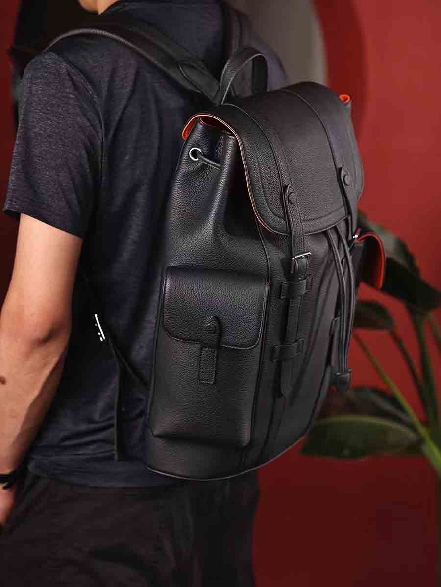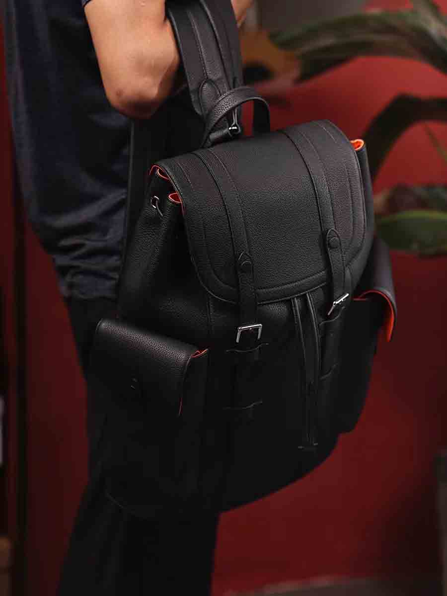 经典荔枝纹Togo牛皮双肩背包 拼色设计 客订