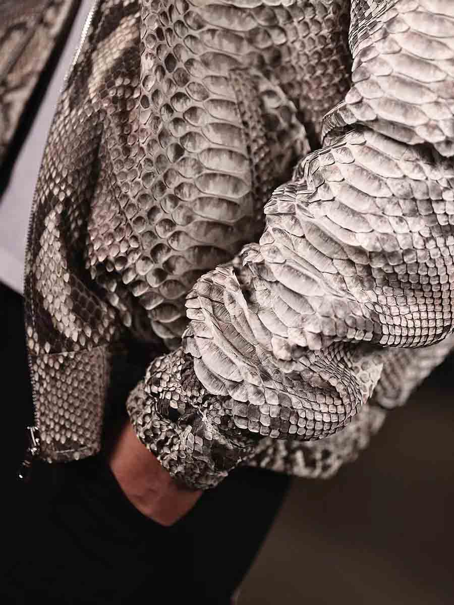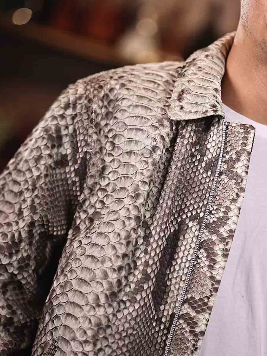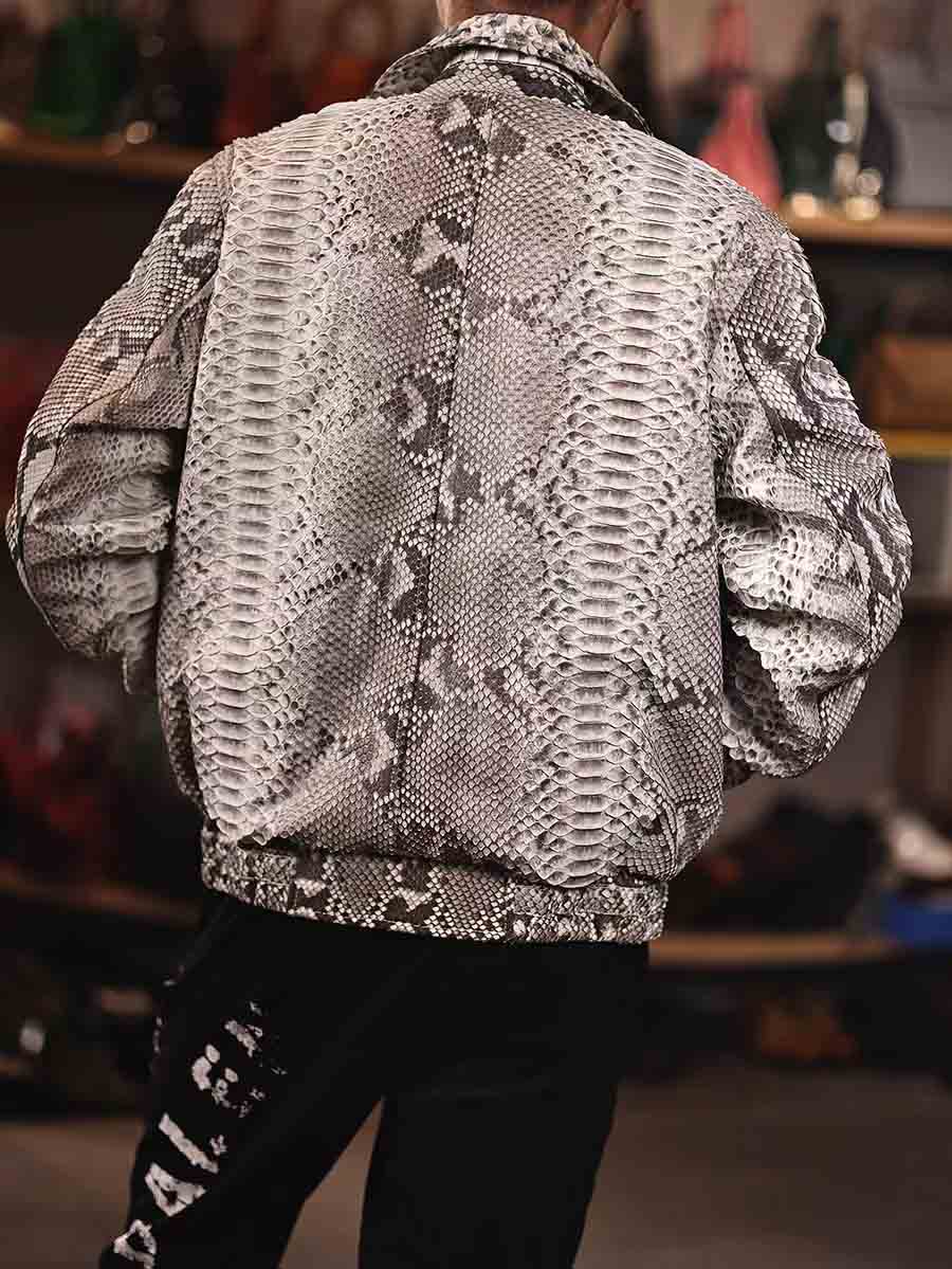 定制 | 进口蟒蛇皮男士夹克定制。蟒蛇皮具订制厂家联系微信 95506803