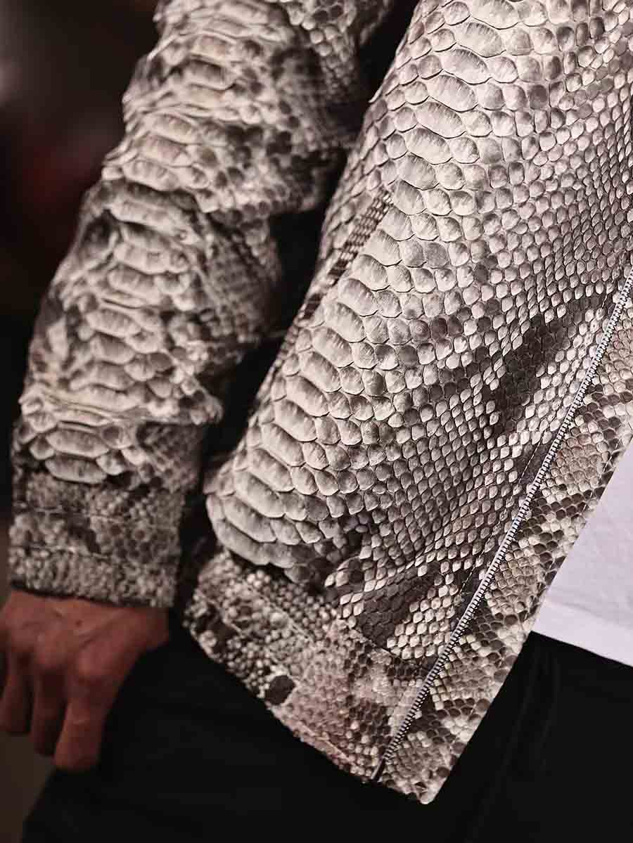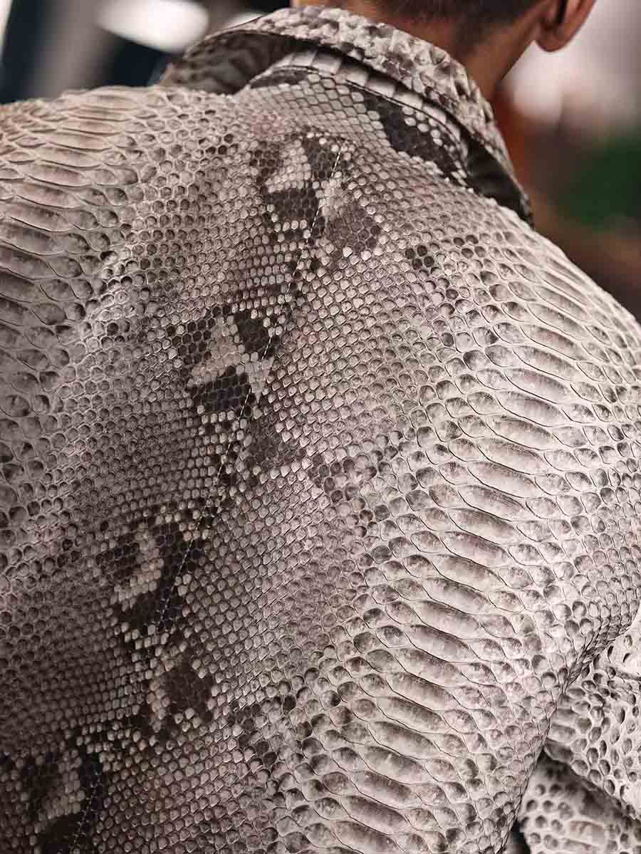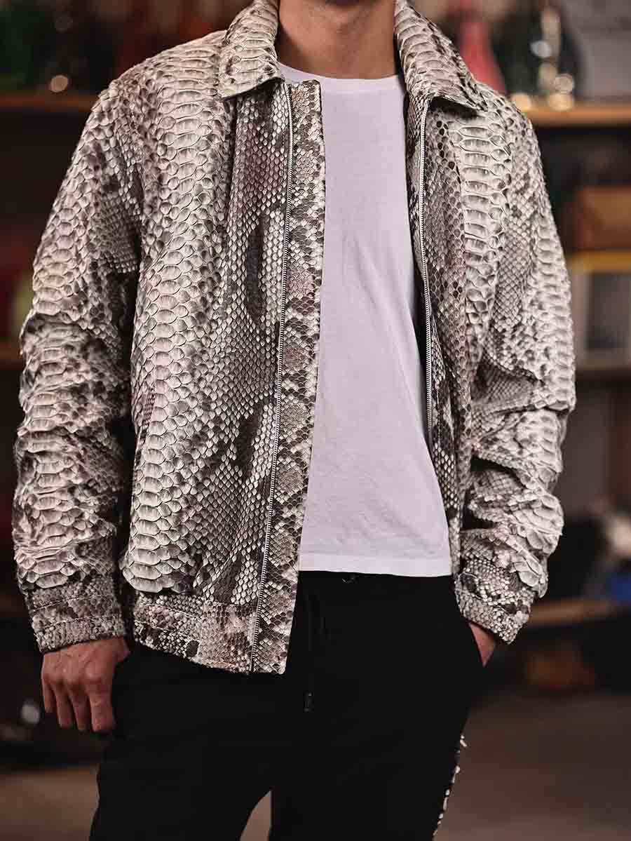 定制 | 进口蟒蛇皮男士夹克定制。蟒蛇皮具订制厂家联系微信 95506803
