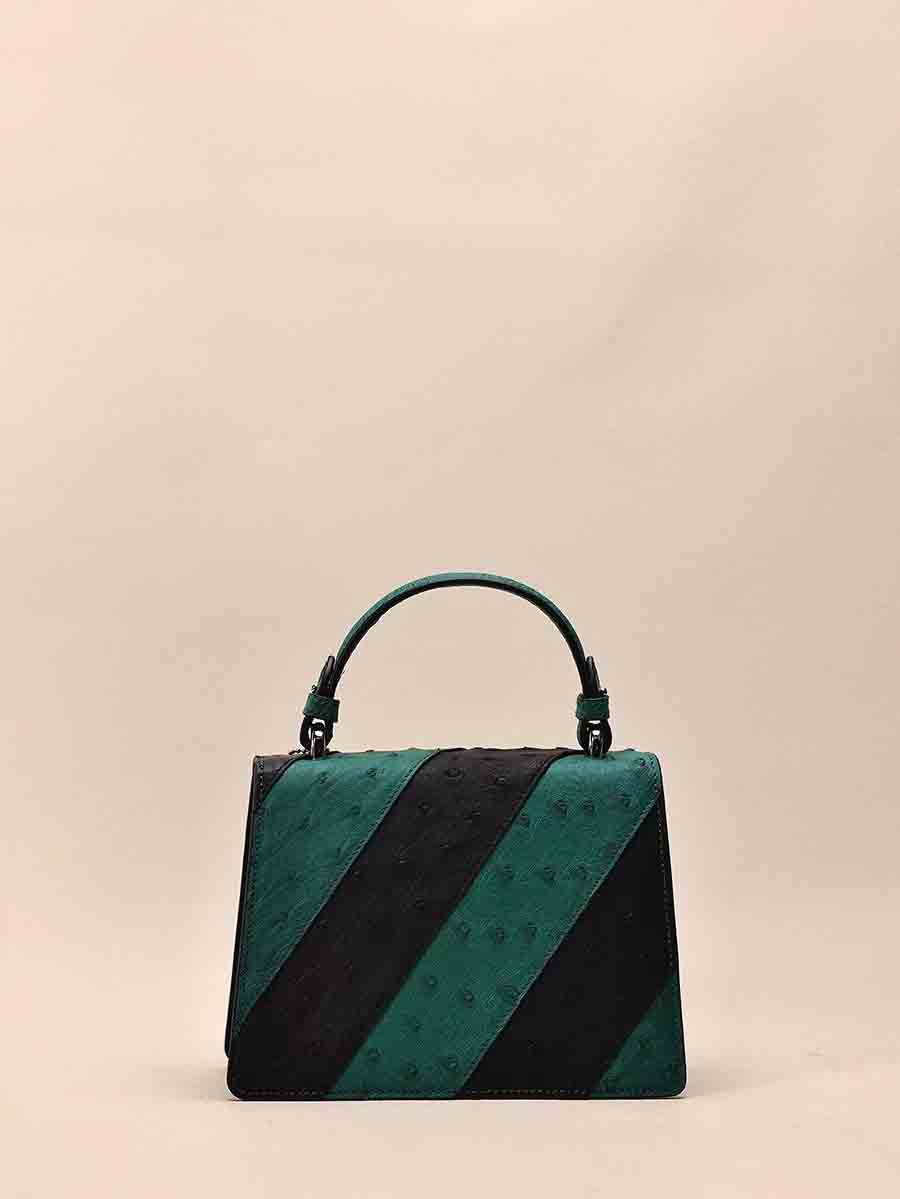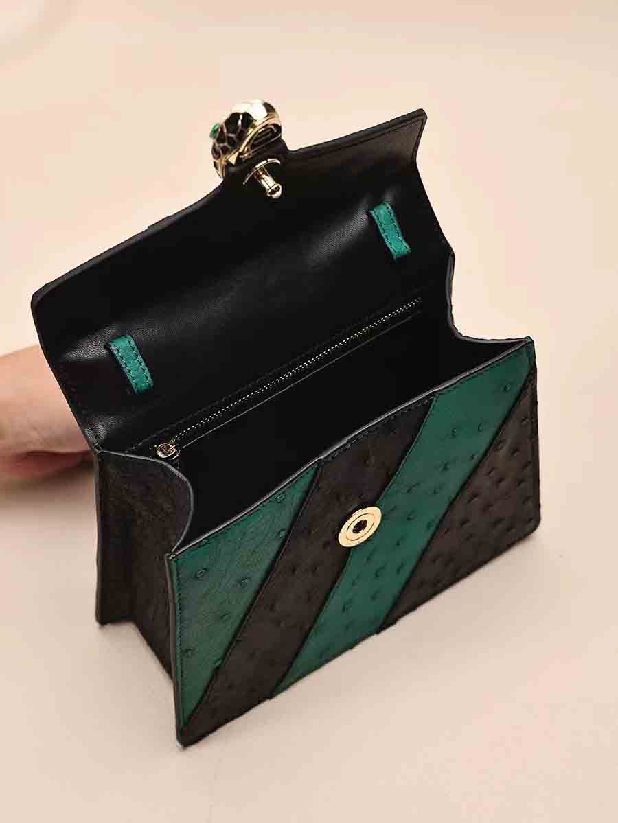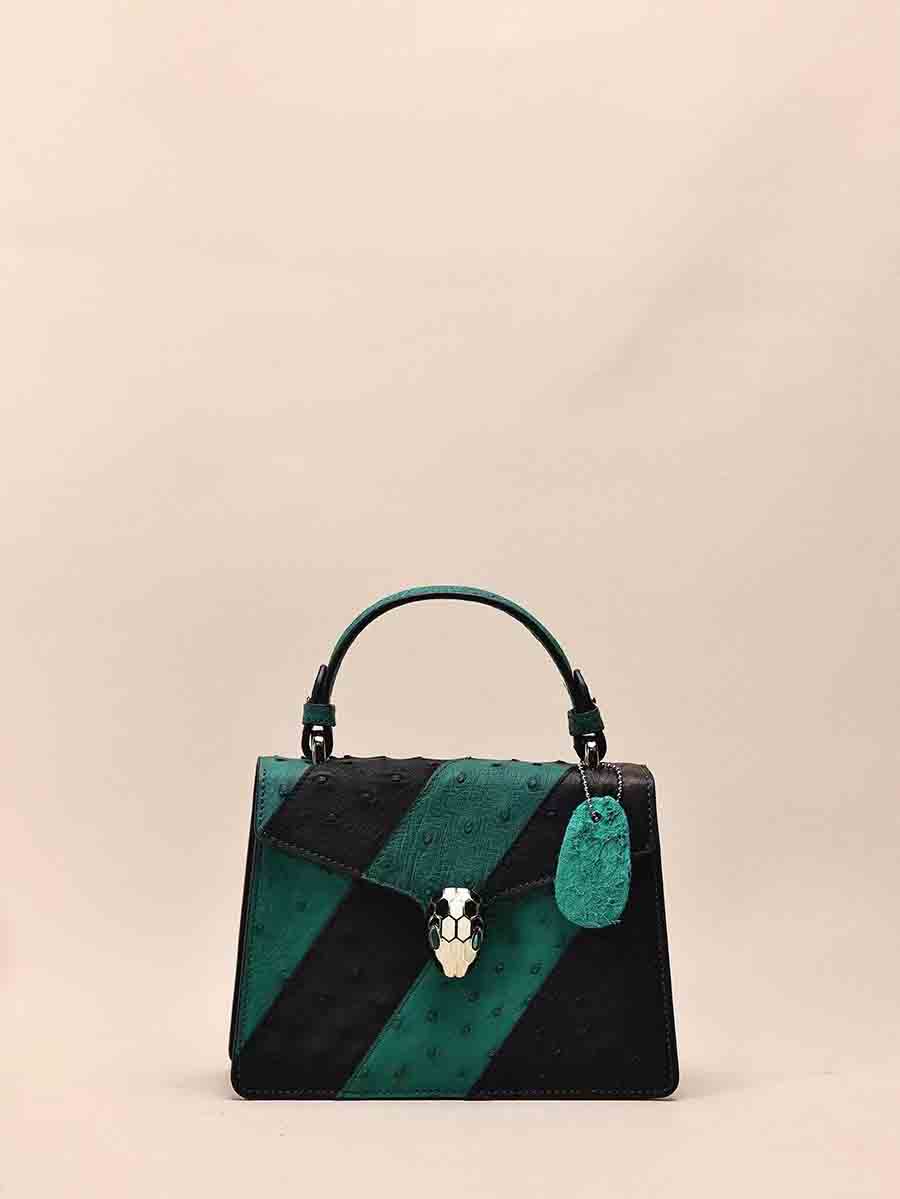 撞色鸵鸟皮 丝绒绿+黑色 女士手提单肩包