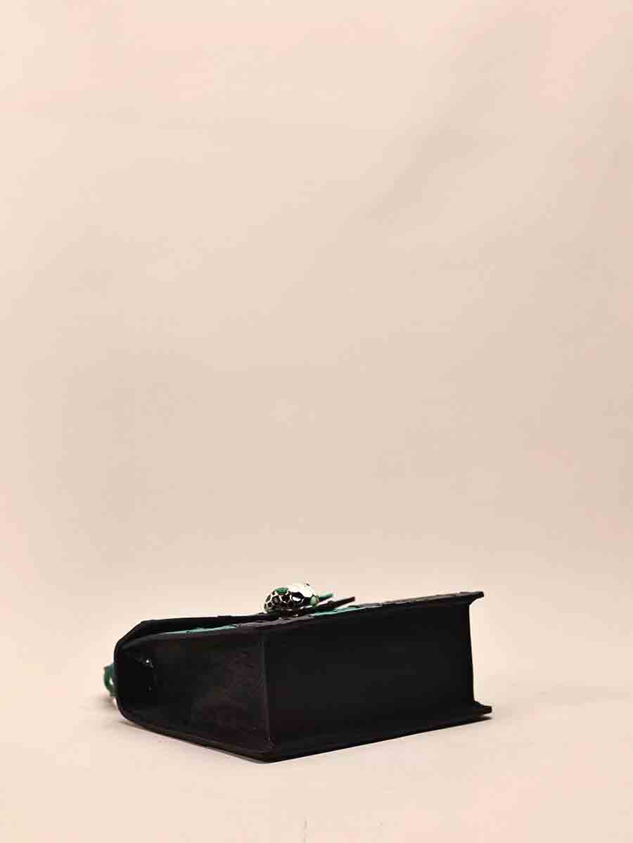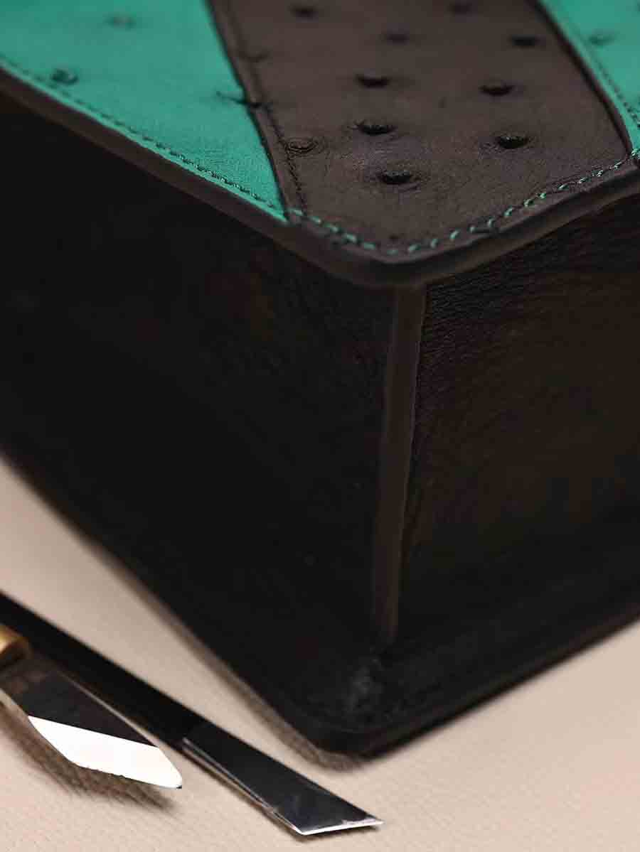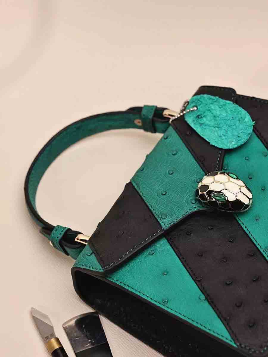 撞色鸵鸟皮 丝绒绿+黑色 女士手提单肩包