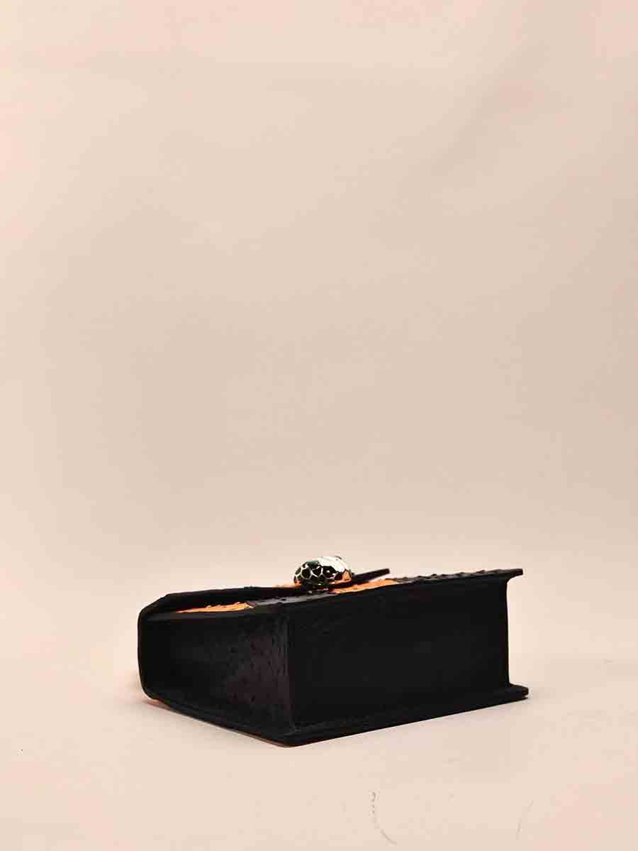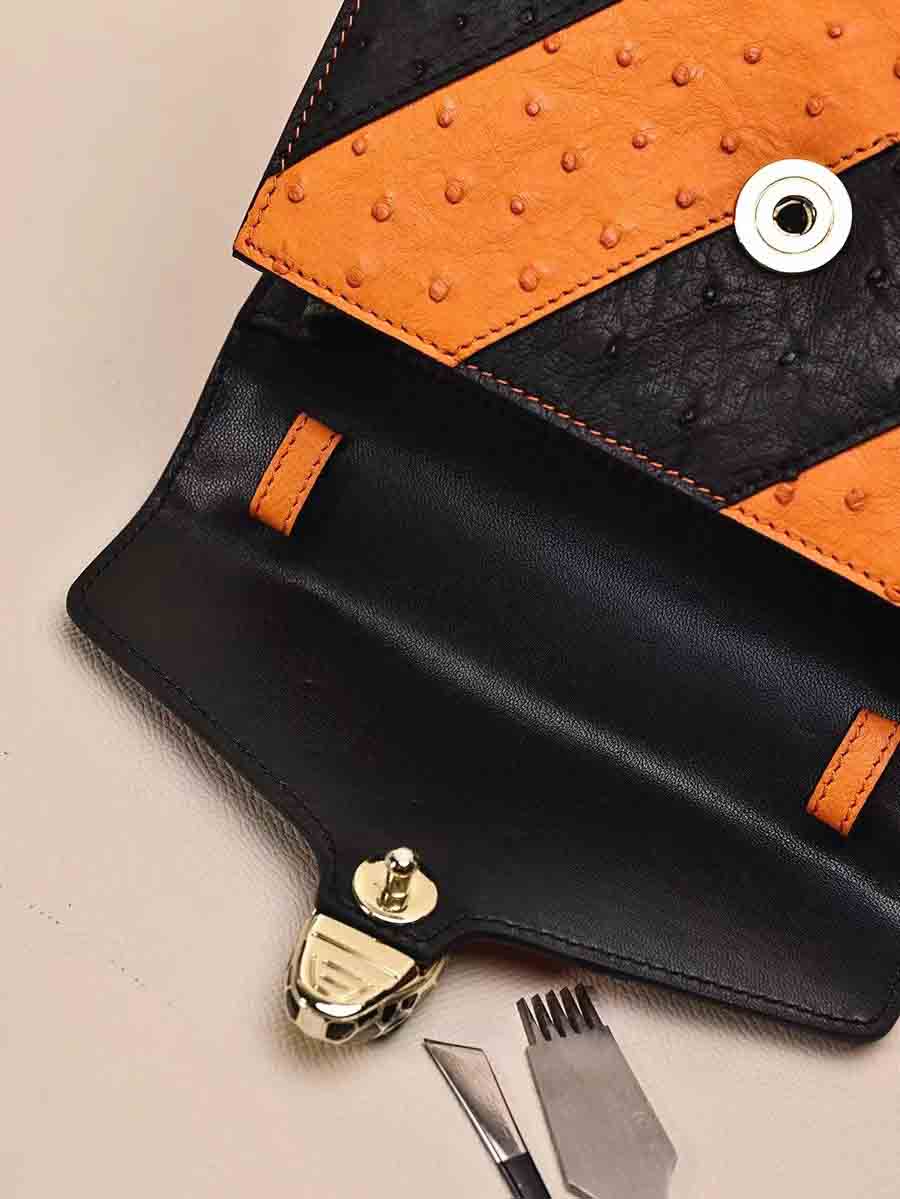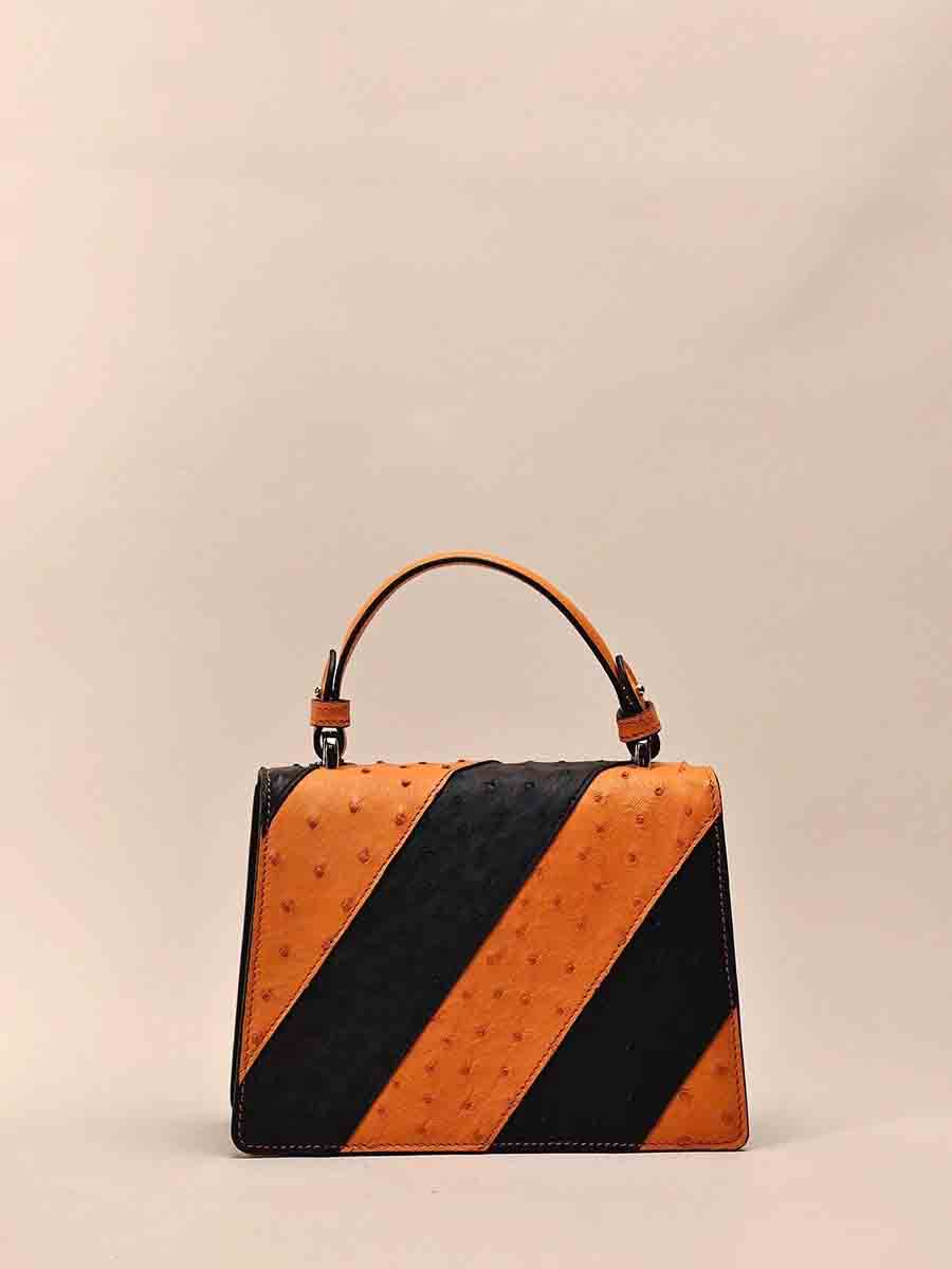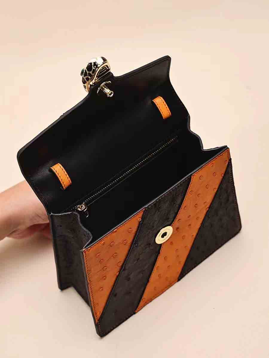 撞色鸵鸟皮 橙色+黑色 女士手提单肩包