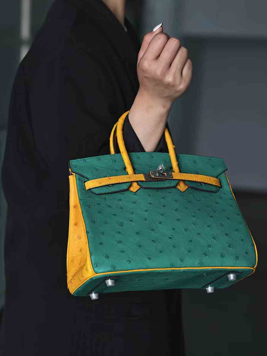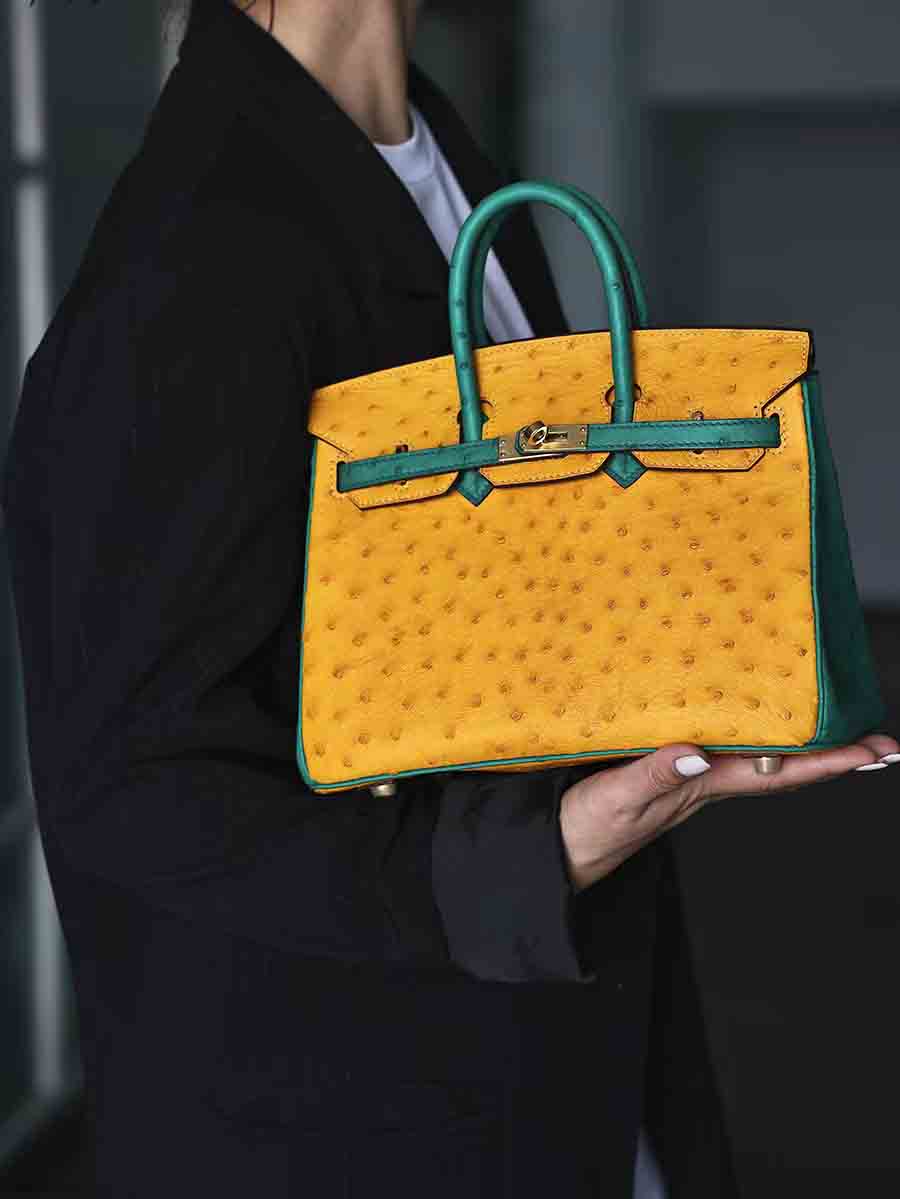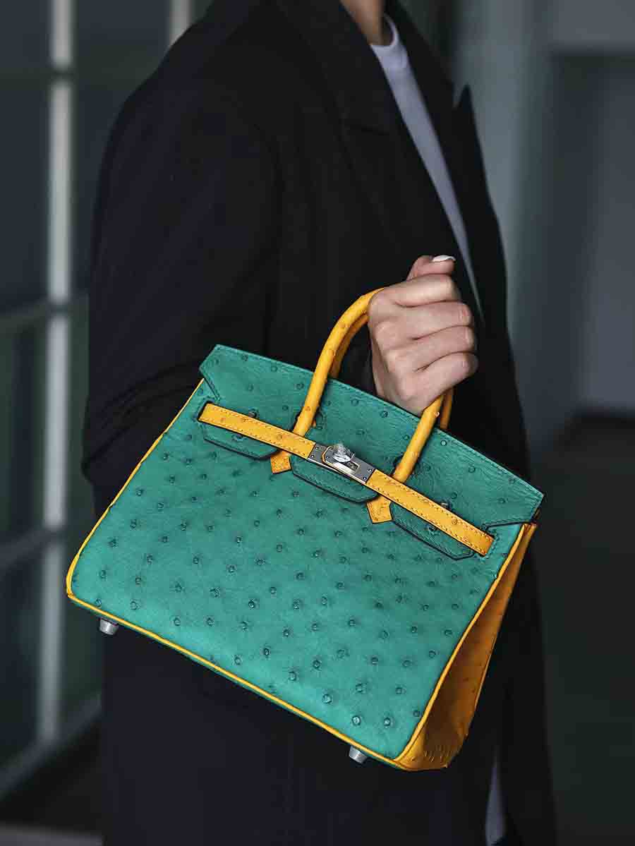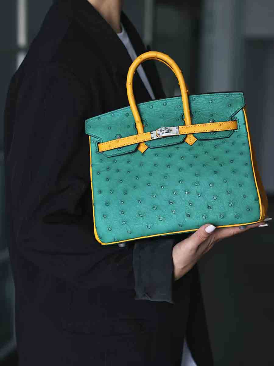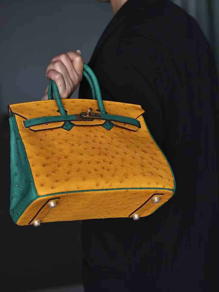拼色鸵鸟皮birkin25 银扣 -金扣 -2款女手提包工厂。鸵鸟皮具厂家订制,高端系列diy工作室