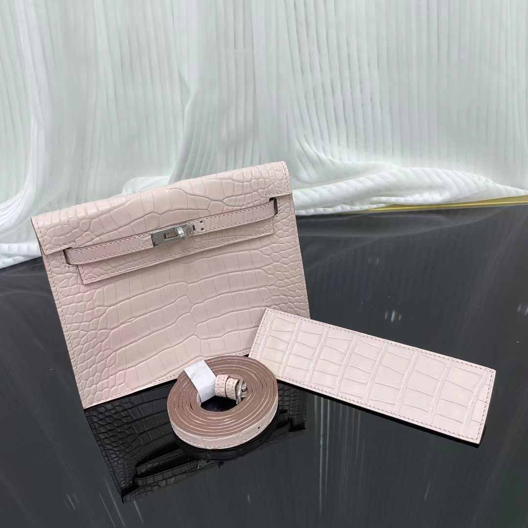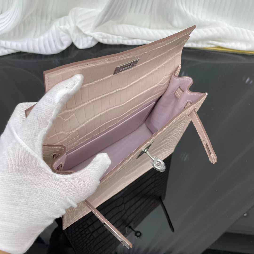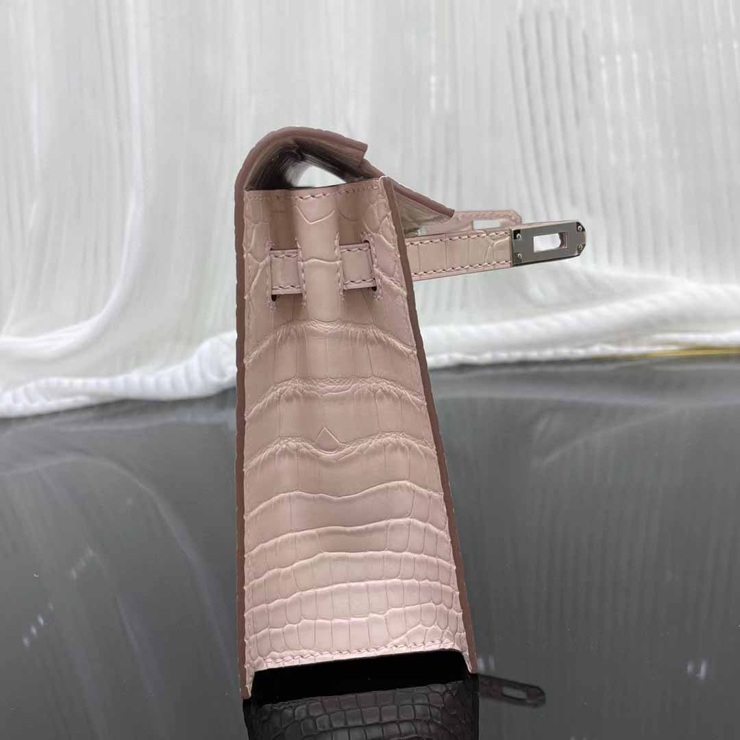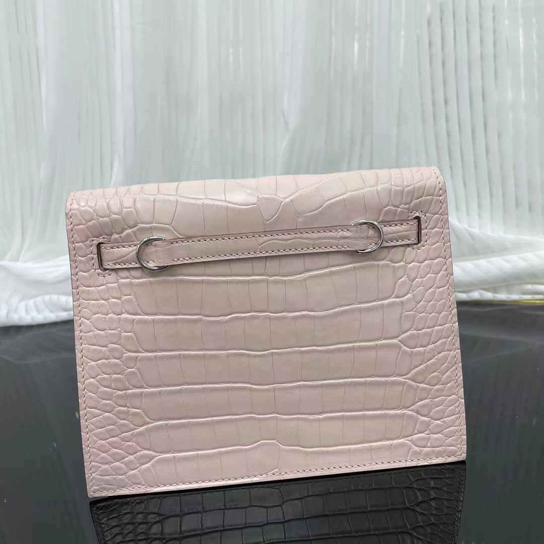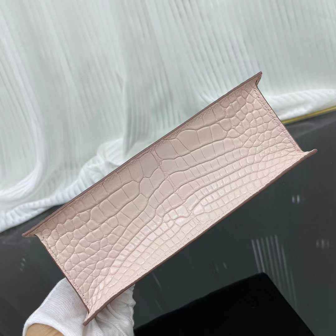 进口美洲鳄鱼雾面,跳舞包尺寸;22X17X7。里皮为法羊皮。美洲鳄属较大型的淡水鳄鱼,其皮质饱满,花纹富丽
