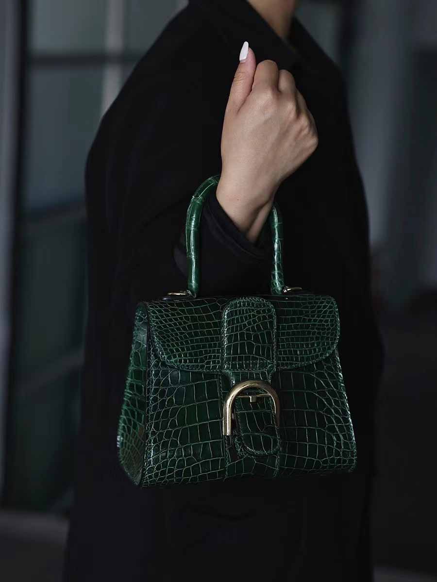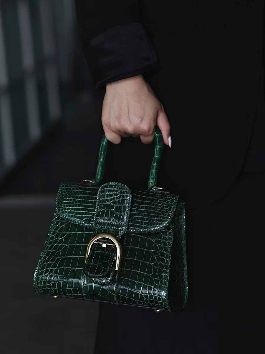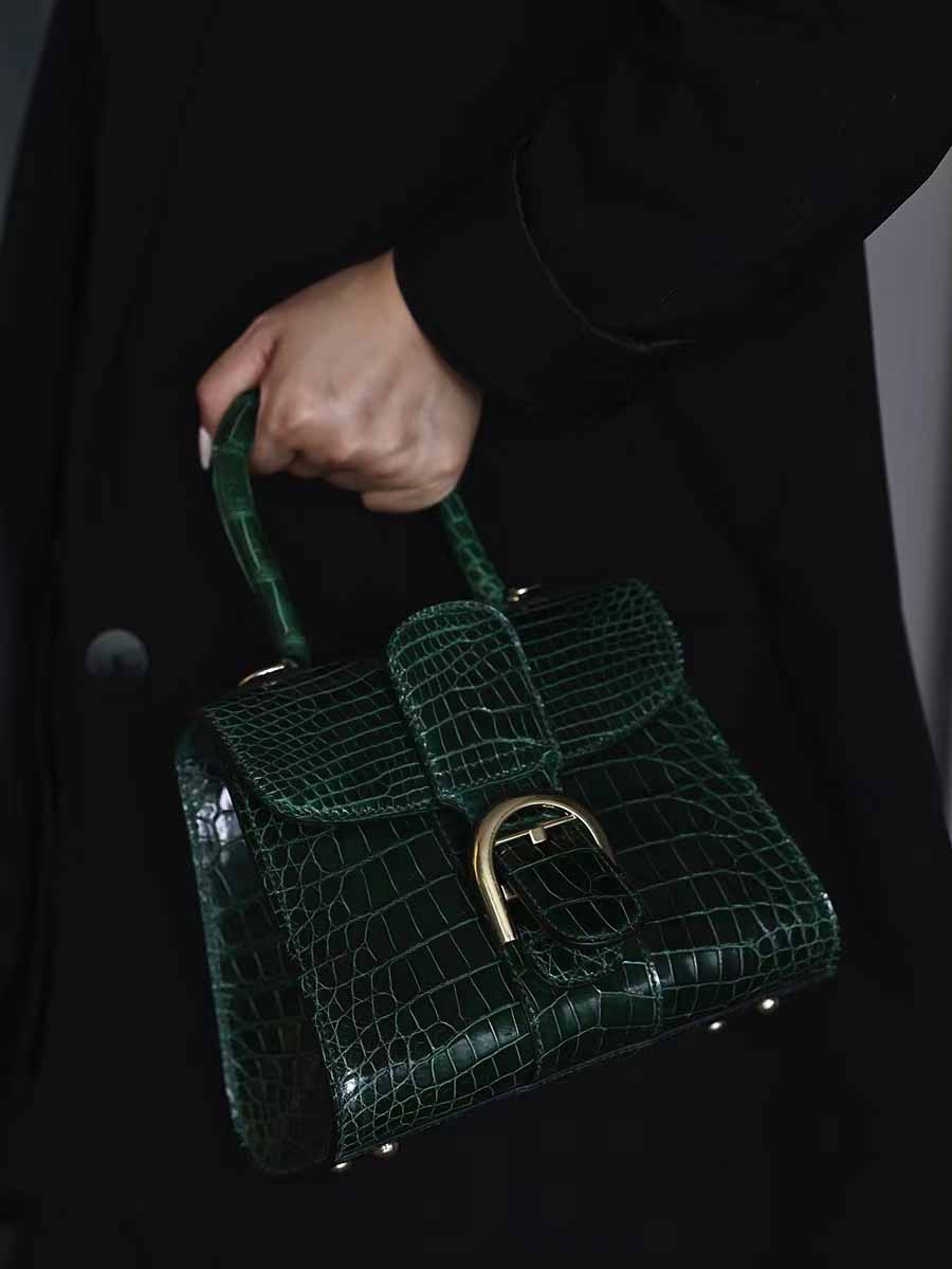 亮面鳄鱼皮祖母绿 德尔沃mini 金扣