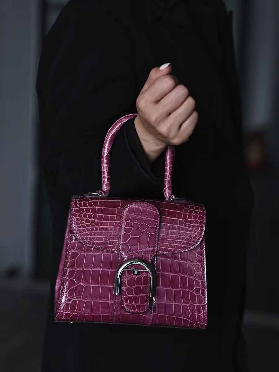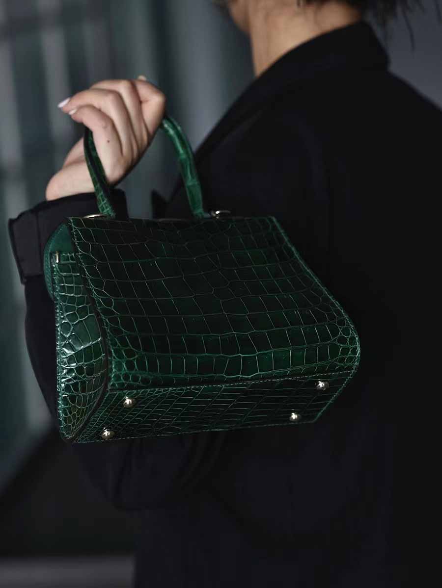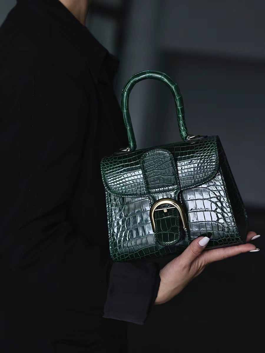 亮面鳄鱼皮祖母绿 德尔沃mini 金扣