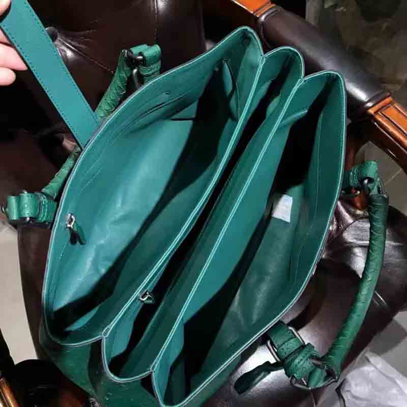 新品|bv进口鸵鸟皮手工编织手提袋/旅行袋Size:39*24*20。现货 丝绒绿