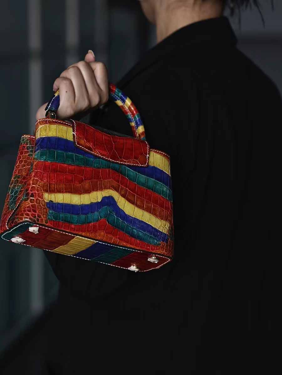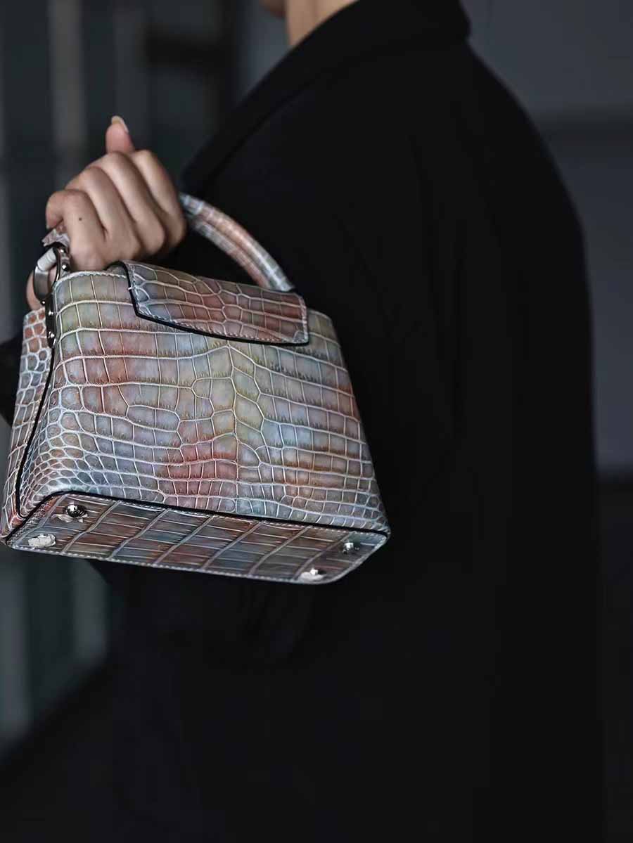 手绘擦色尼罗capucines mini 银扣