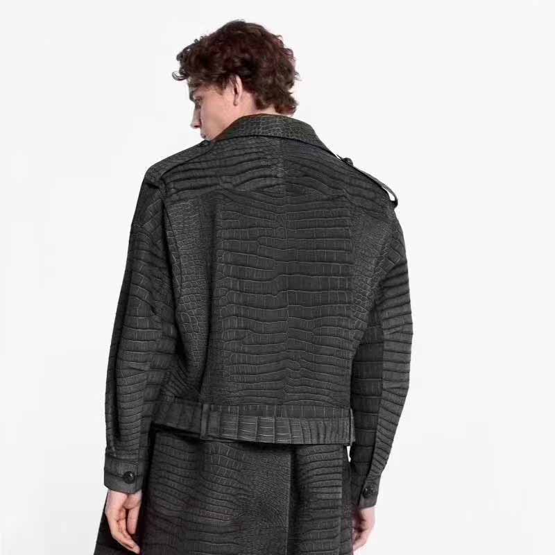 哈哈 纯磨砂鳄鱼皮 铁锈灰 只要你喜欢你️这个身材穿 我就能给你做出来。