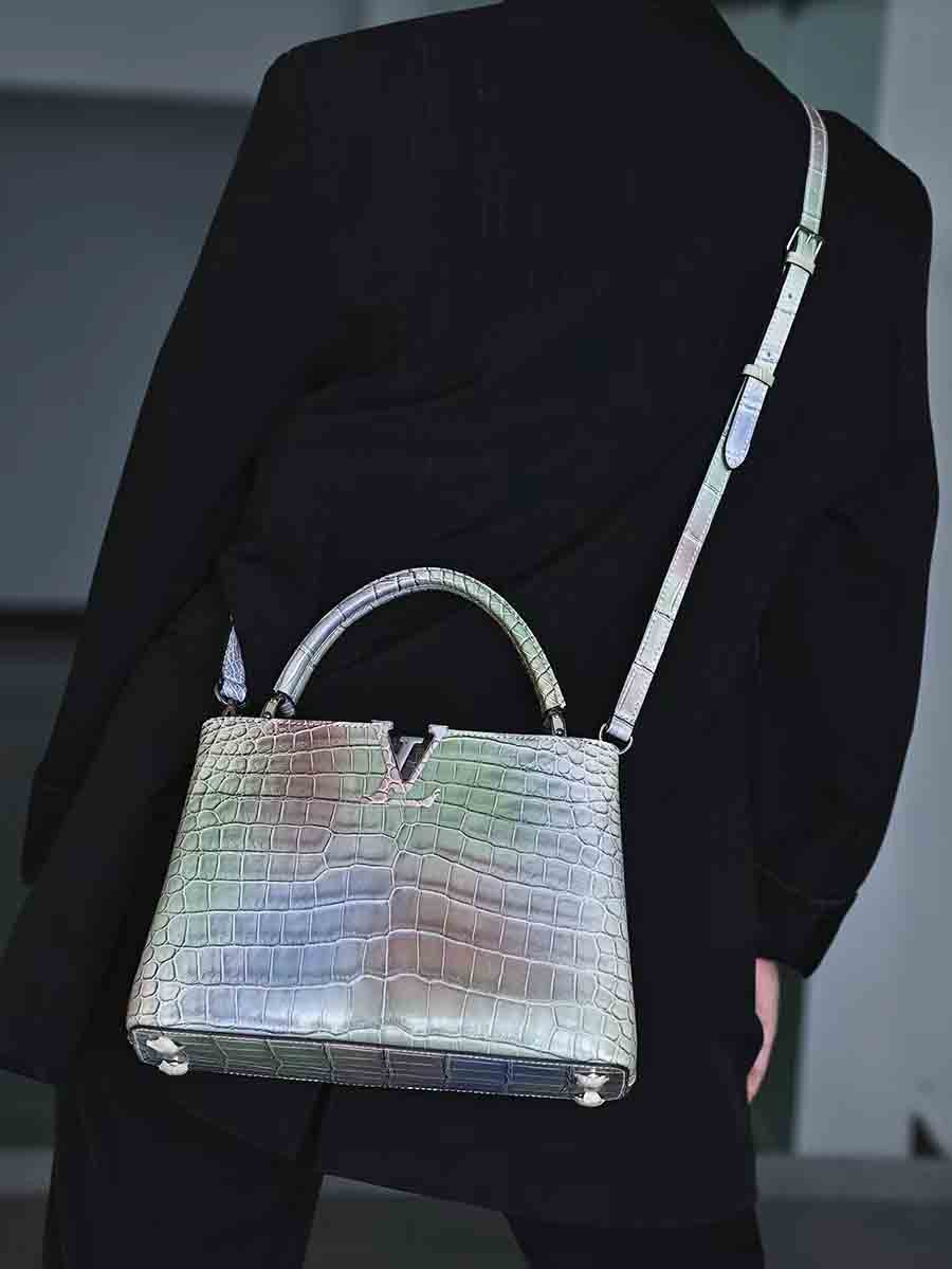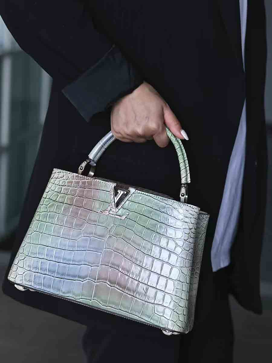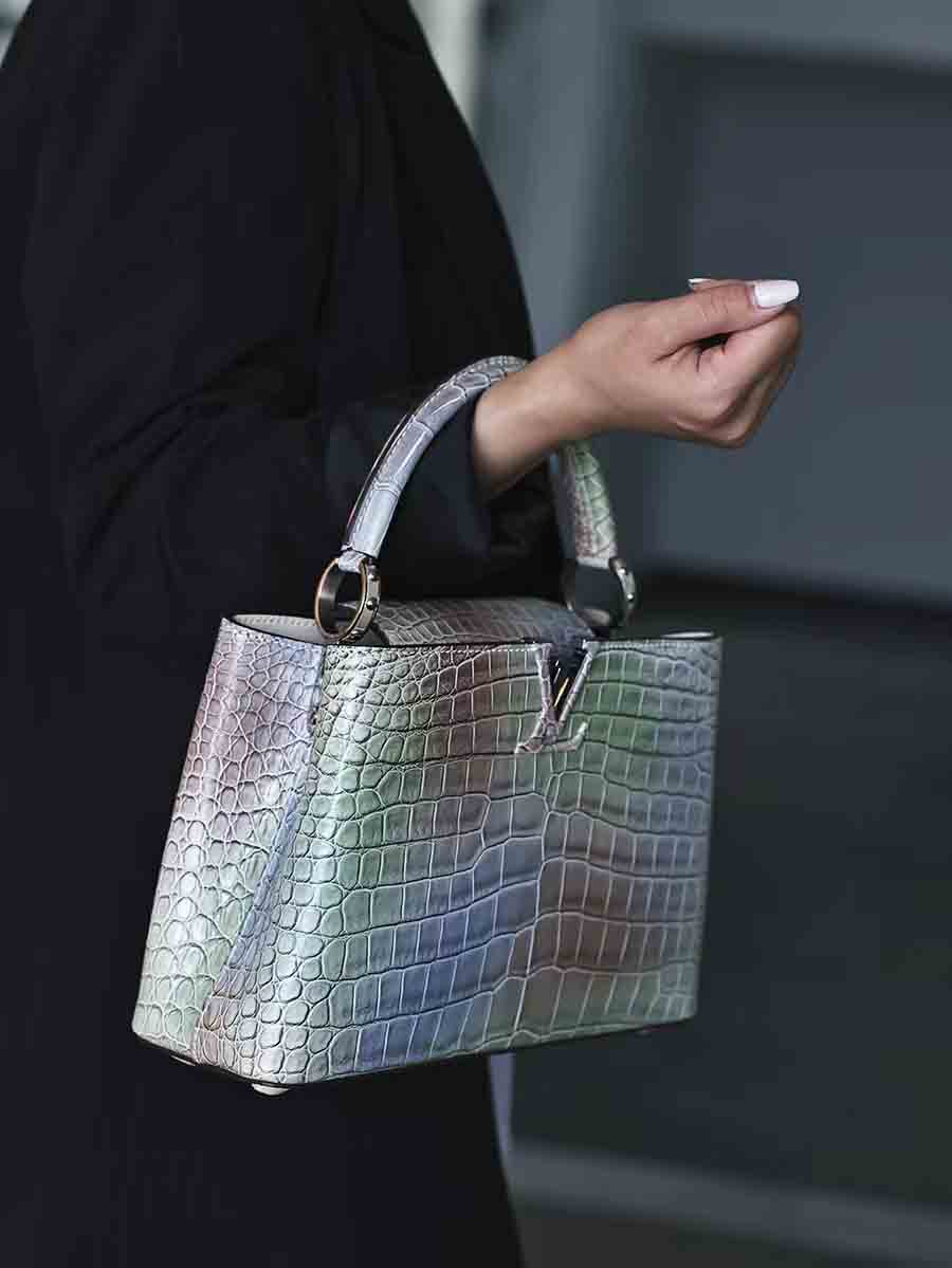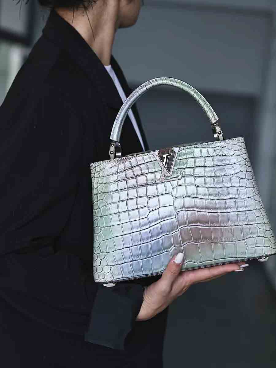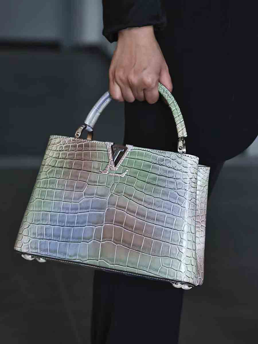 幻彩湾鳄 capucines BB 女休闲包定做。鳄鱼皮女士休闲包预约订做。