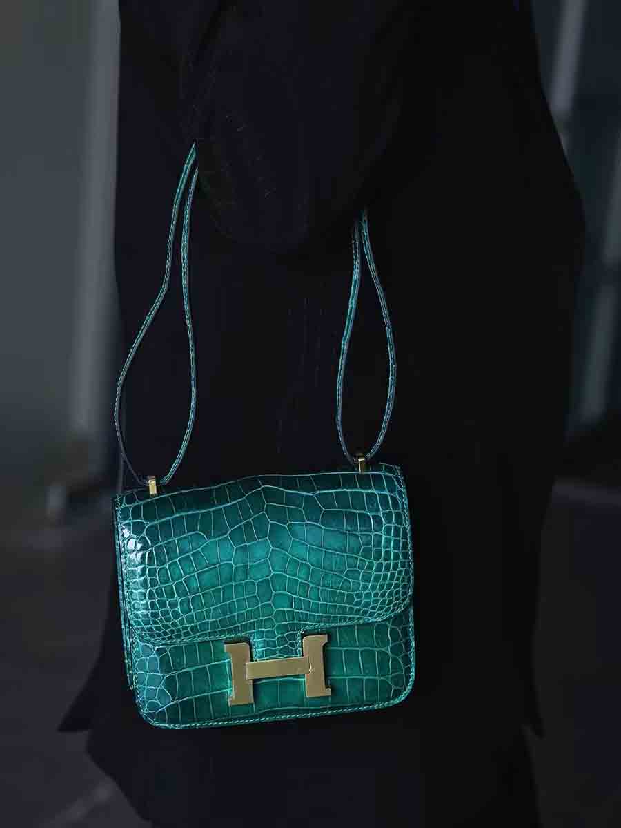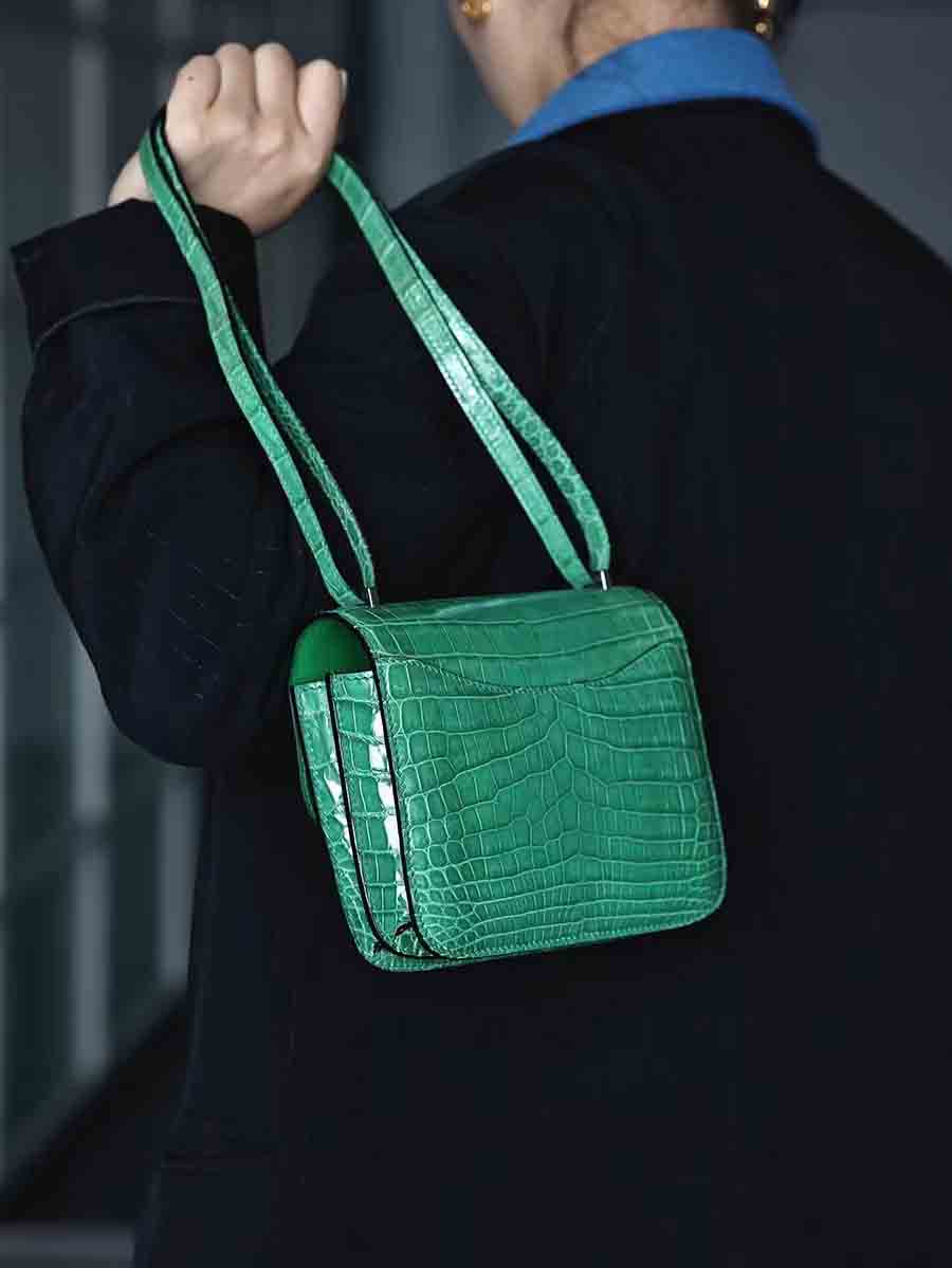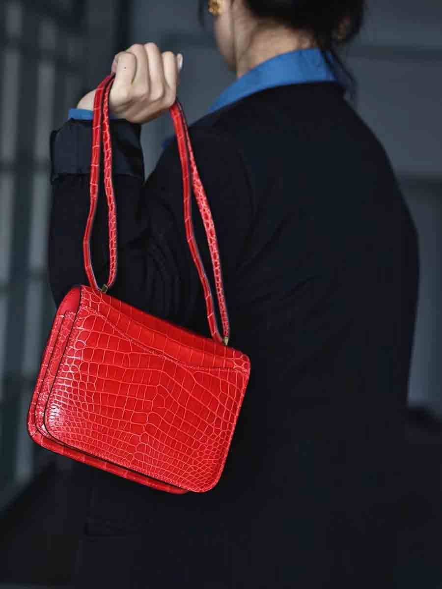 手工蜡线尼罗鳄雾面空姐康康包19cm鳄鱼皮定做厂家