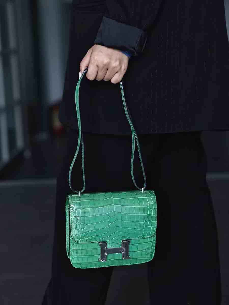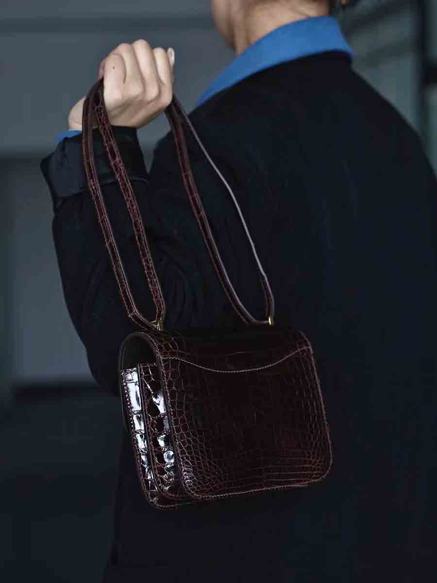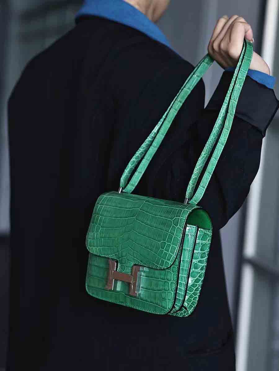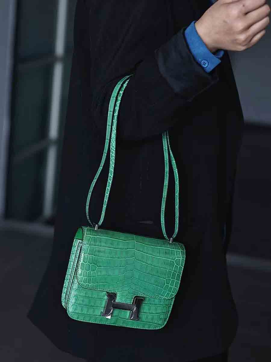 手工蜡线尼罗鳄雾面空姐康康包19cm鳄鱼皮定做厂家