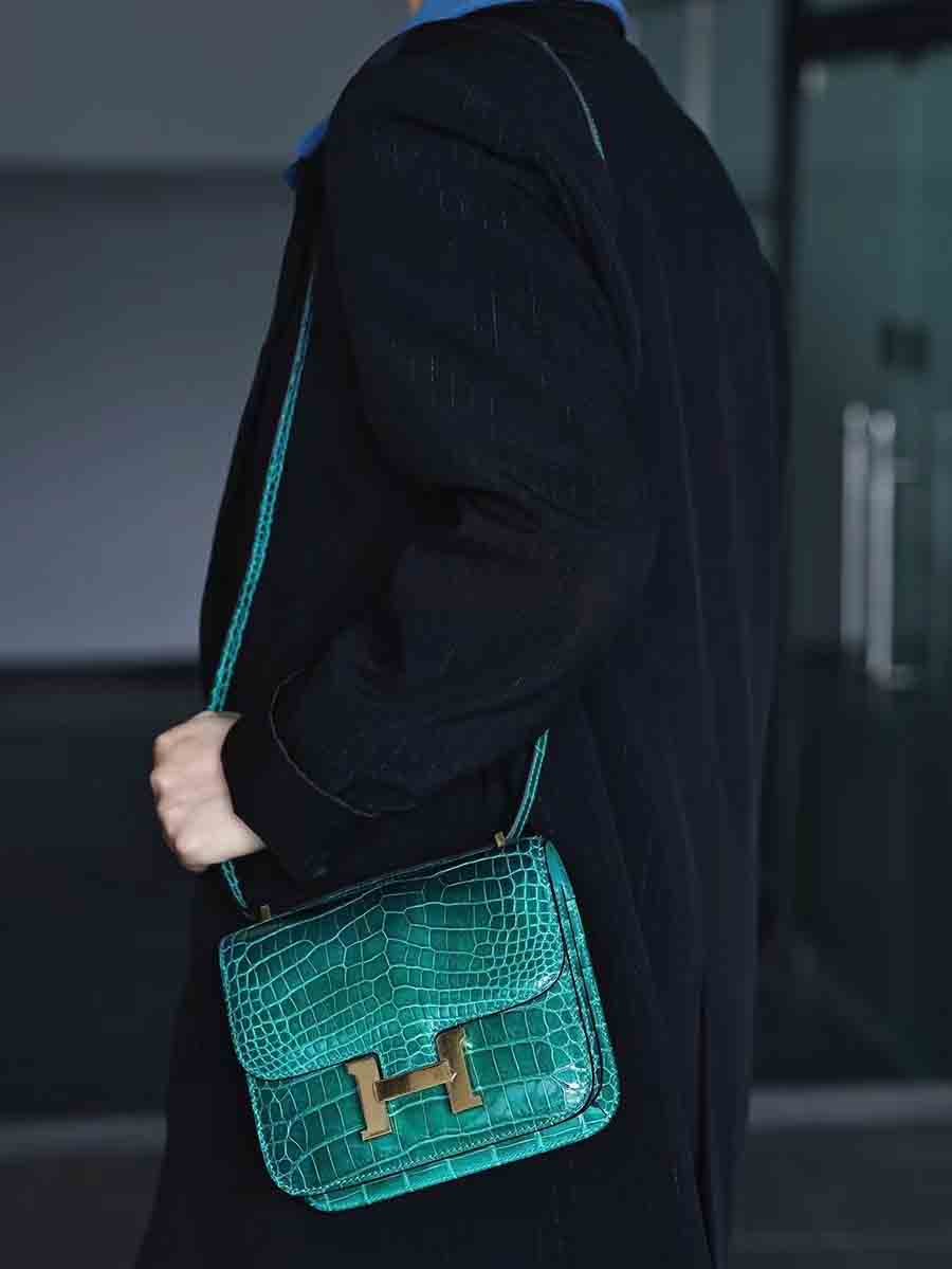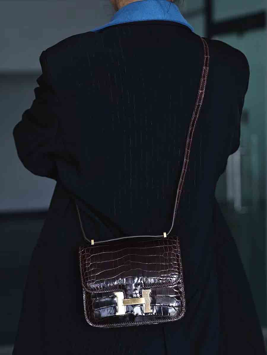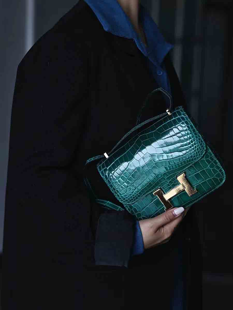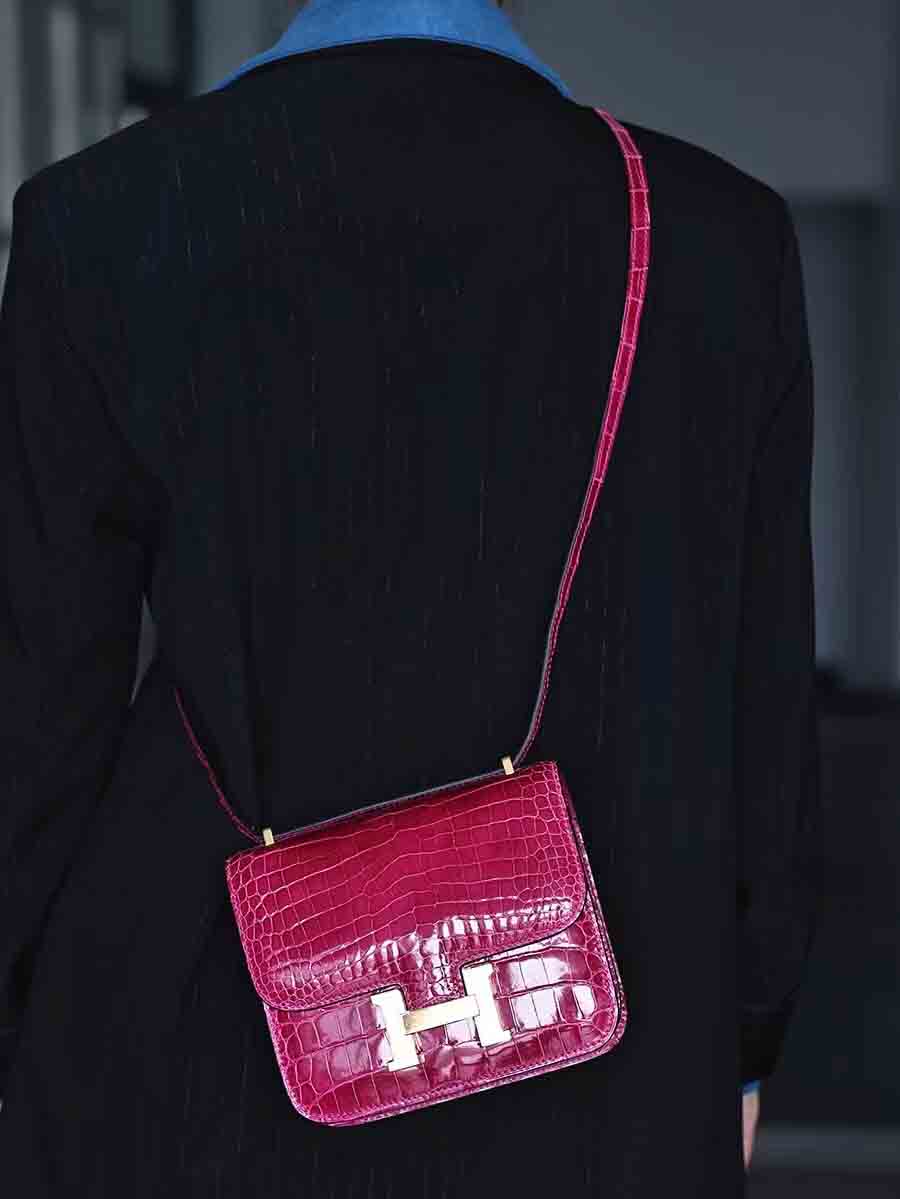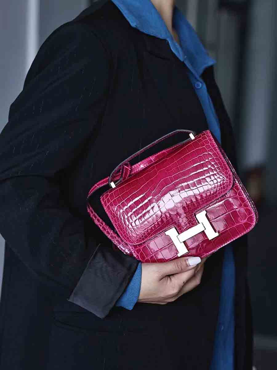 鳄鱼皮尼罗高光亮面鳄鱼皮女包H扣康康包19cm空姐包休闲高货小方包 。